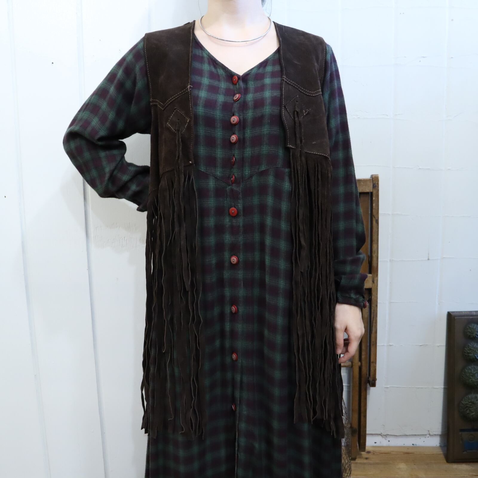 落ち着いたお色味で使いやすいレザーフリンジベストです◎