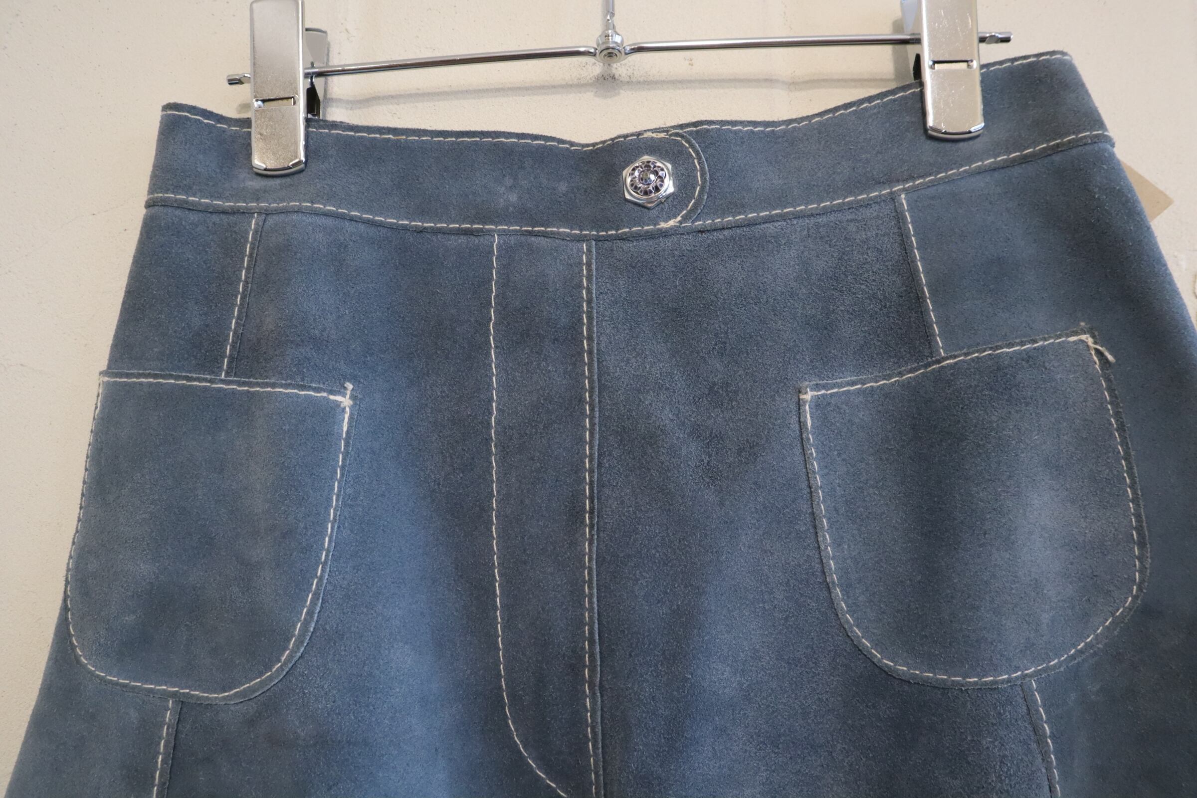 dull blue stitch design leather mini skirt [l-1535]