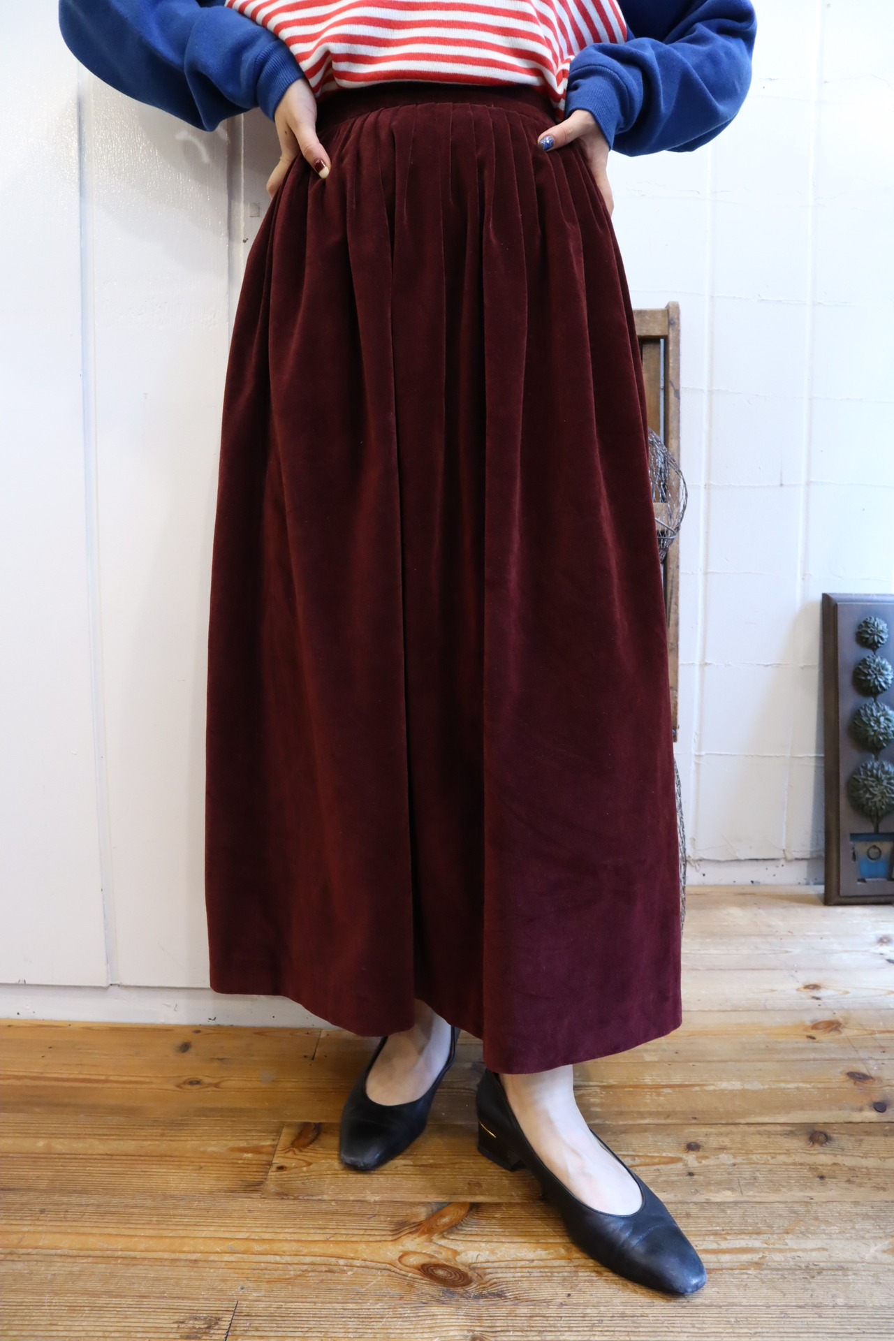 "Ralph Lauren" dark red tuck design velour skirt [k-1538]