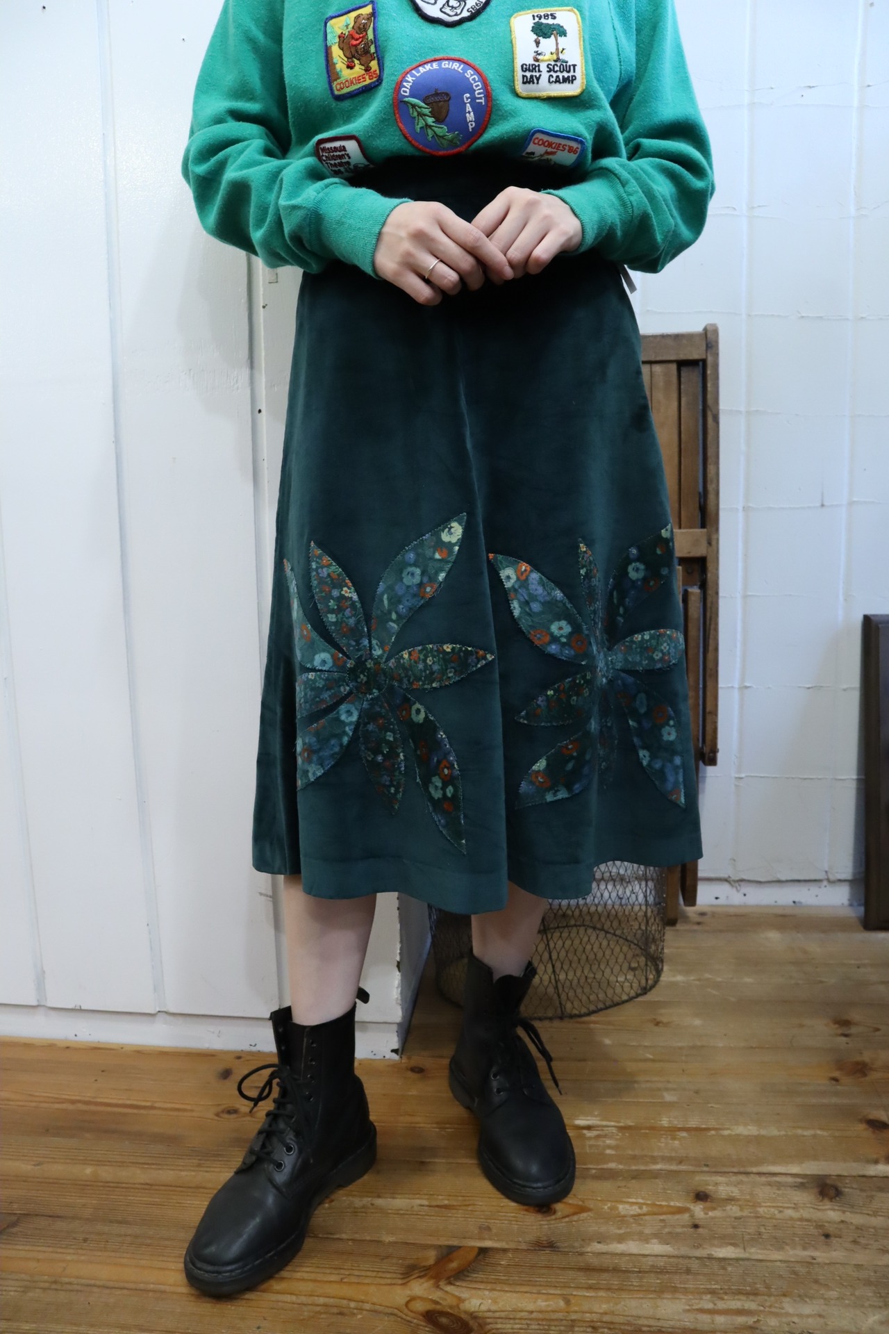 花柄のパッチデザインが可愛いベロアスカート。