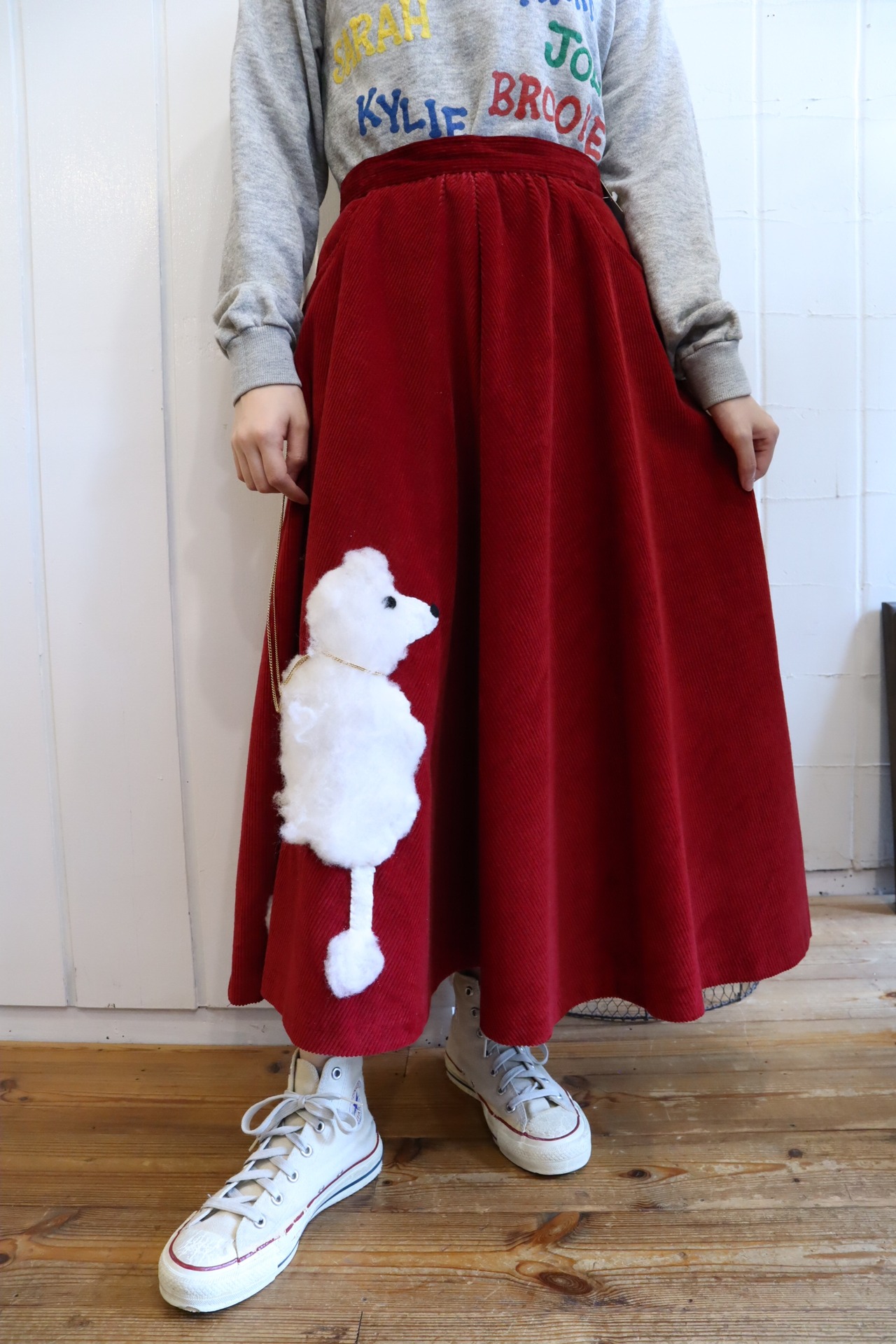 プードルのふわふわなパッチが目を惹くコーデュロイスカート。