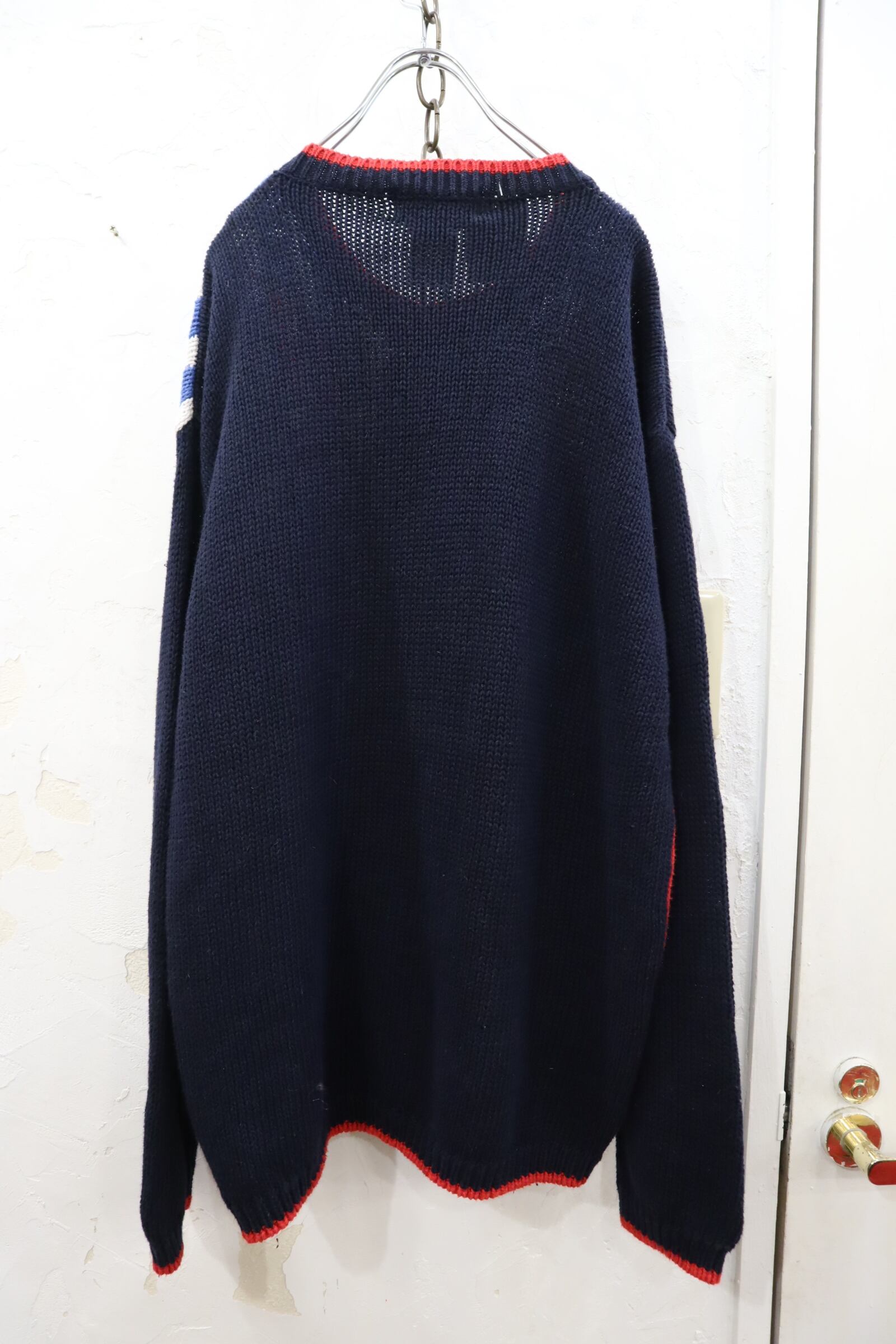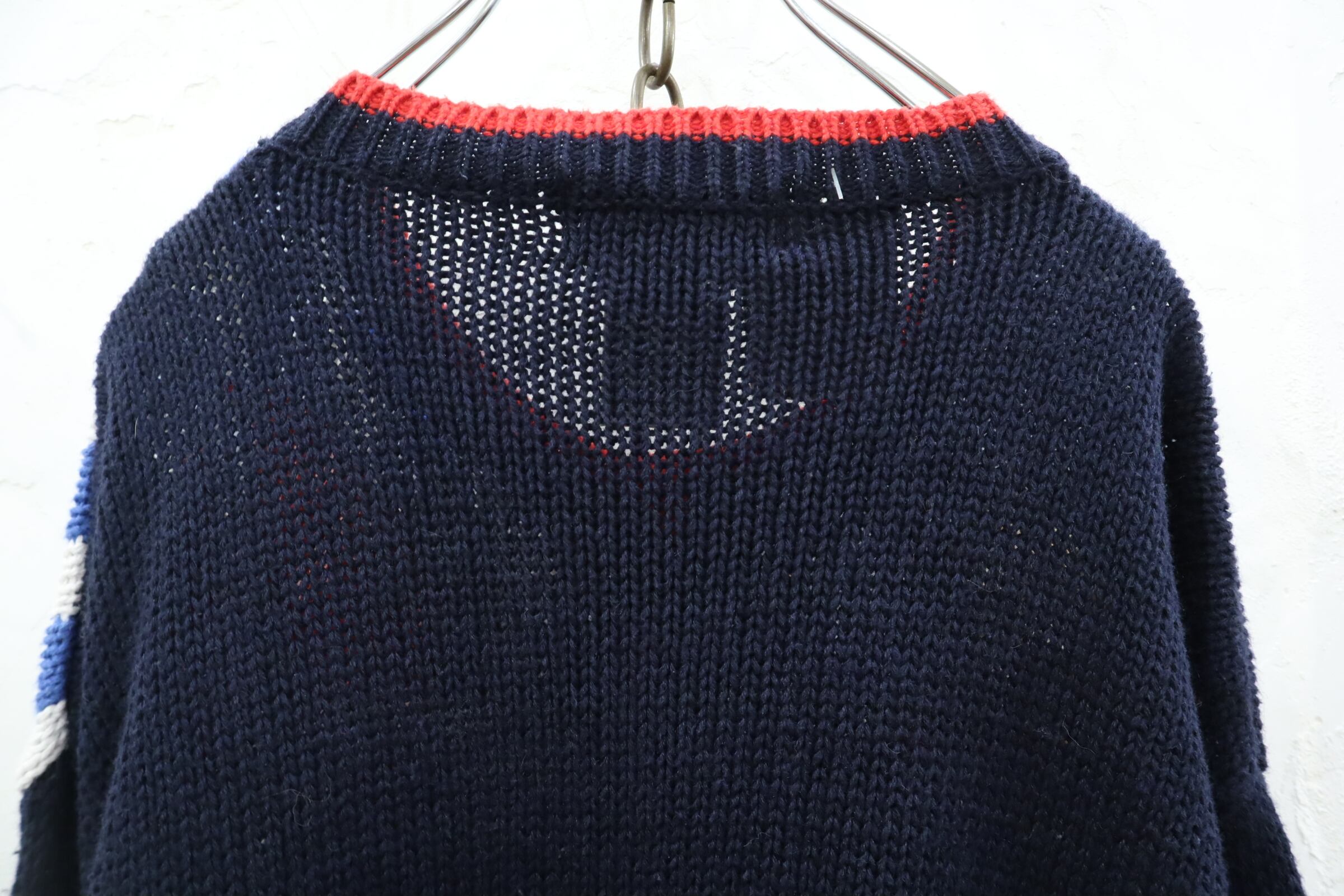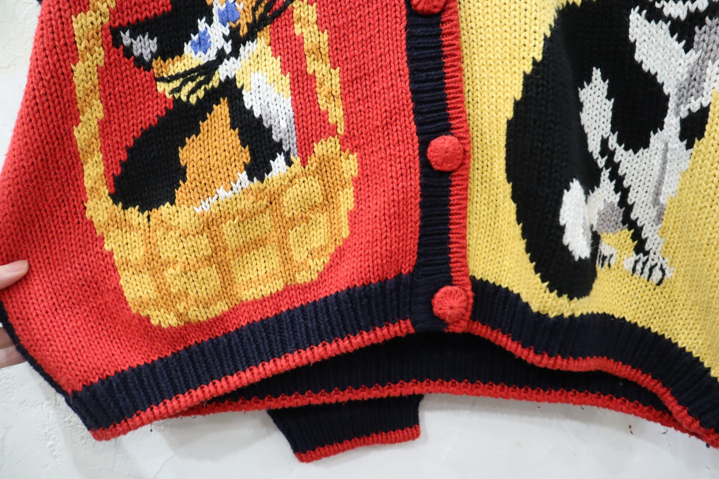 navy×red×yellow cat ramie cotton knit cardigan [l-1550]