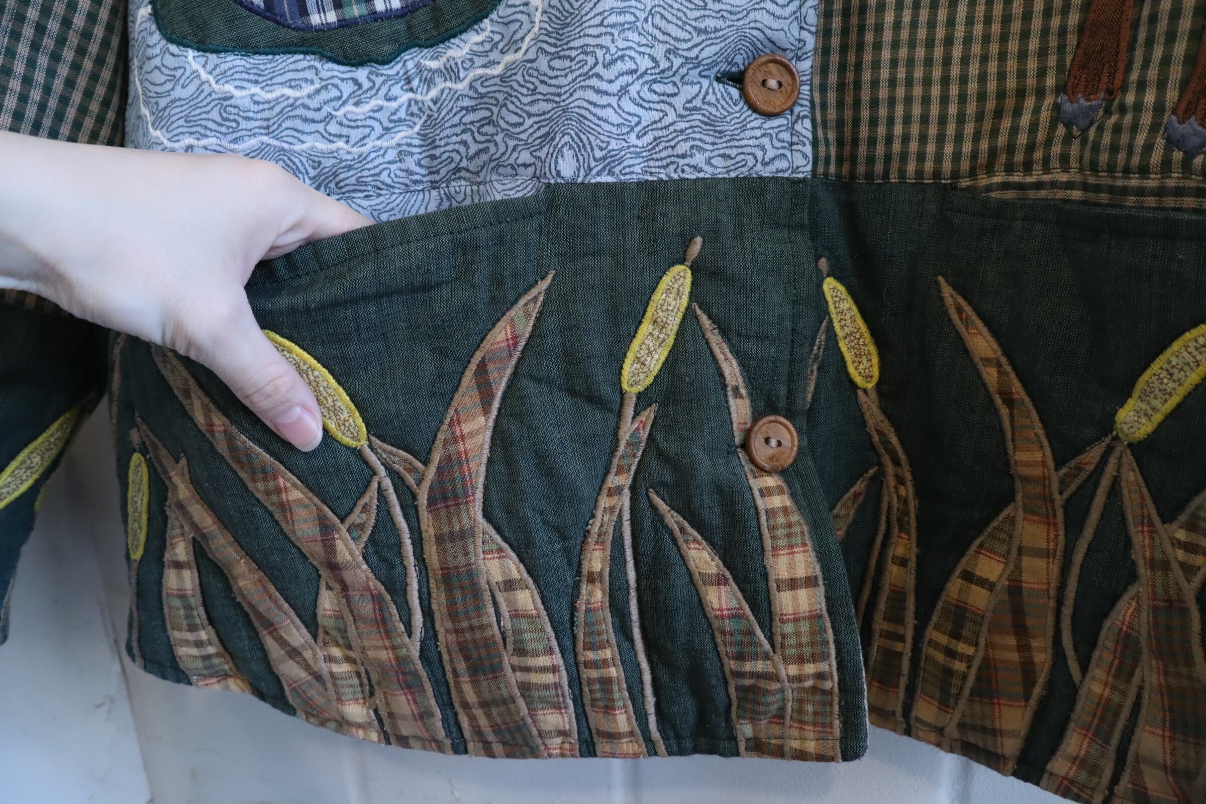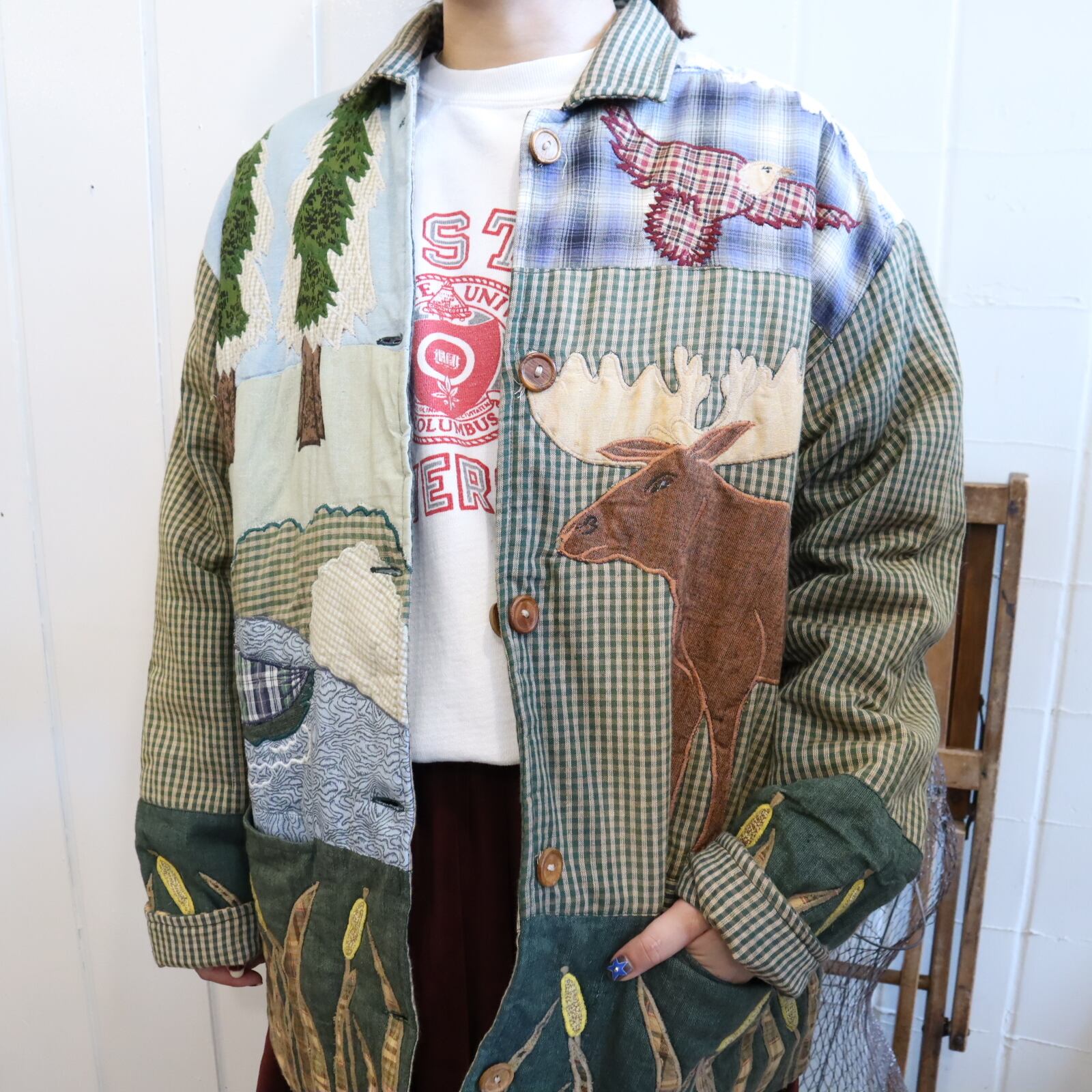ギンガムチェックと色々な動物のパッチが可愛いジャケットです。