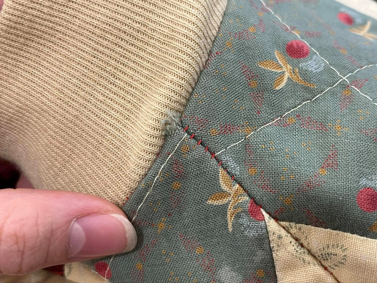 beige×red×green patchwork jacket [l-1556]