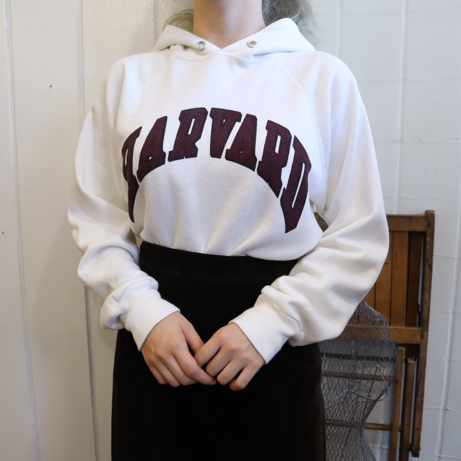 80s"Champion"white×bordeaux logo print hoodie sweat [l-1557]