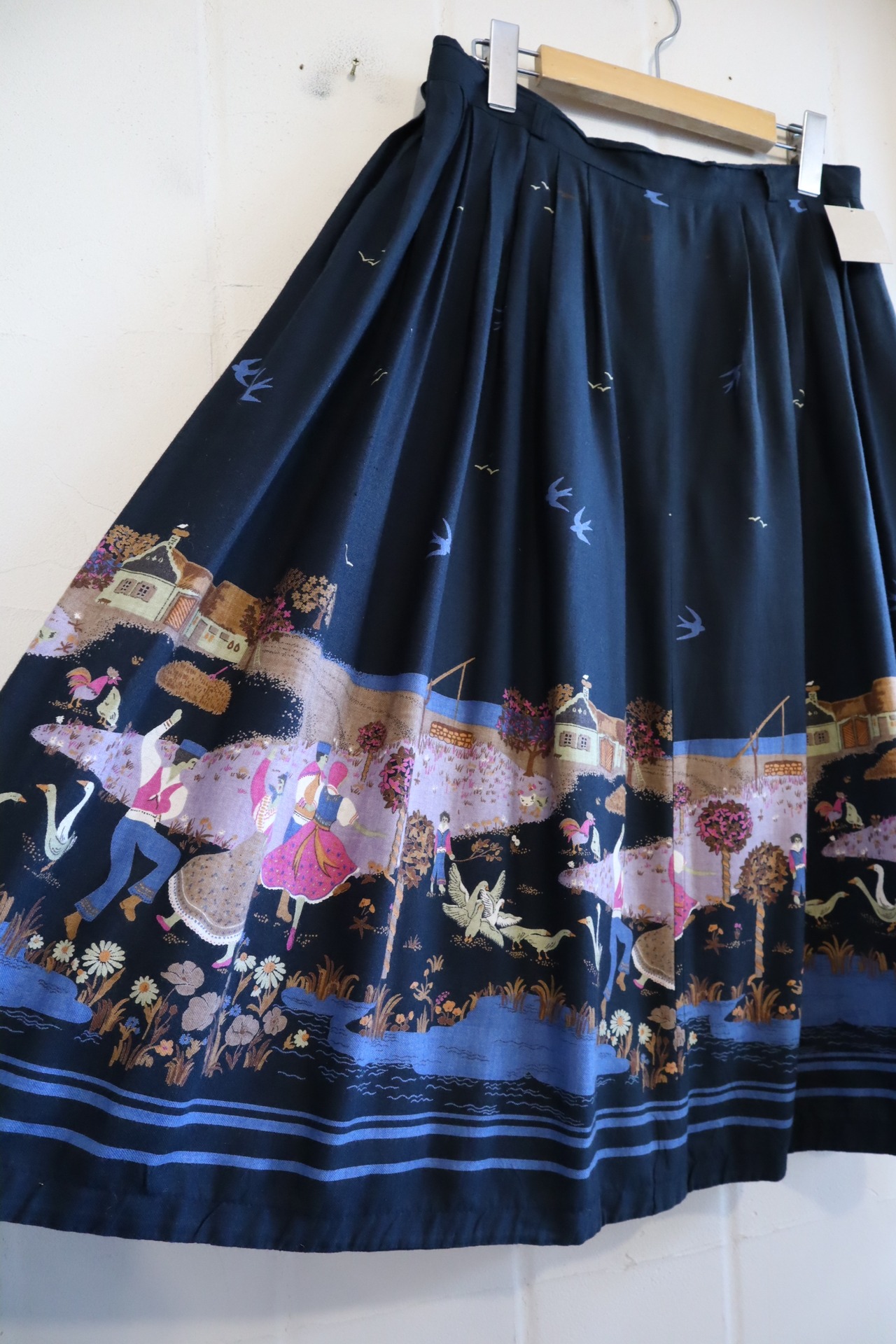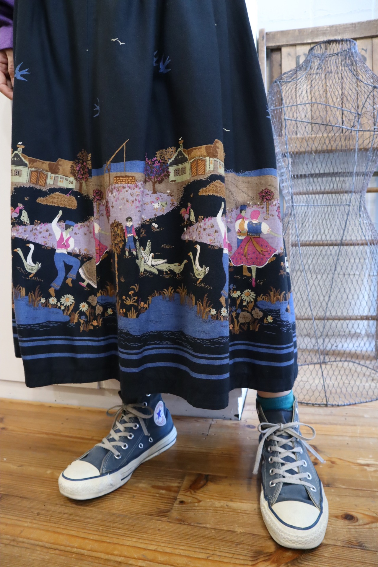 black×blue×pink human&scenery pattern tyrol skirt [l-1561]
