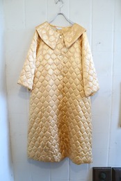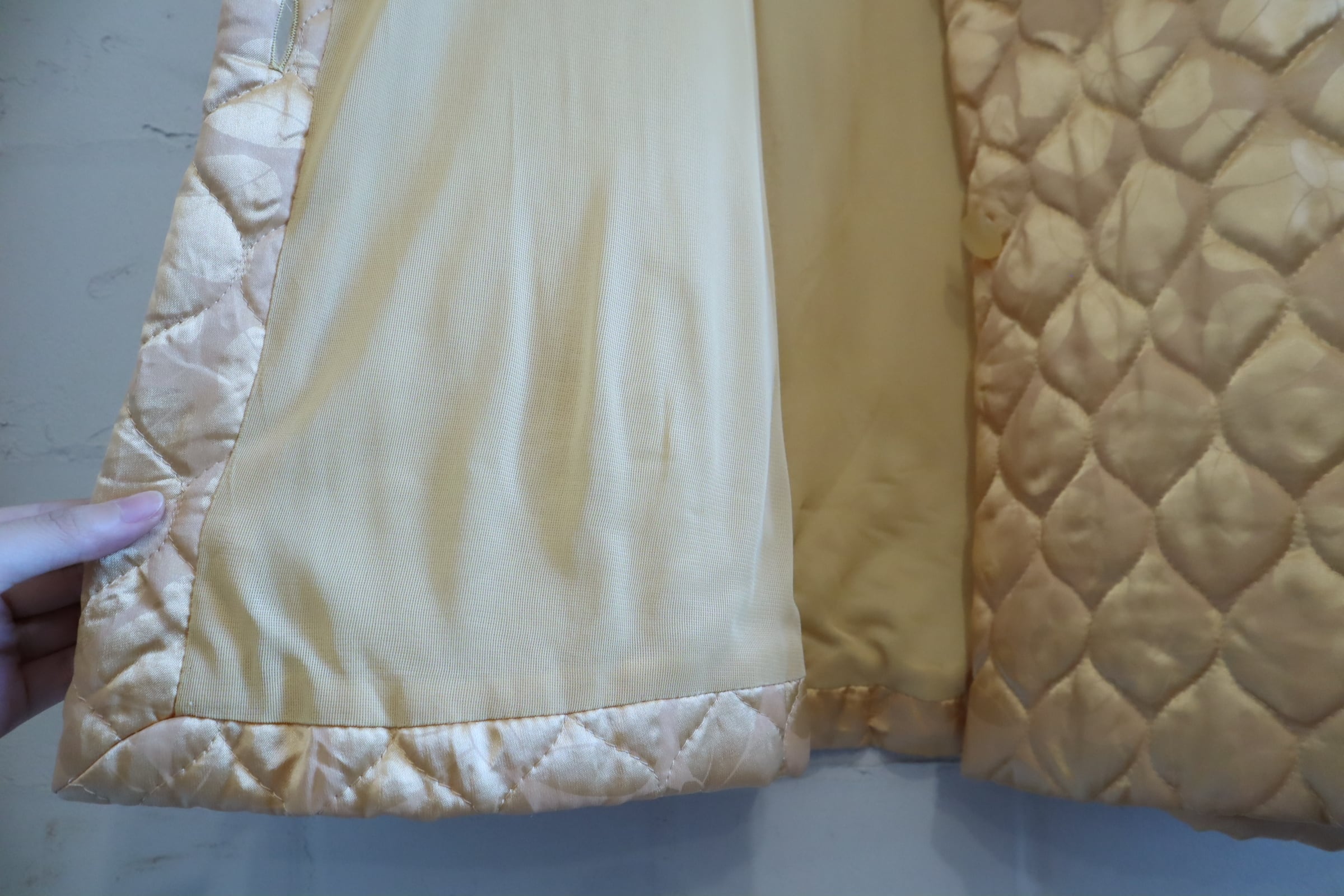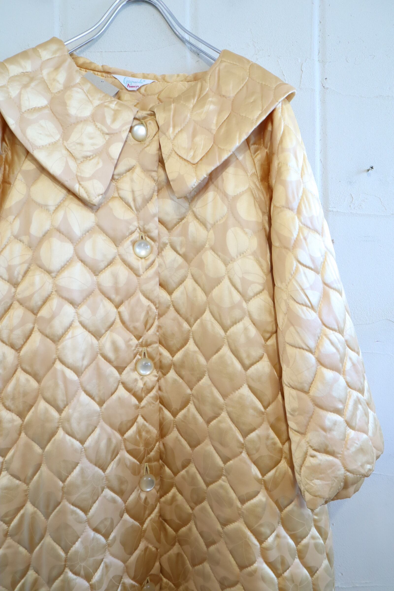 50s-60s yellowgold ribbon pattern quilting gown [l-1582]