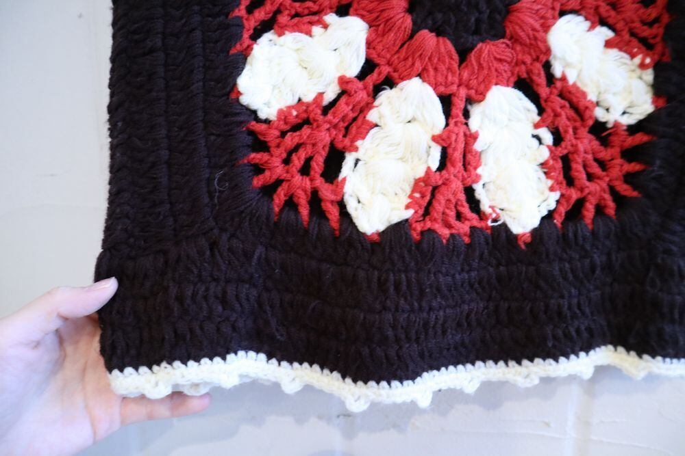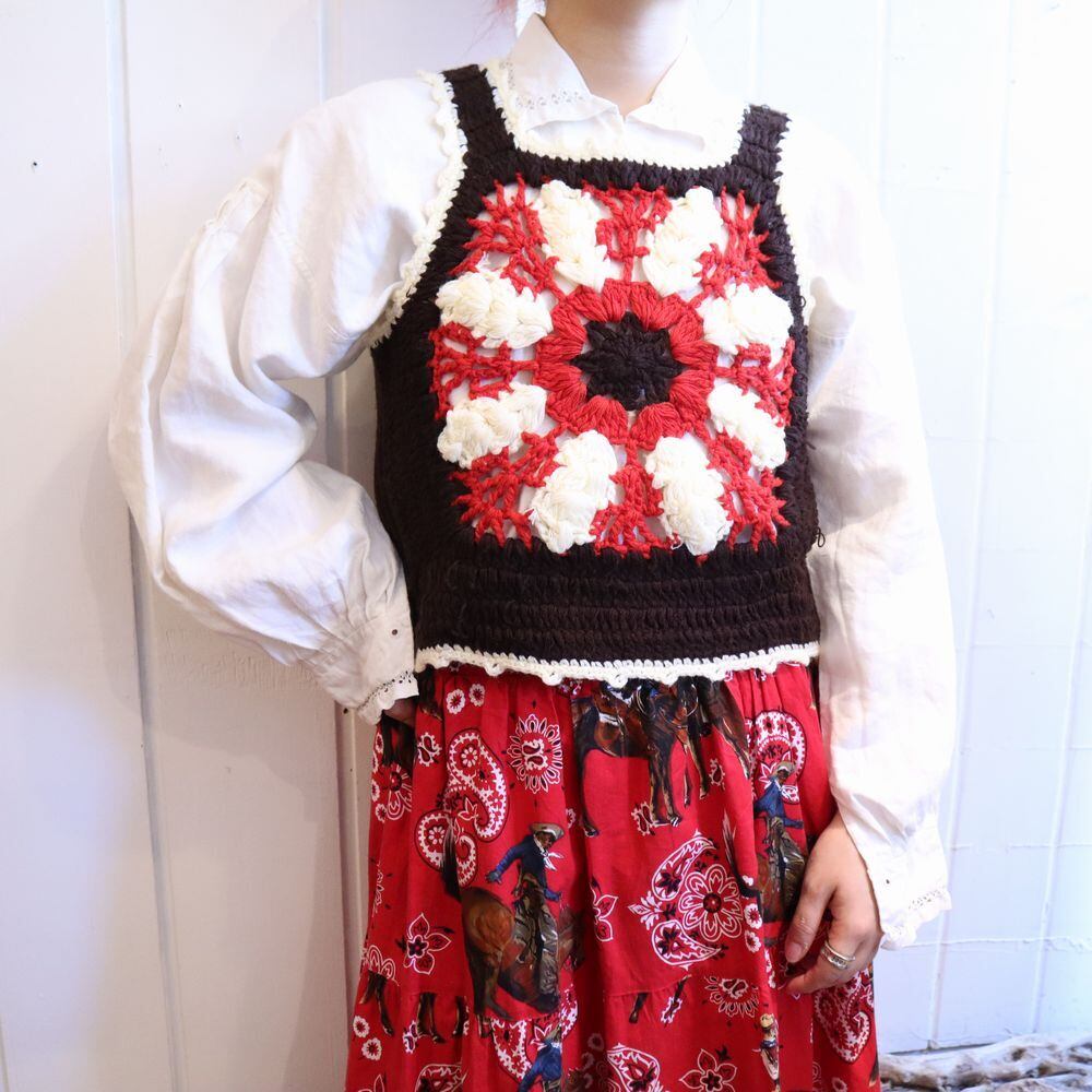 お花モチーフのかぎ編みが可愛いニットベスト。