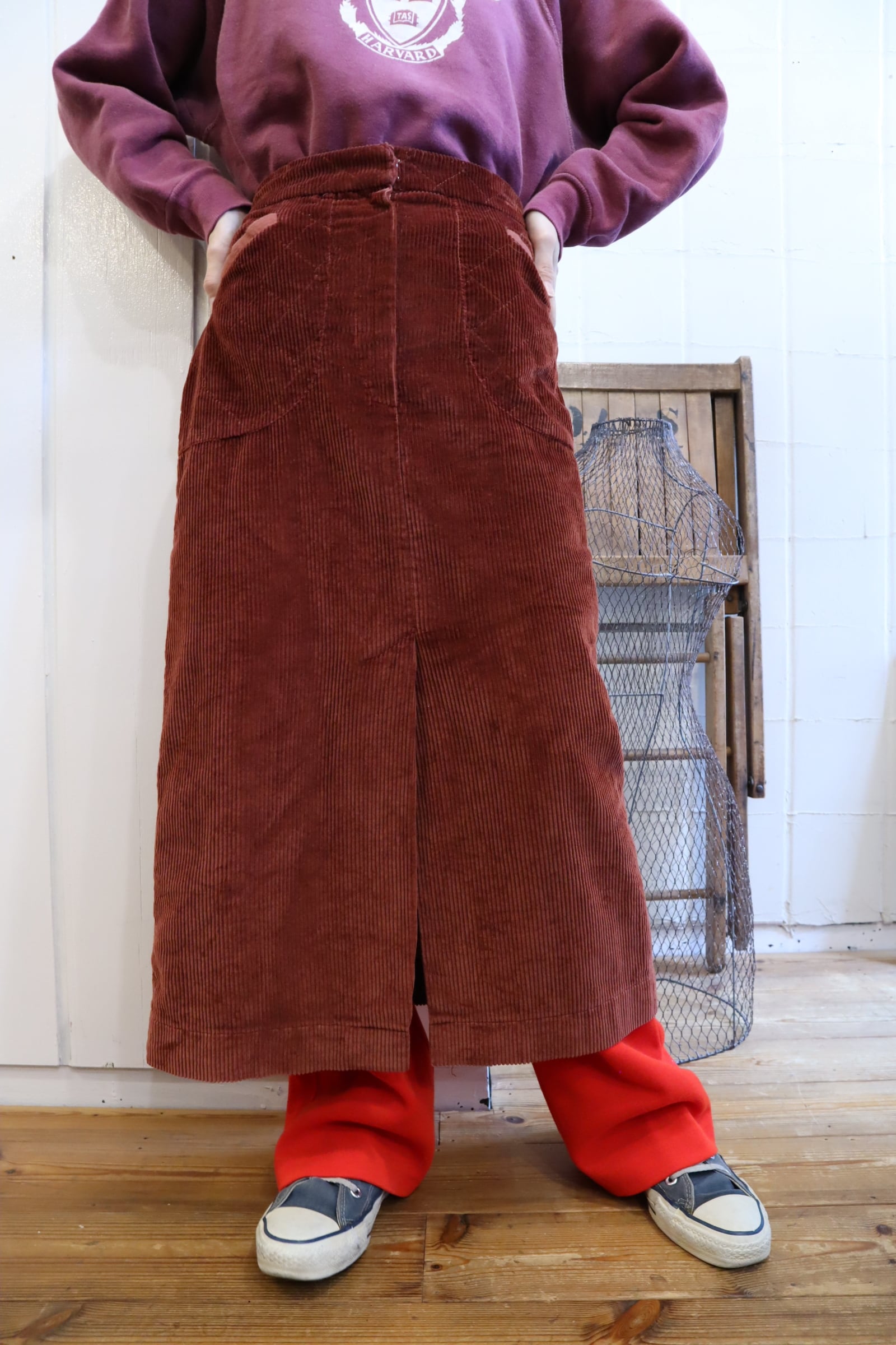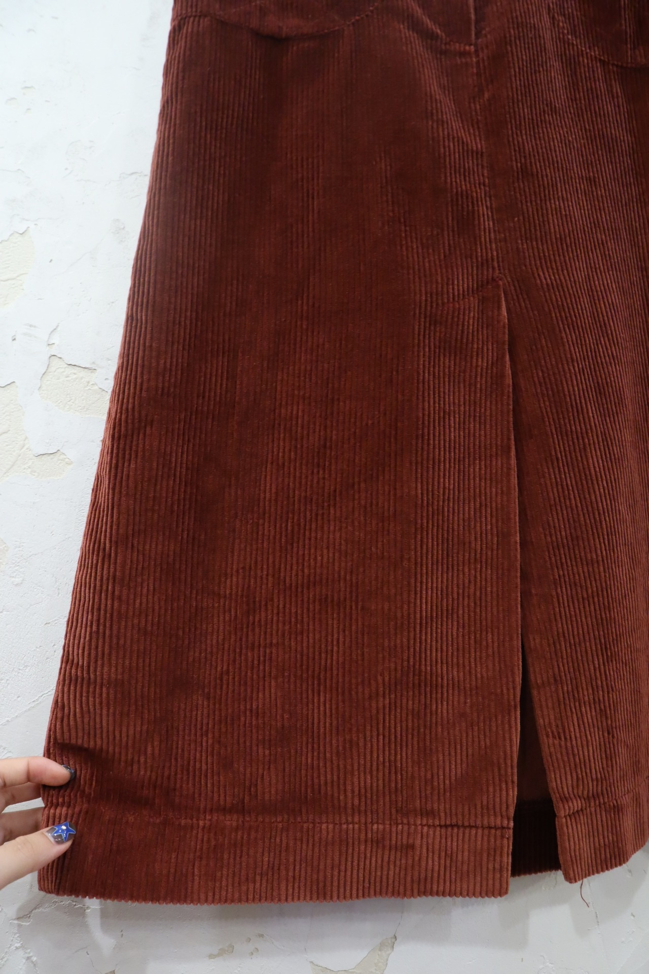 赤味の強いブラウンカラーやステッチデザインが可愛いコーデュロイスカート*