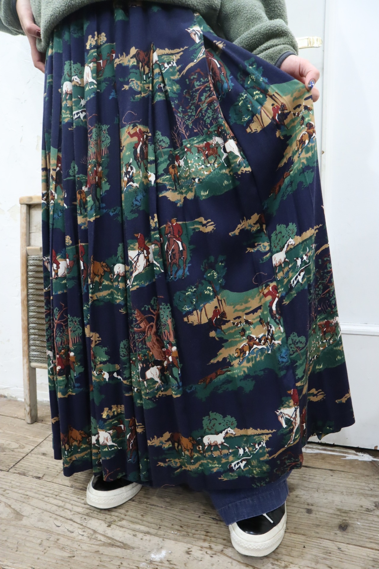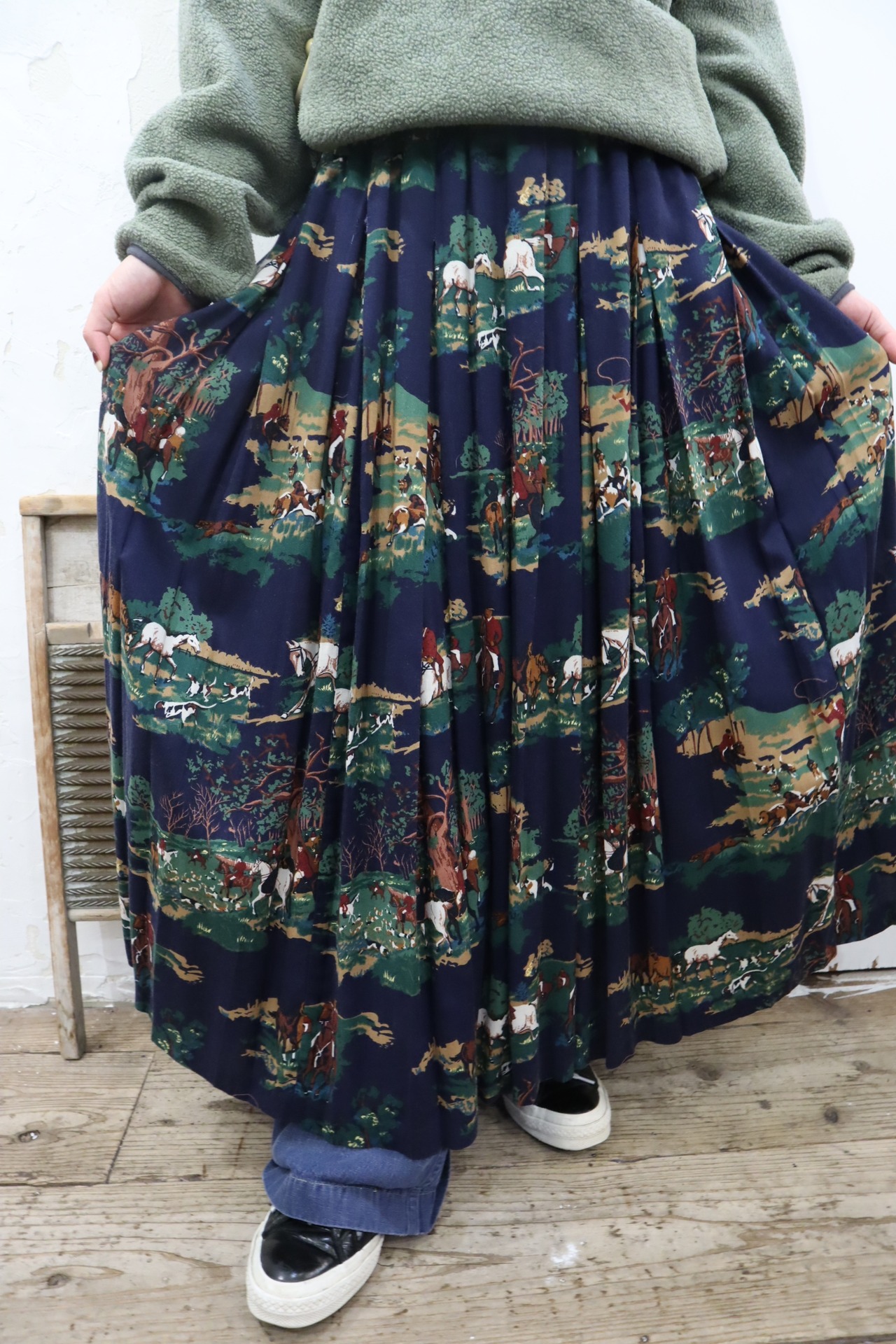 馬や風景、よく見ると犬も描かれた柄が可愛いスカート♡