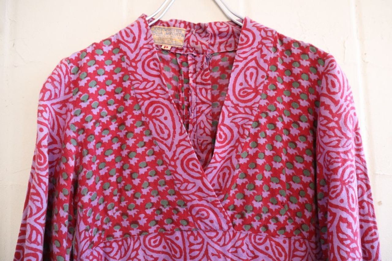 60-70s pink×purple ethnic pattern Indian cotton dress [l-41644]