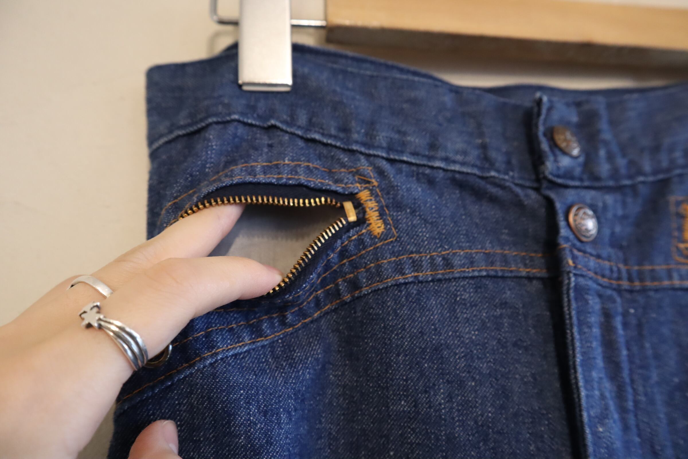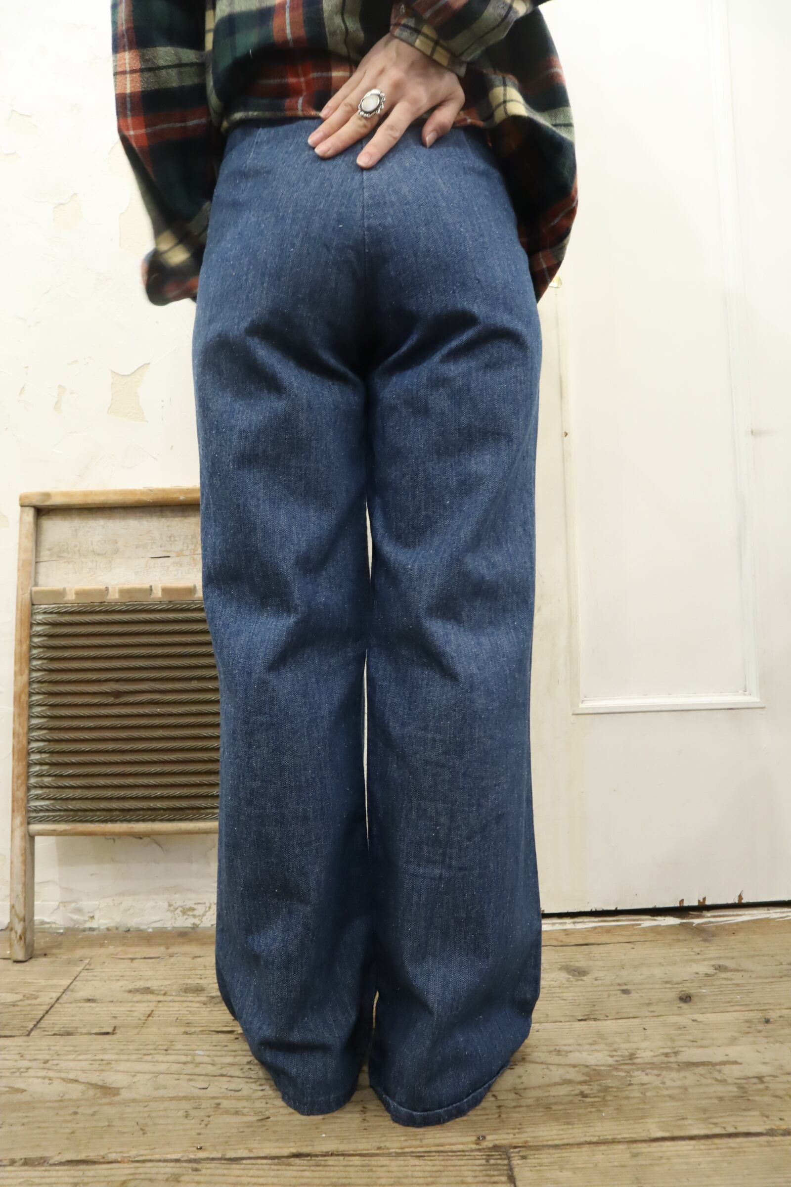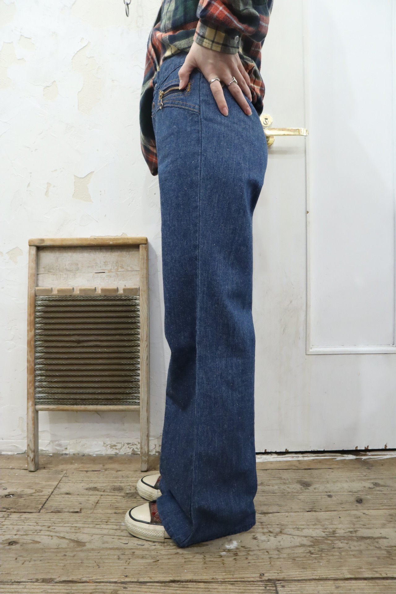 70年代らしいフロントポケットやステッチのデザインがとても可愛いデニムパンツです。