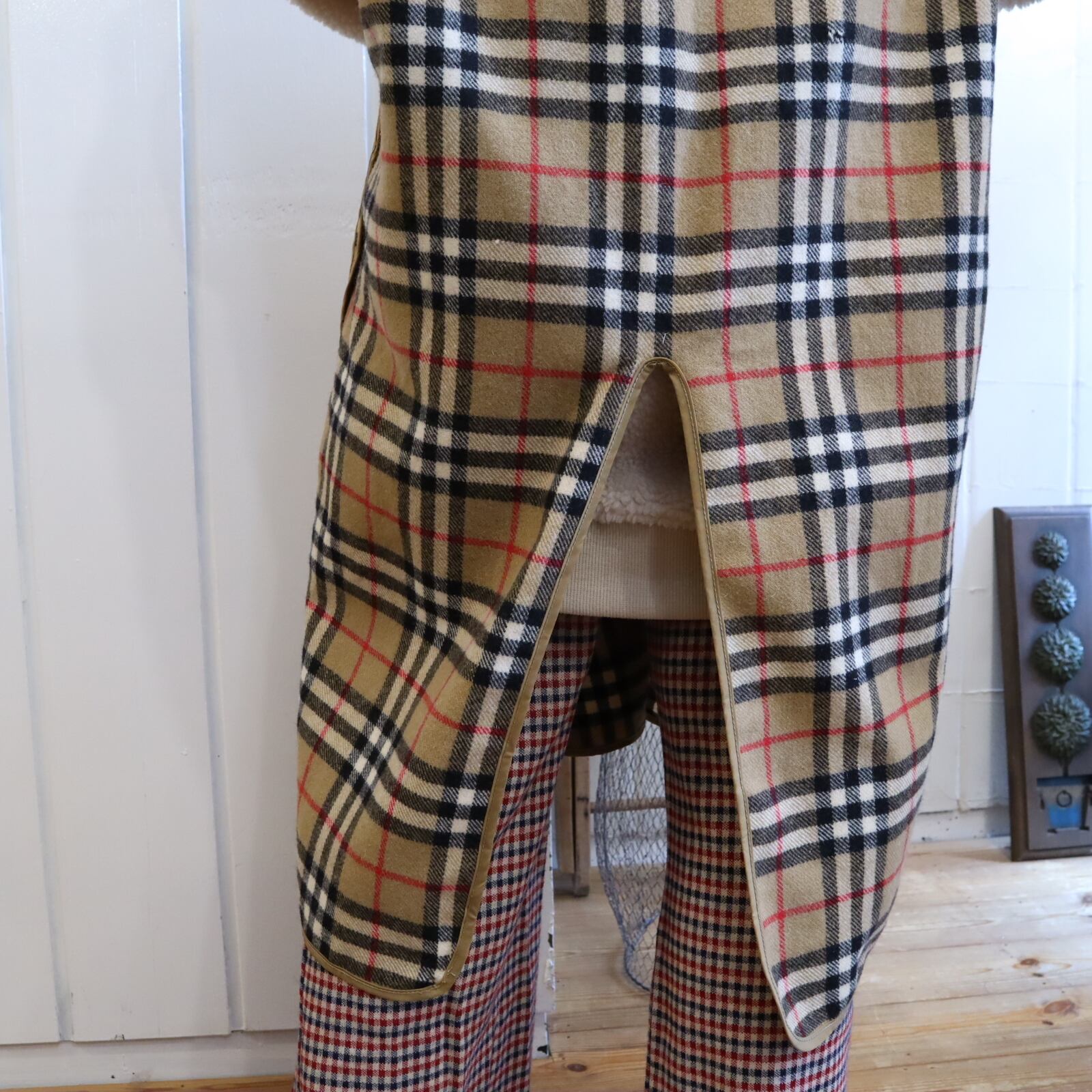 "Burberrys" brown×black×red plaid pattern liner long vest [k-1610]