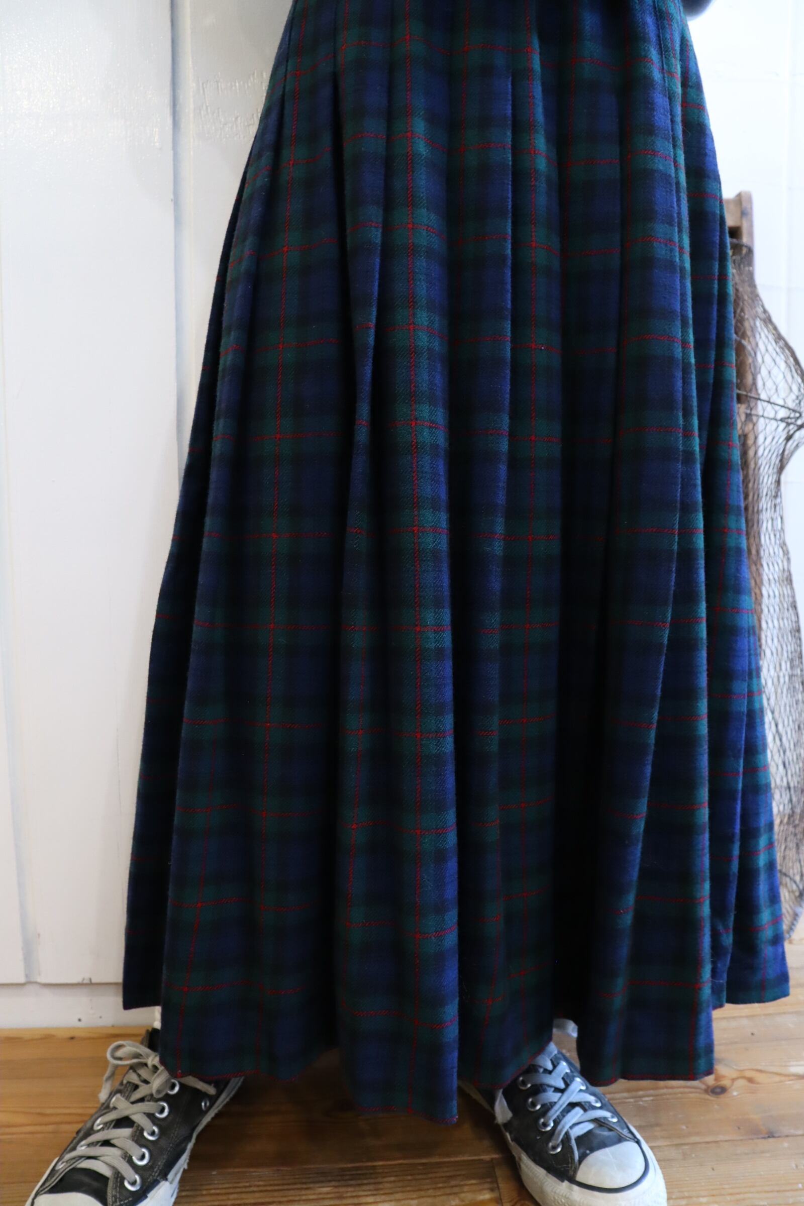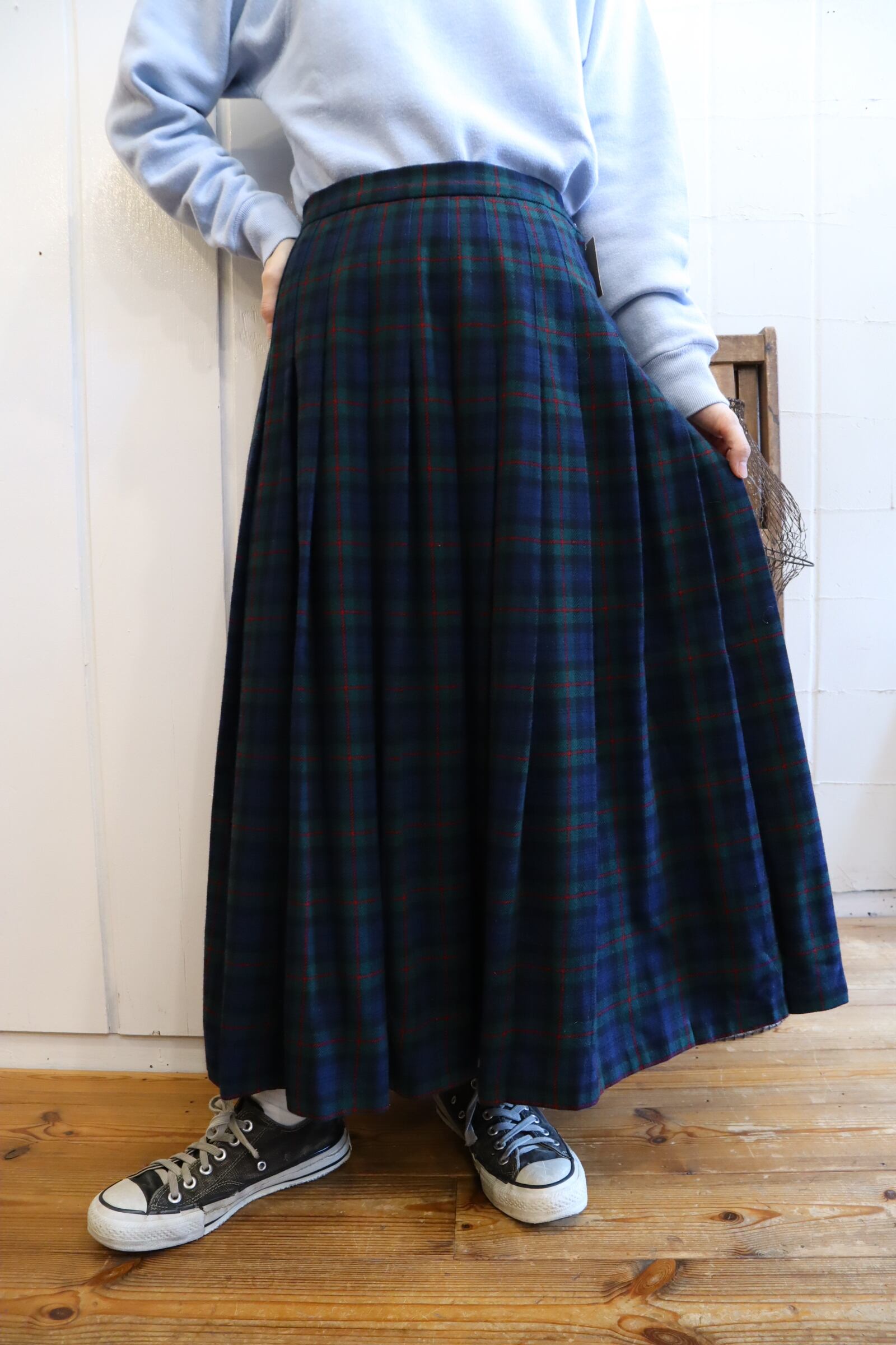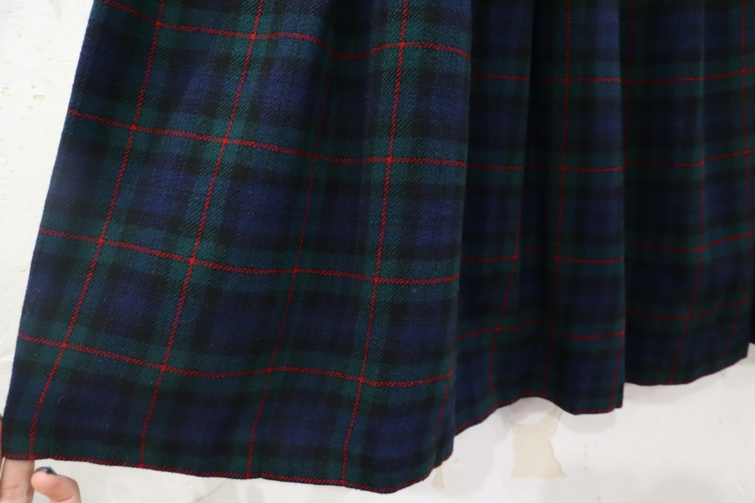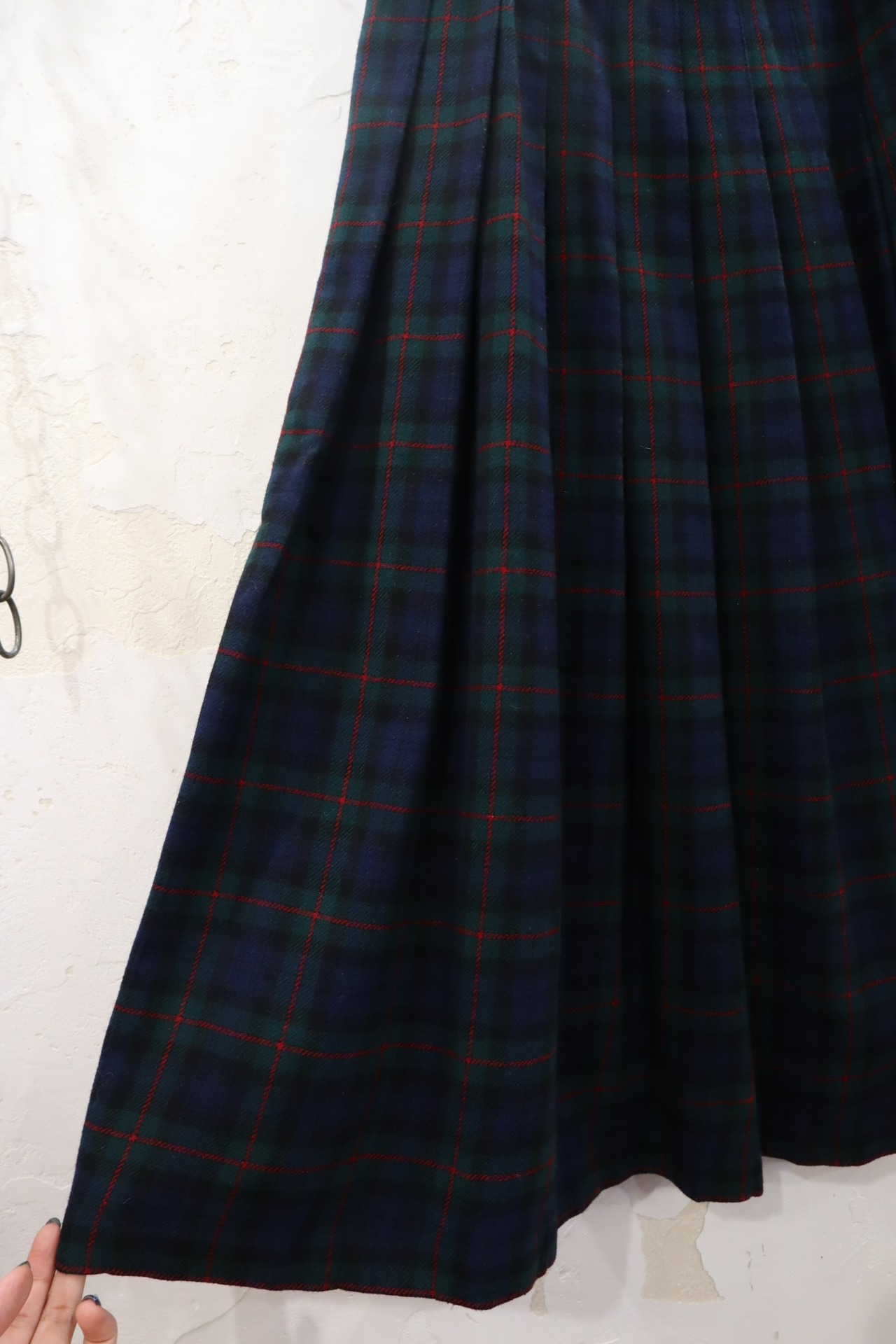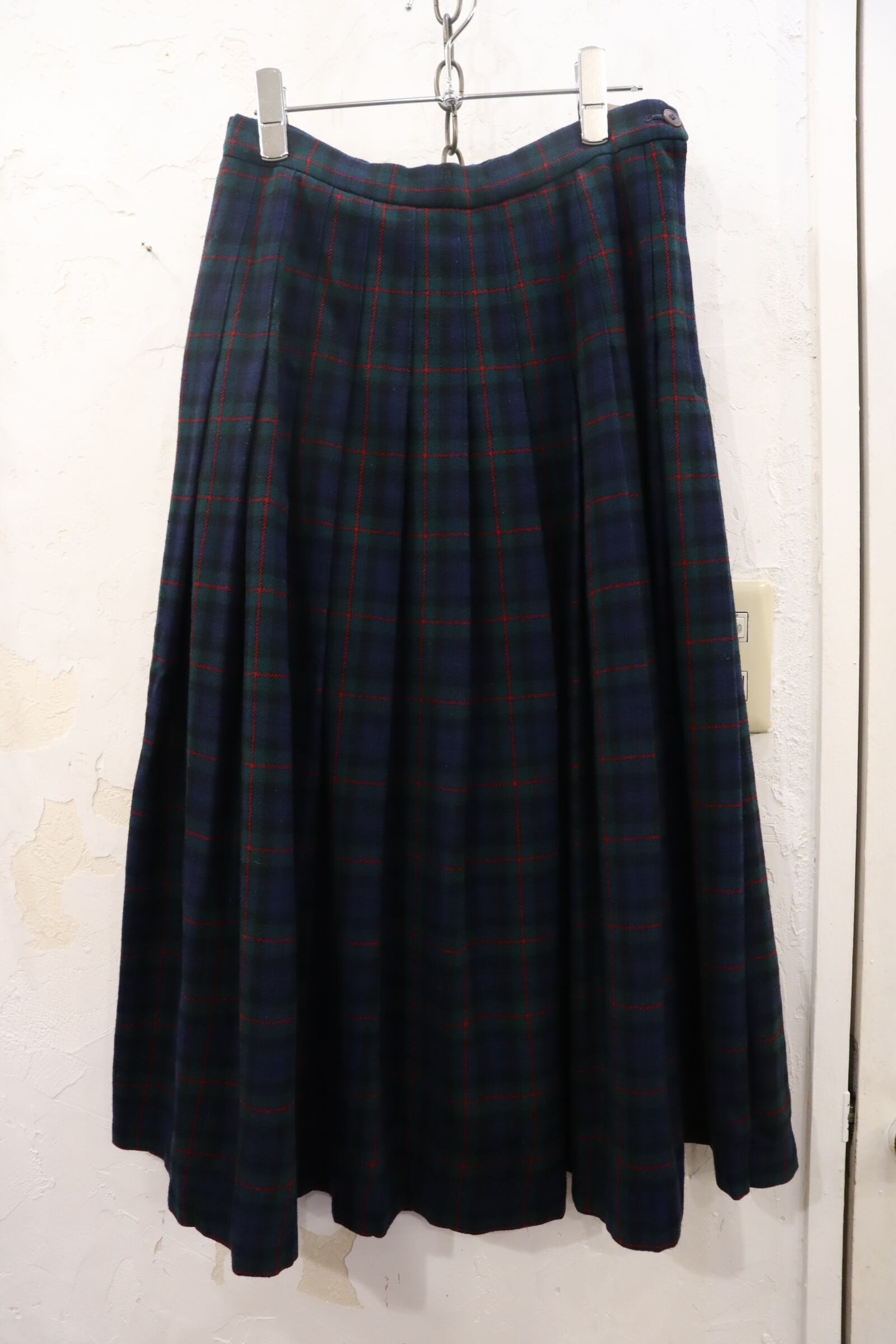 made in USA "PENDLETON" green×red×black plaid wool skirt [l-1614]
