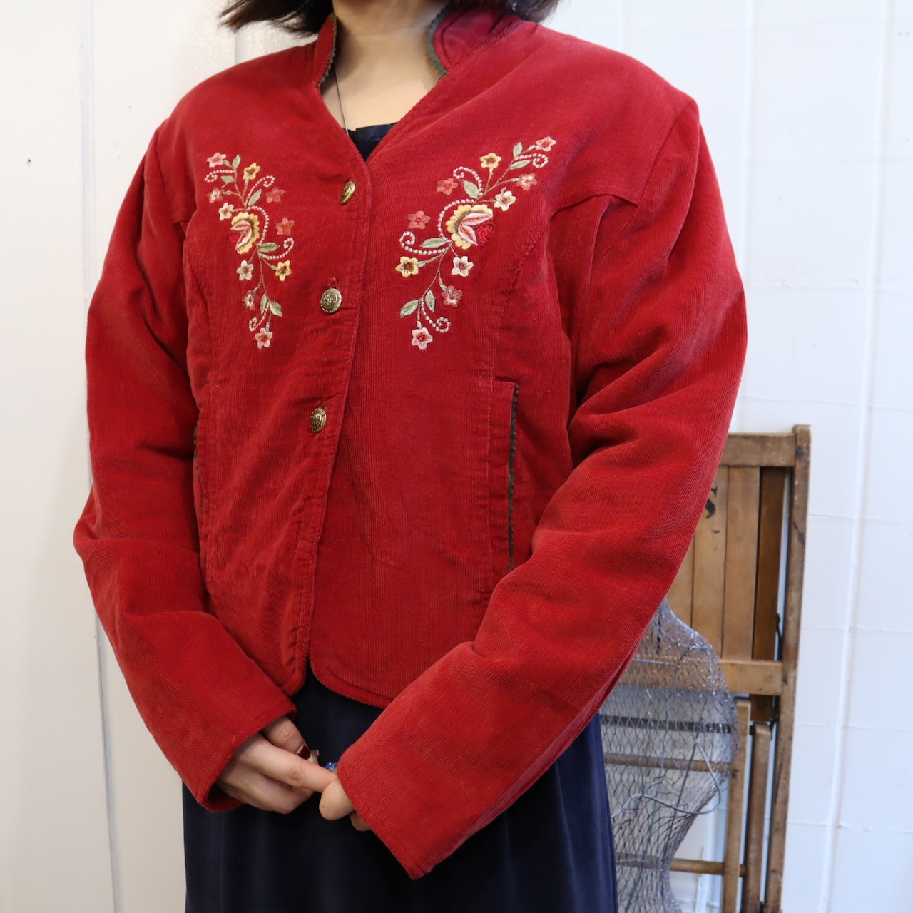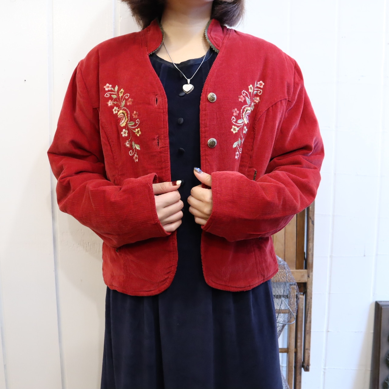 red embroidery Tyrolean corduroy jacket[l-1625]