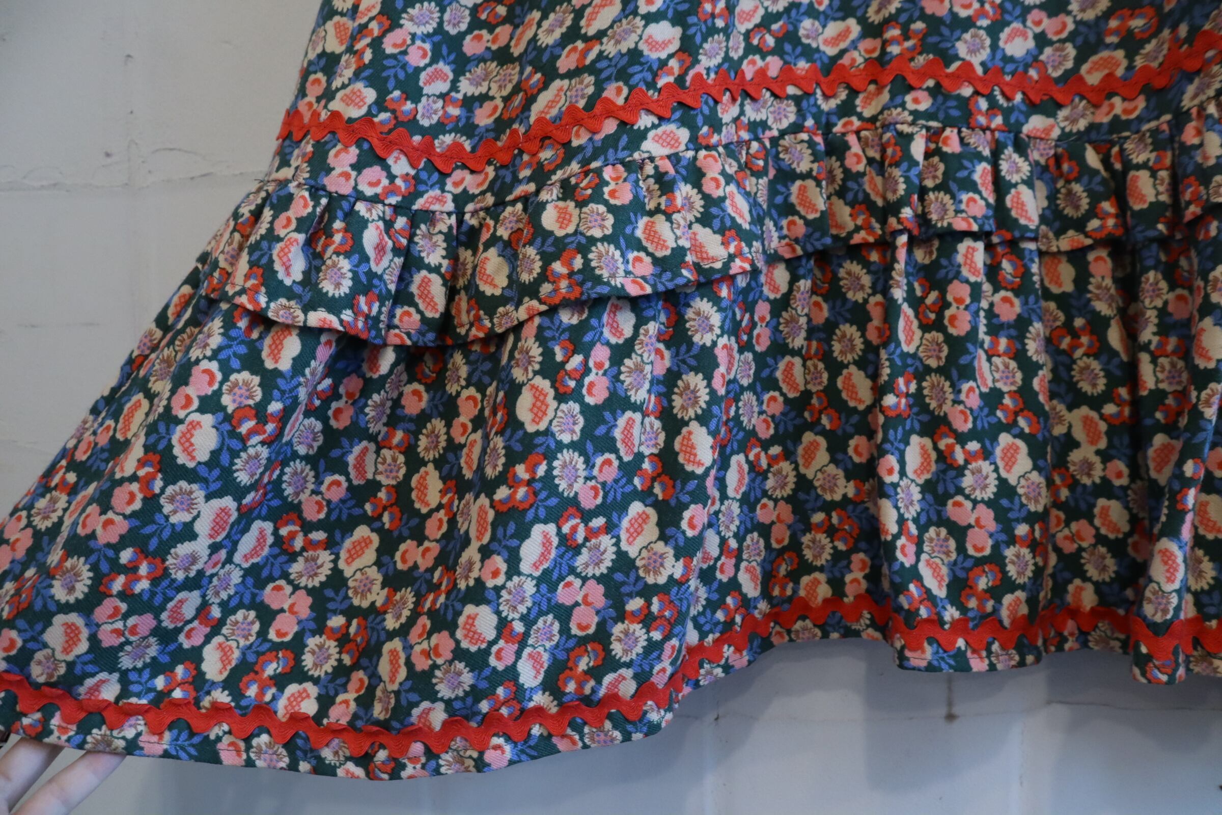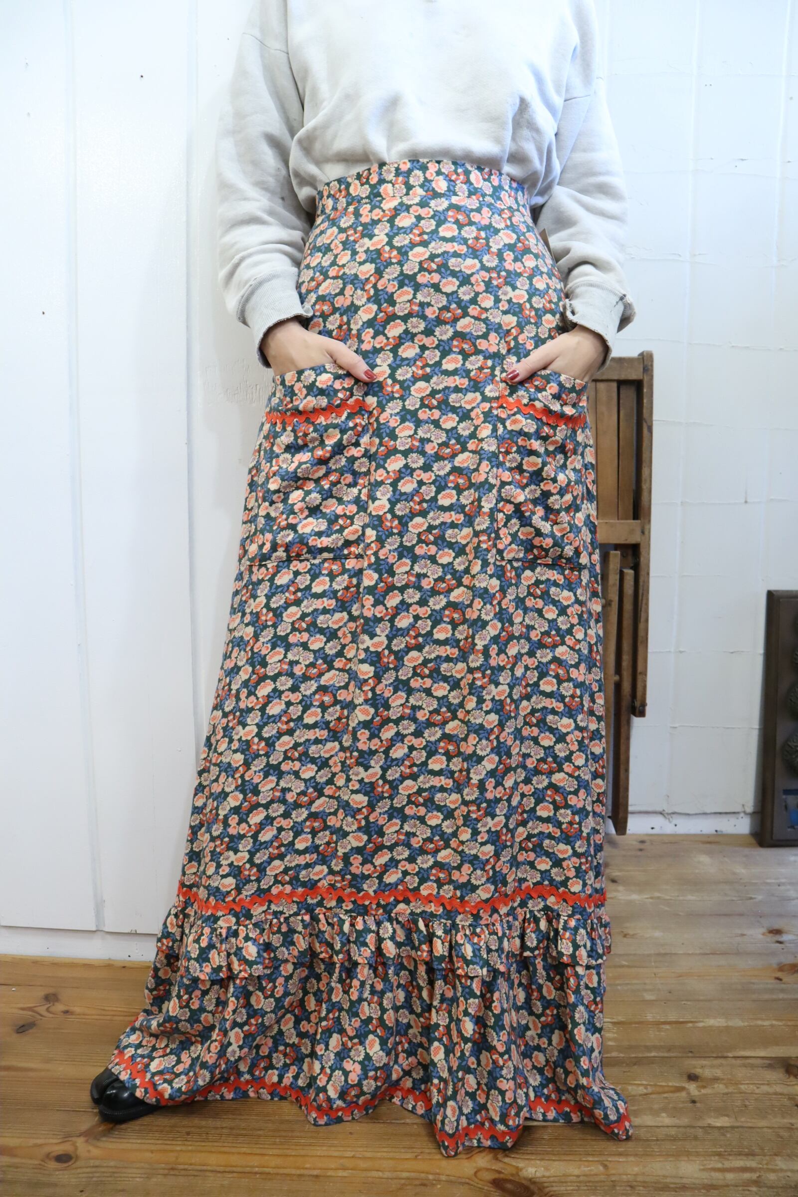 カラーリングや可愛い花柄が目を惹く70sロングスカートです。