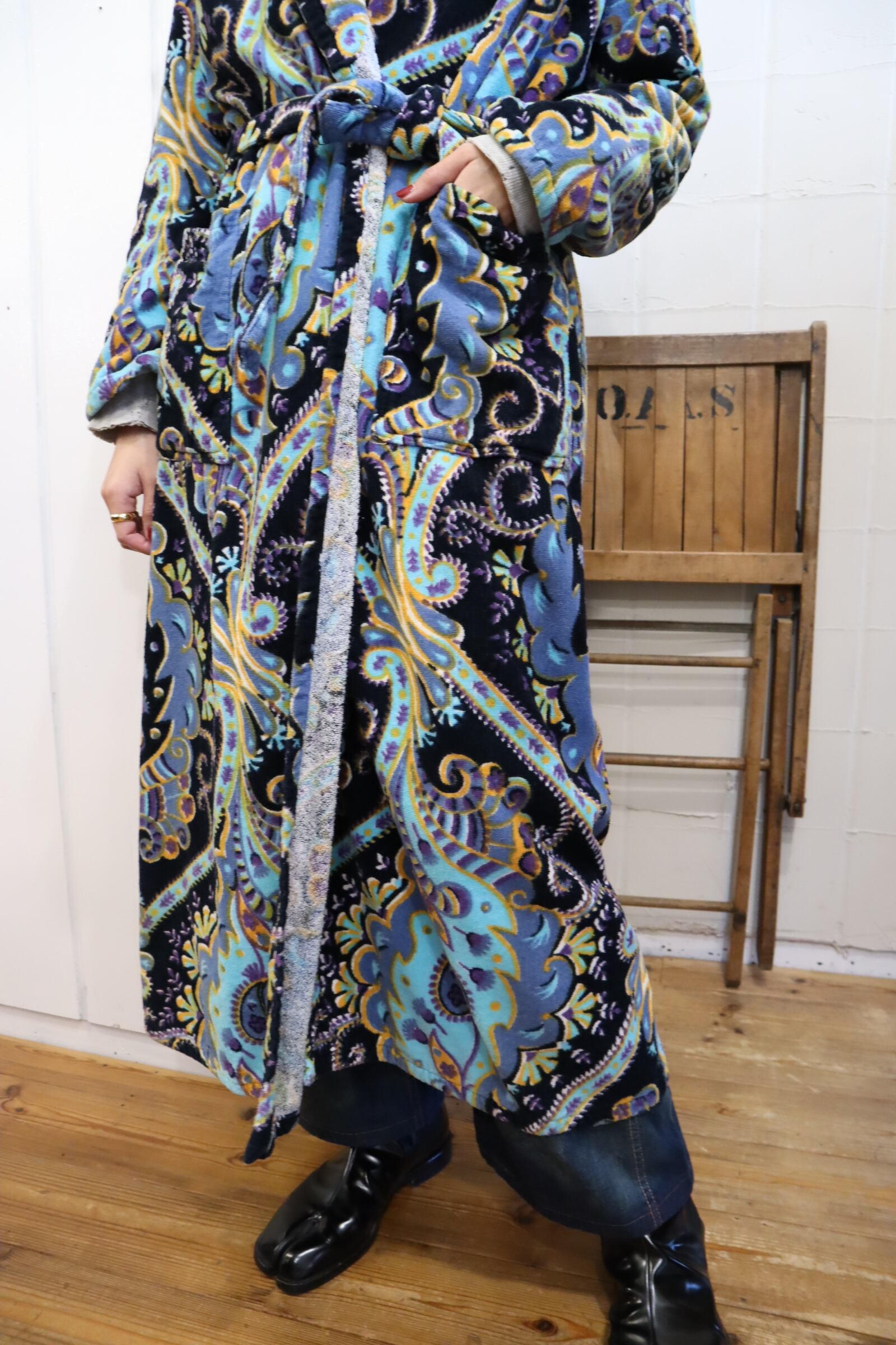 お花や渦のような華やかな柄が可愛いパイルガウンです*