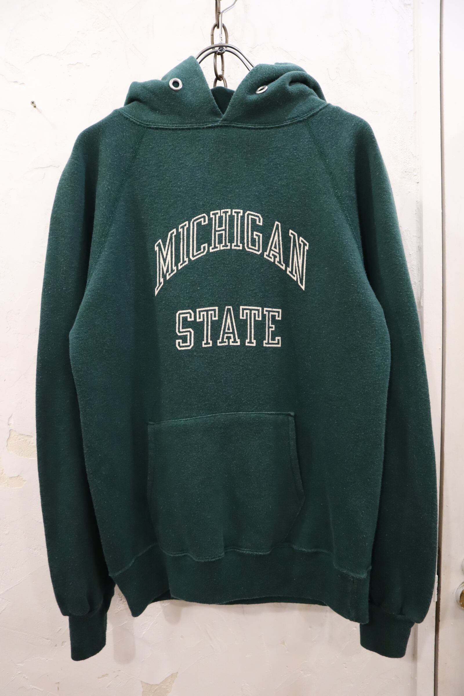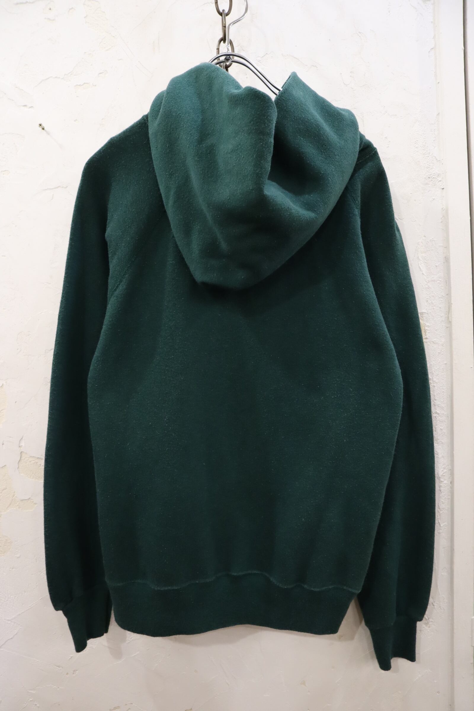 80s"champion" green×white rubber print hoodie sweat [l-1652]
