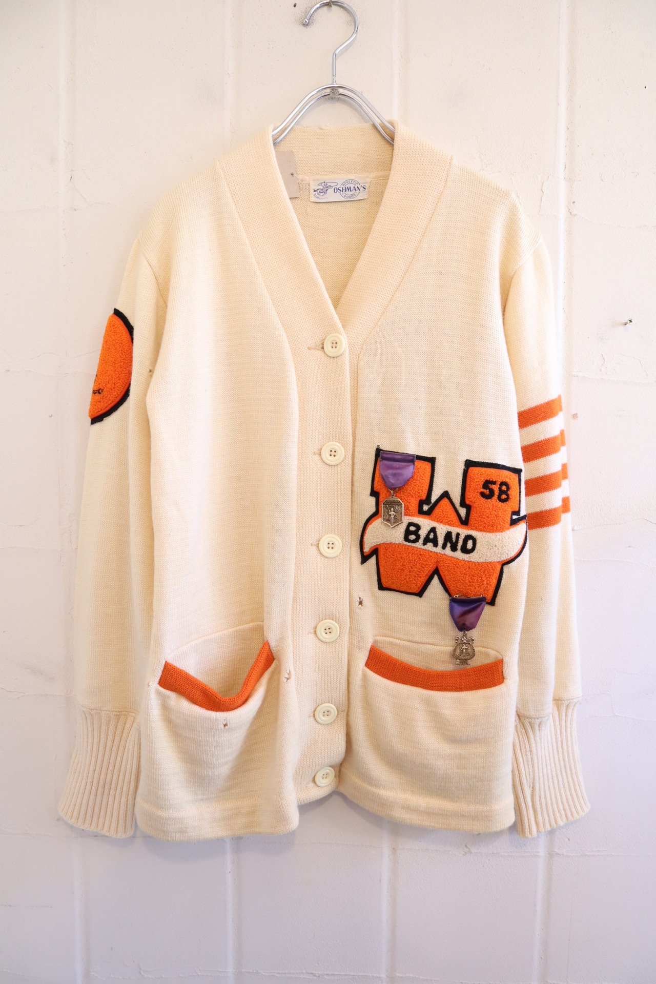 50s offwhite×orange lettered wappen knit cardigan [l-1655]