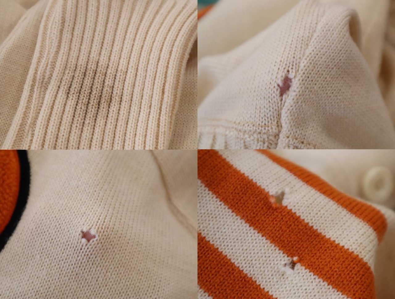 全体的に小穴や破れ、シミや汚れが見受けられますが、いずれも古着の味として着て頂けるかと思います。