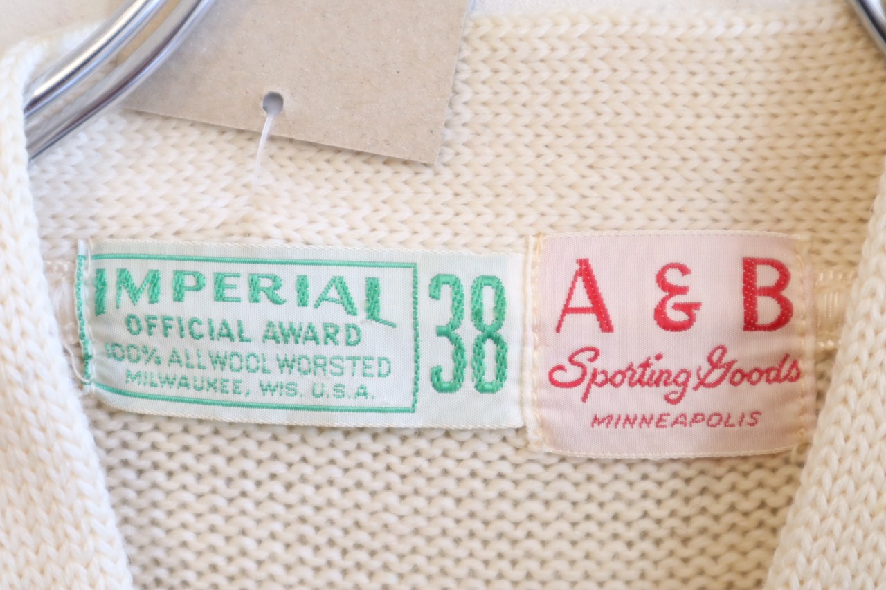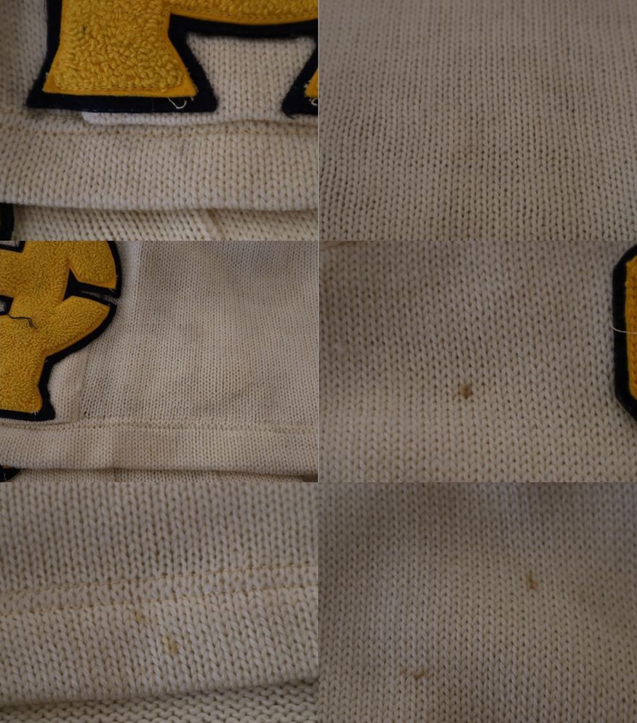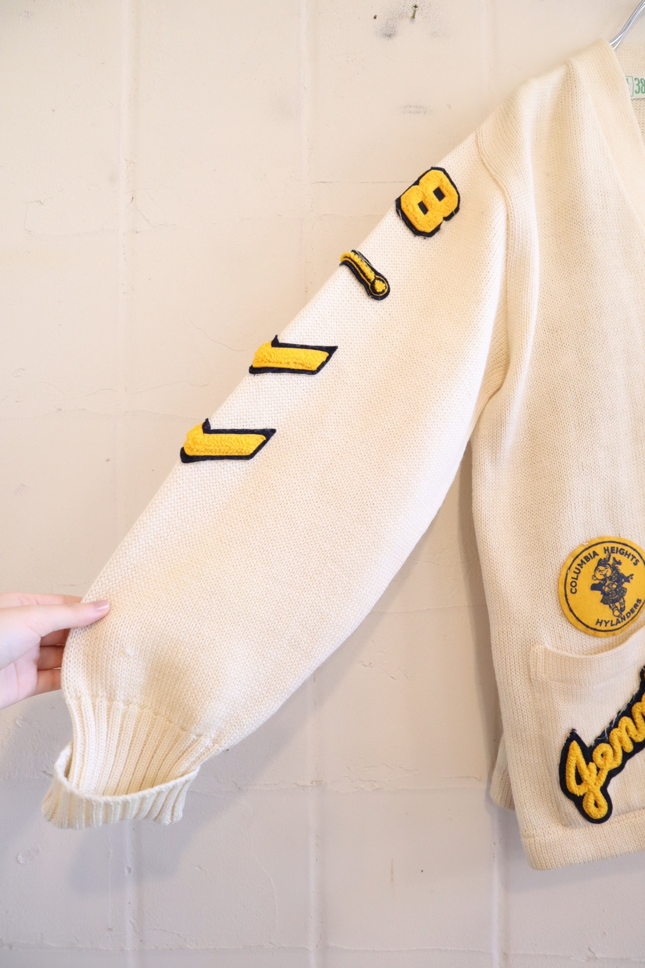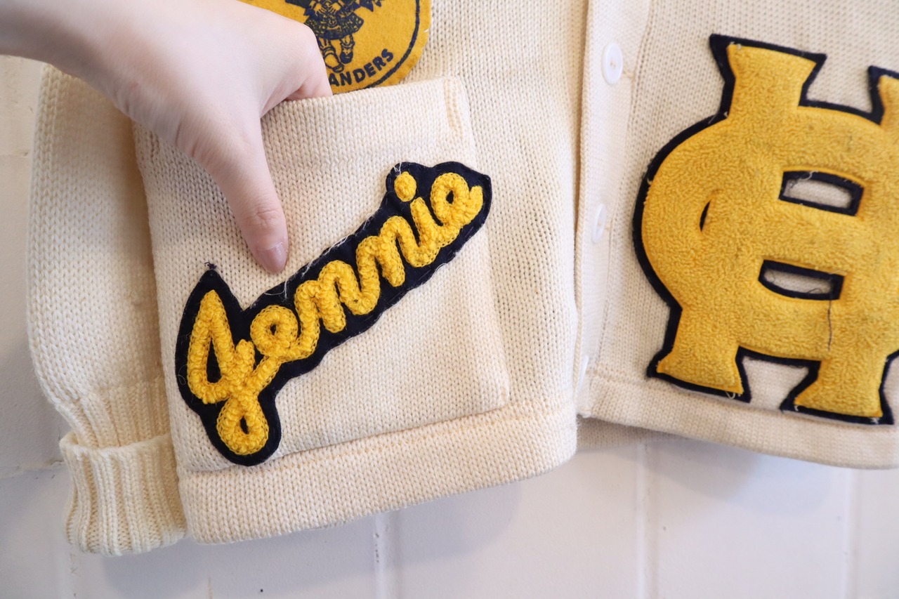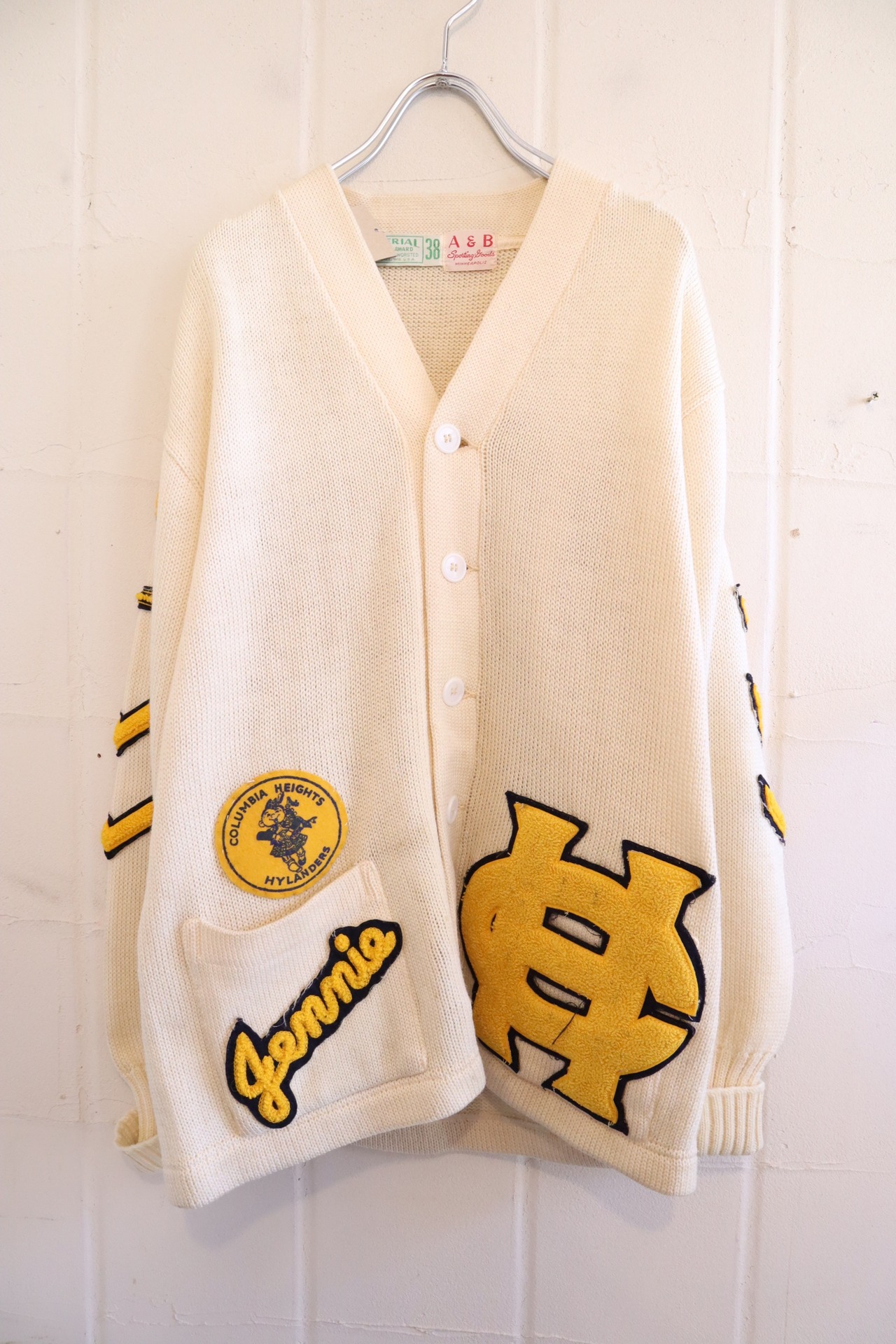 60s offwhite×yellow lettered wappen knit cardigan [l-1656]