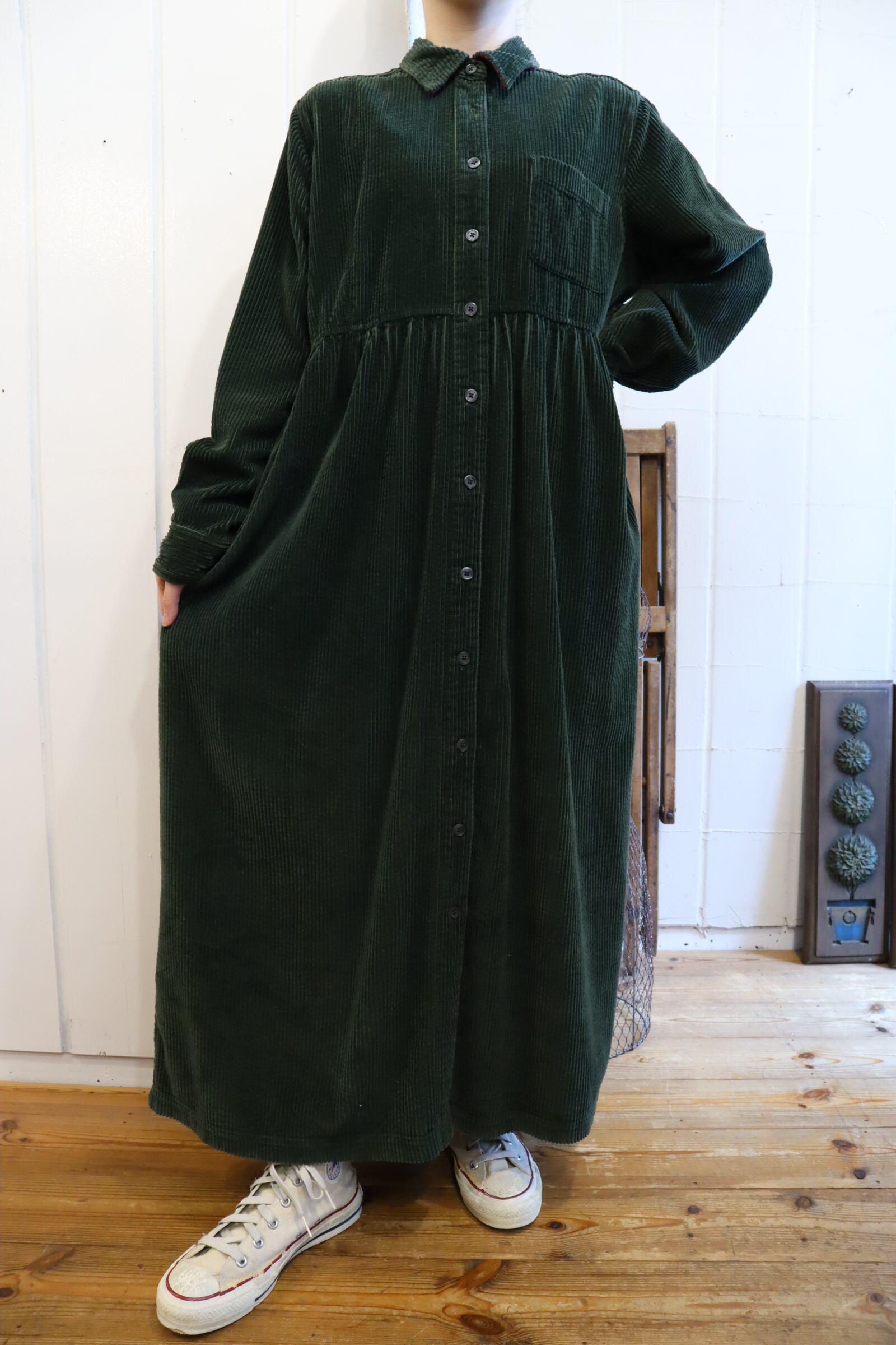 "Eddie Bauer" green plain long sleeve corduroy dress [l-1662]
