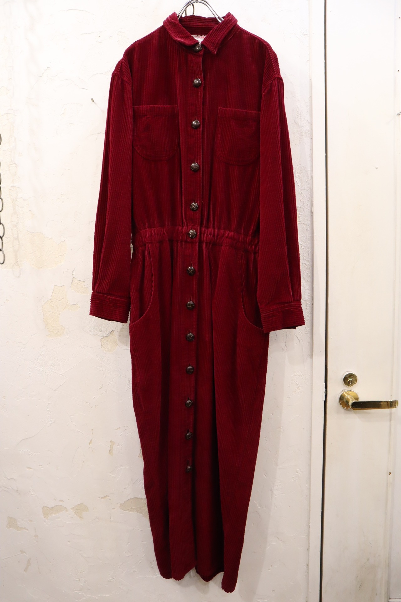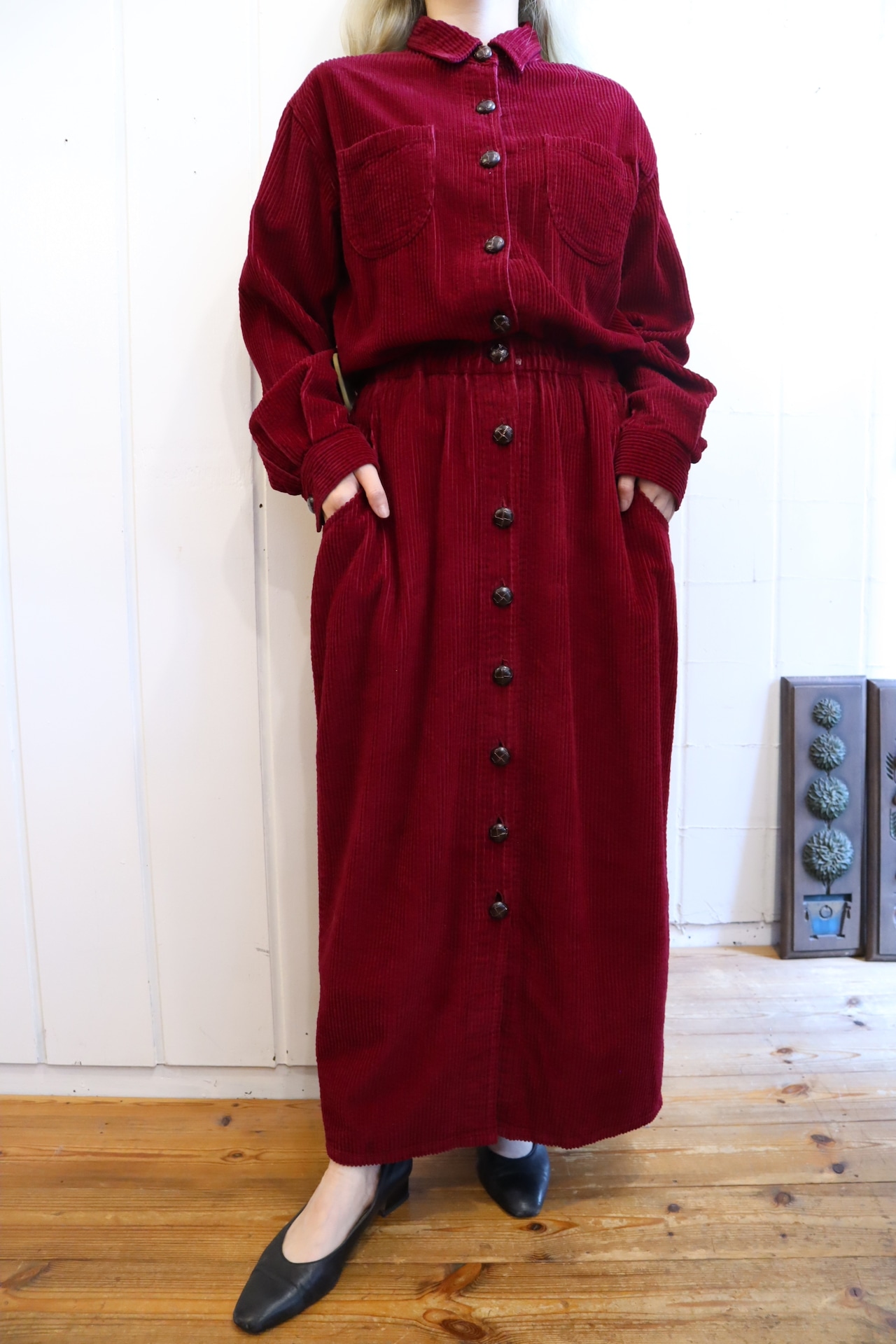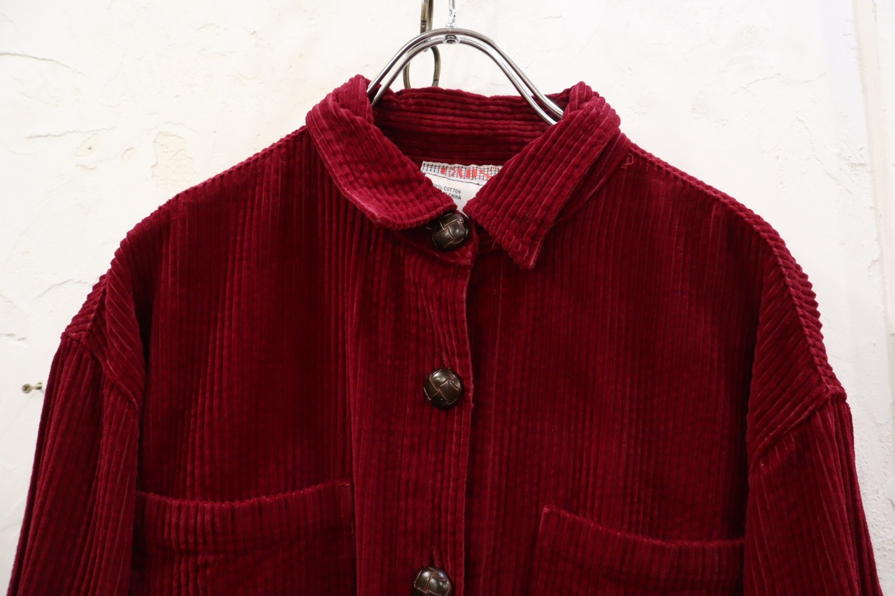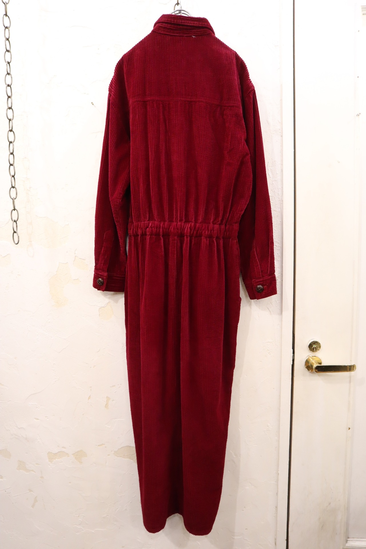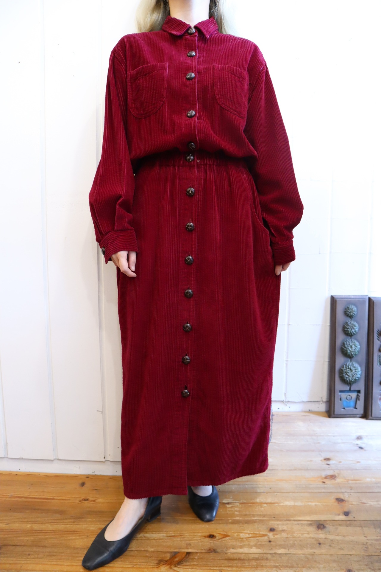 winered plain long sleeve corduroy dress [l-1663]