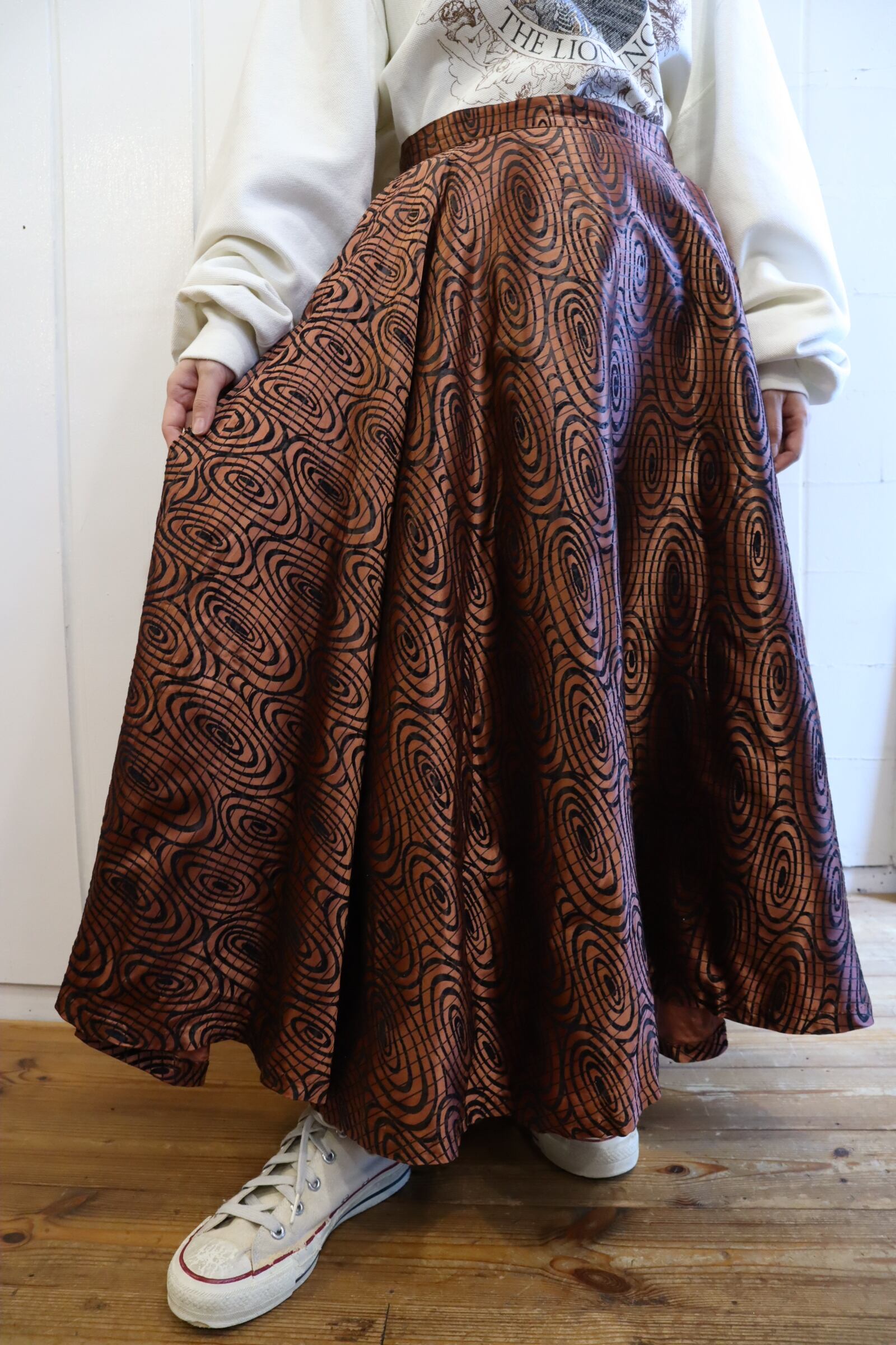 渦巻きのようなぐるぐるしたテキスタイルが可愛いヴィンテージスカートです。