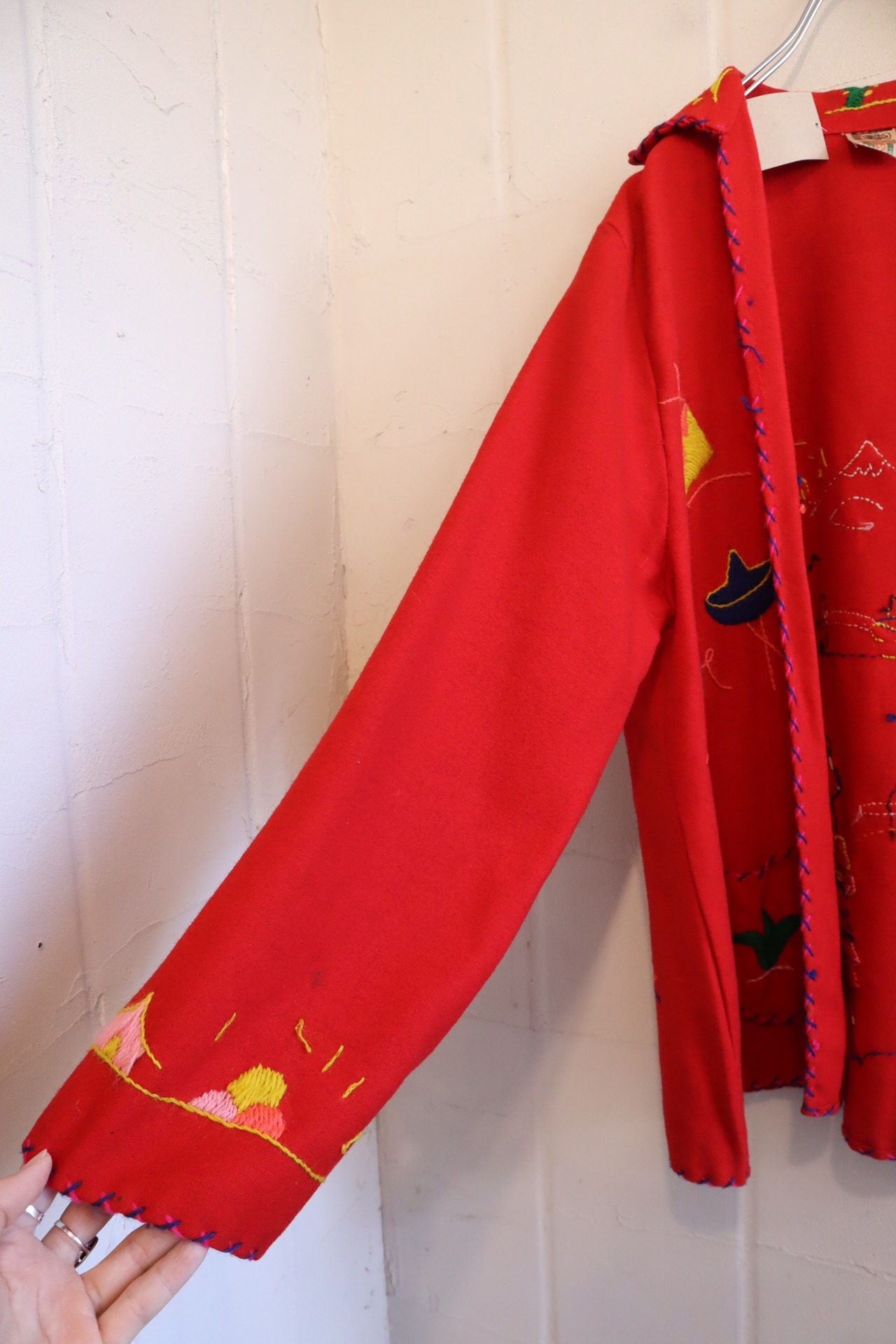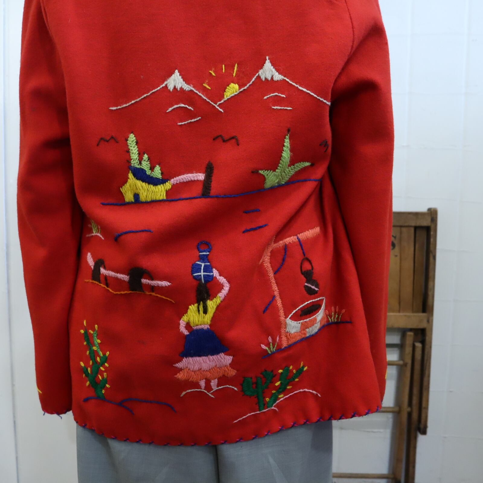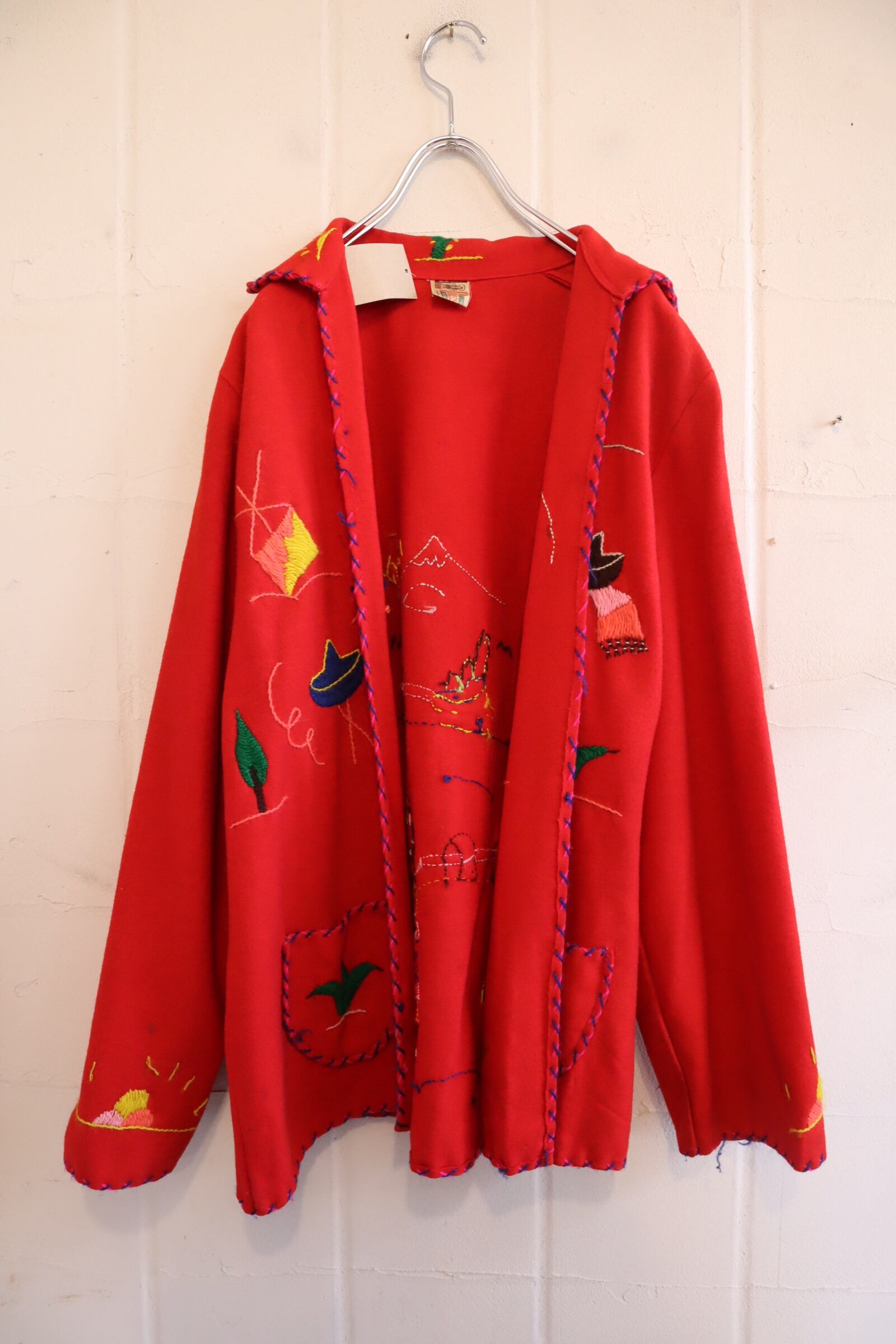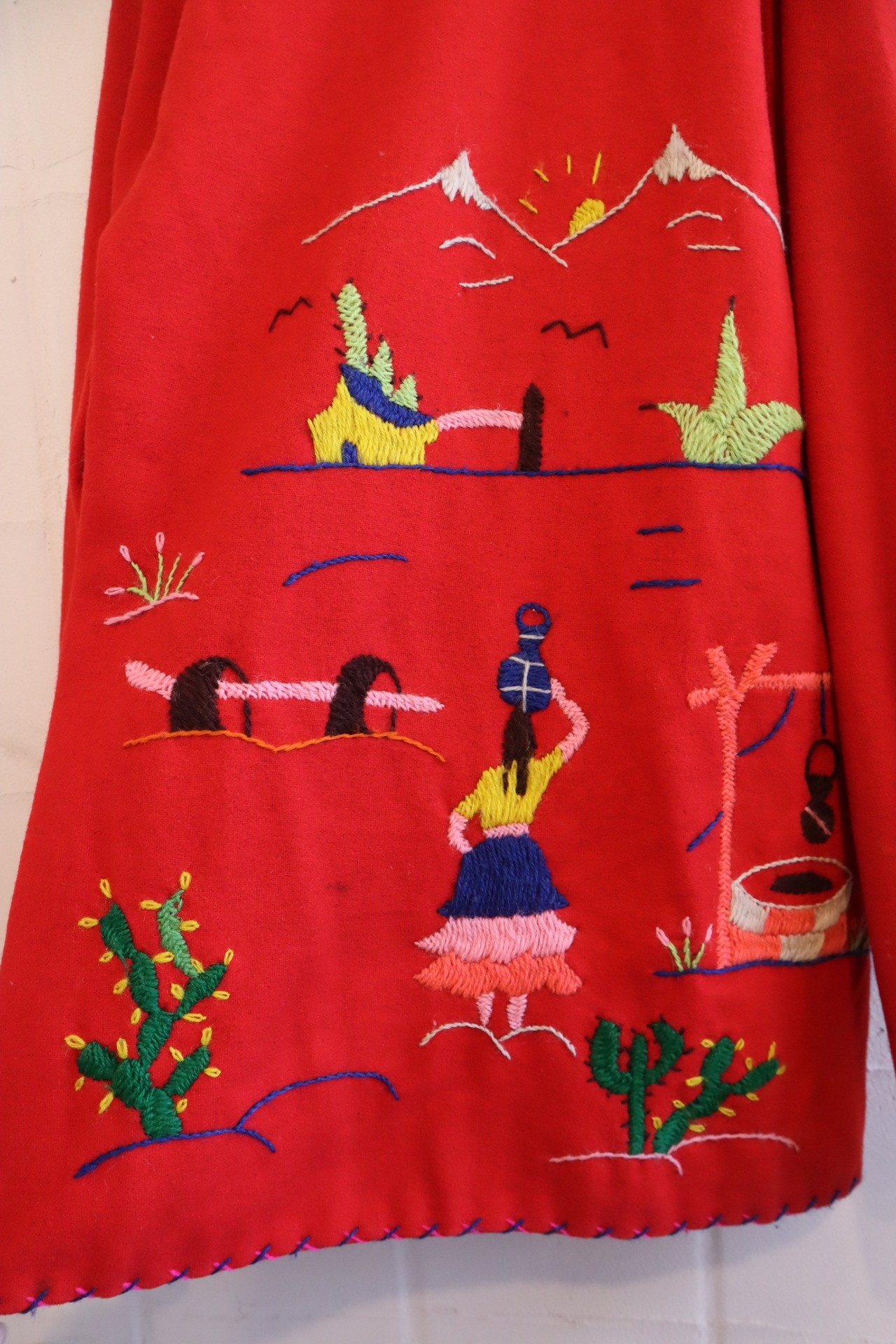 50-60s red×colorful embroidery Mexican jacket [l-1667]