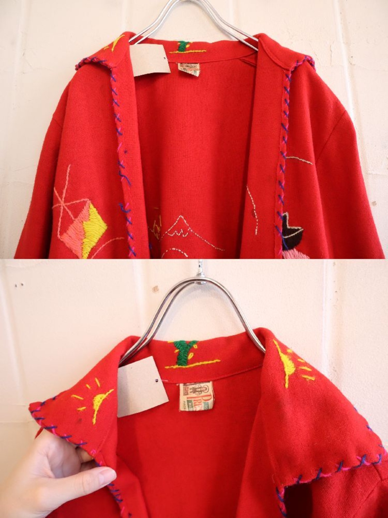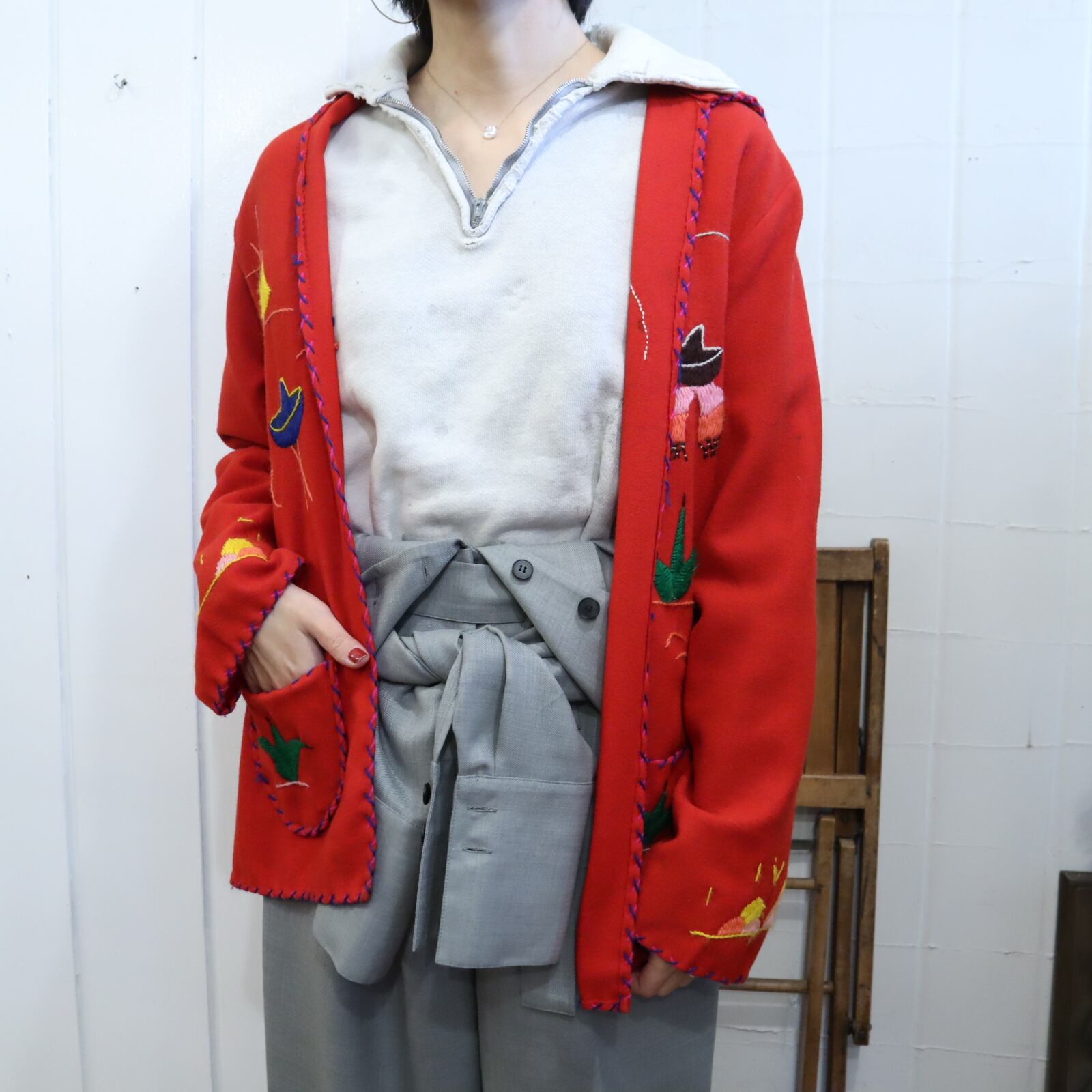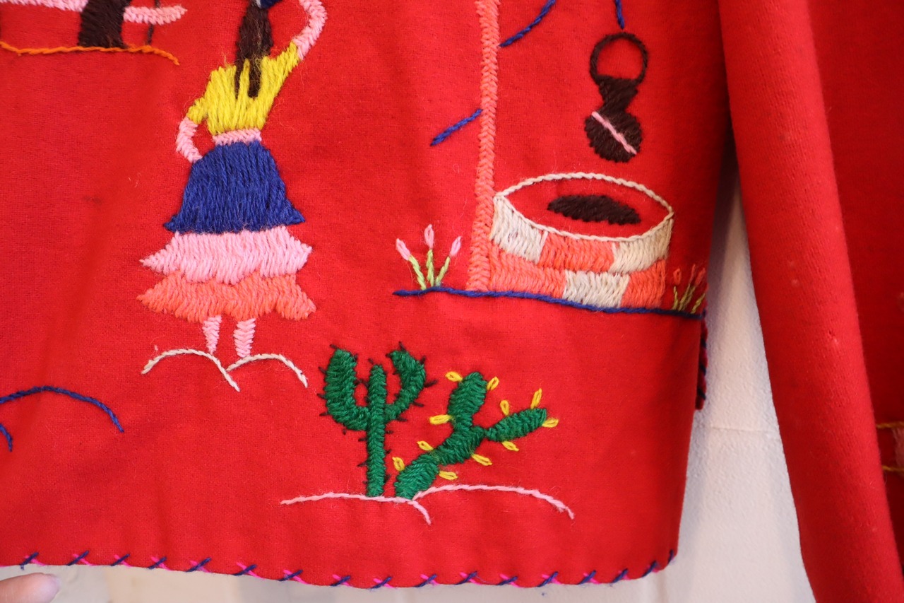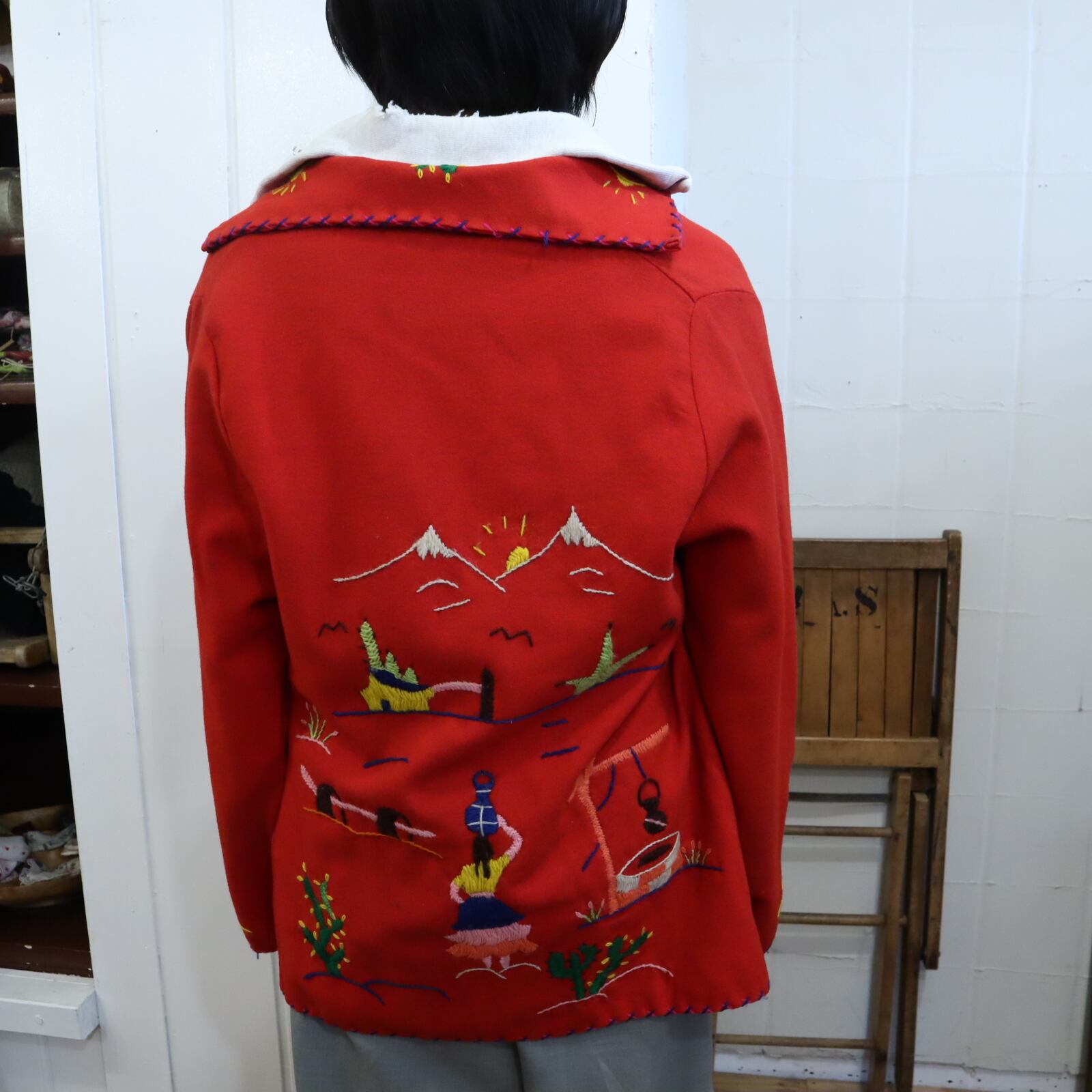 50-60s red×colorful embroidery Mexican jacket [l-1667]