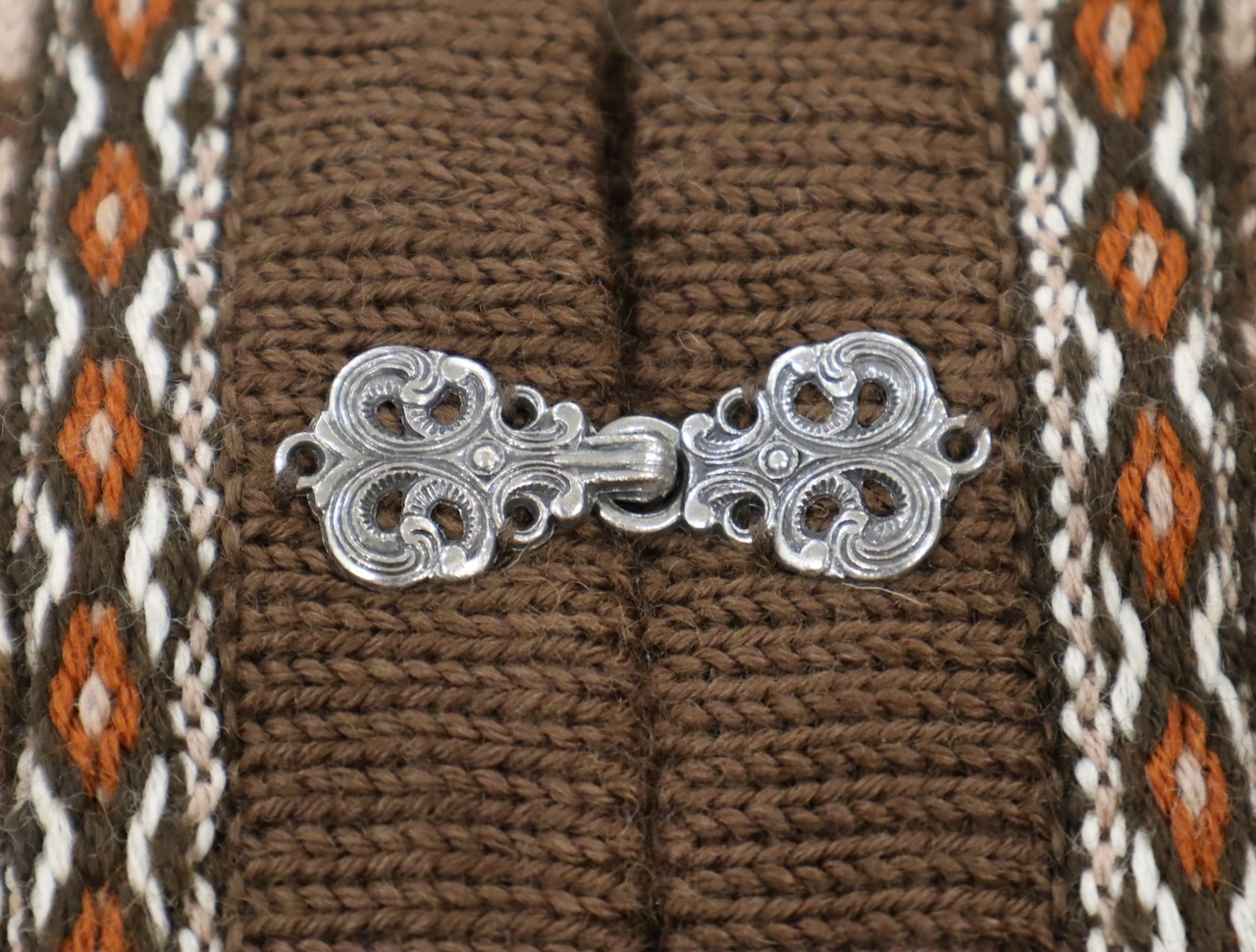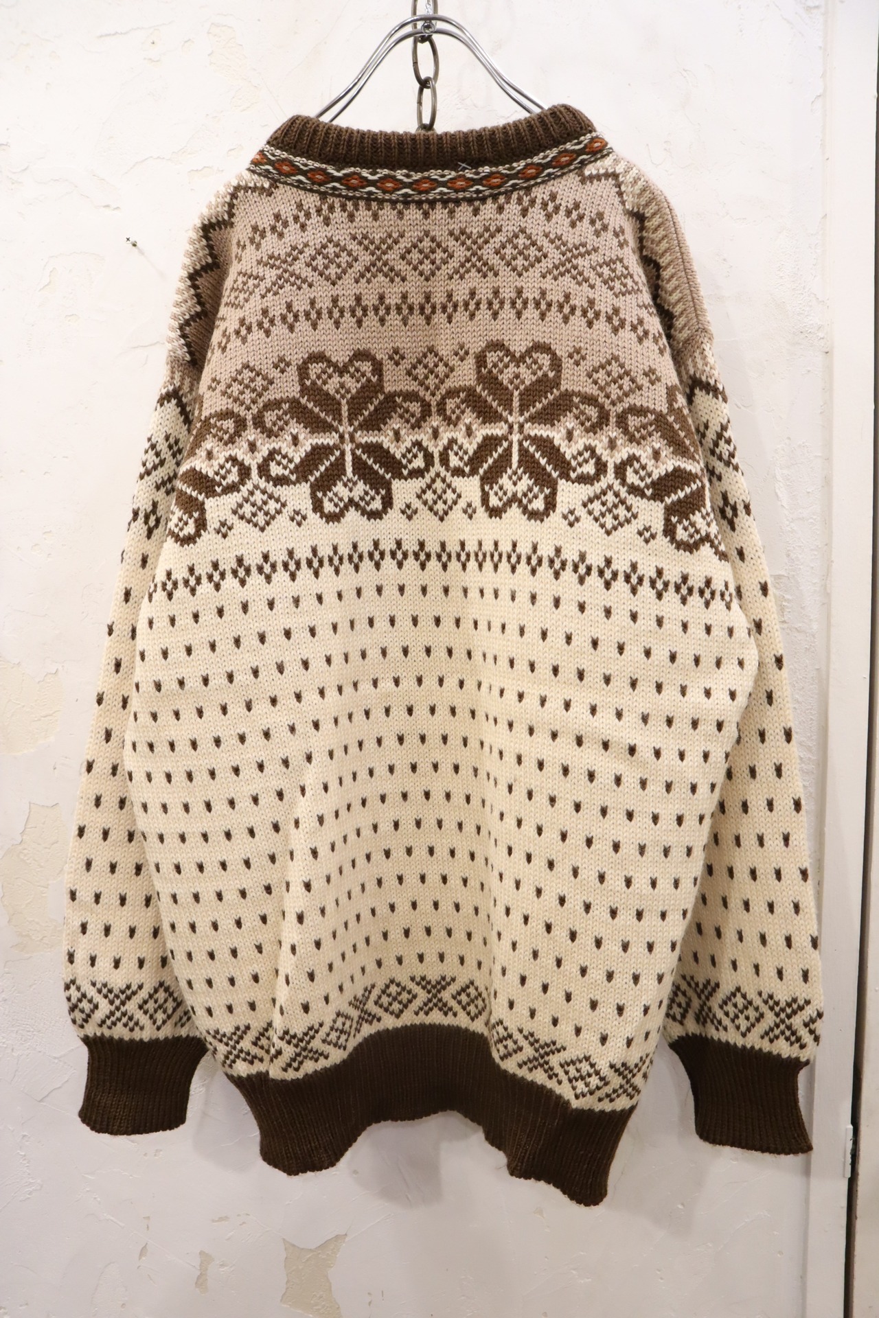 ivory×brown×orange red hook Nordic knit cardigan [k-1669]