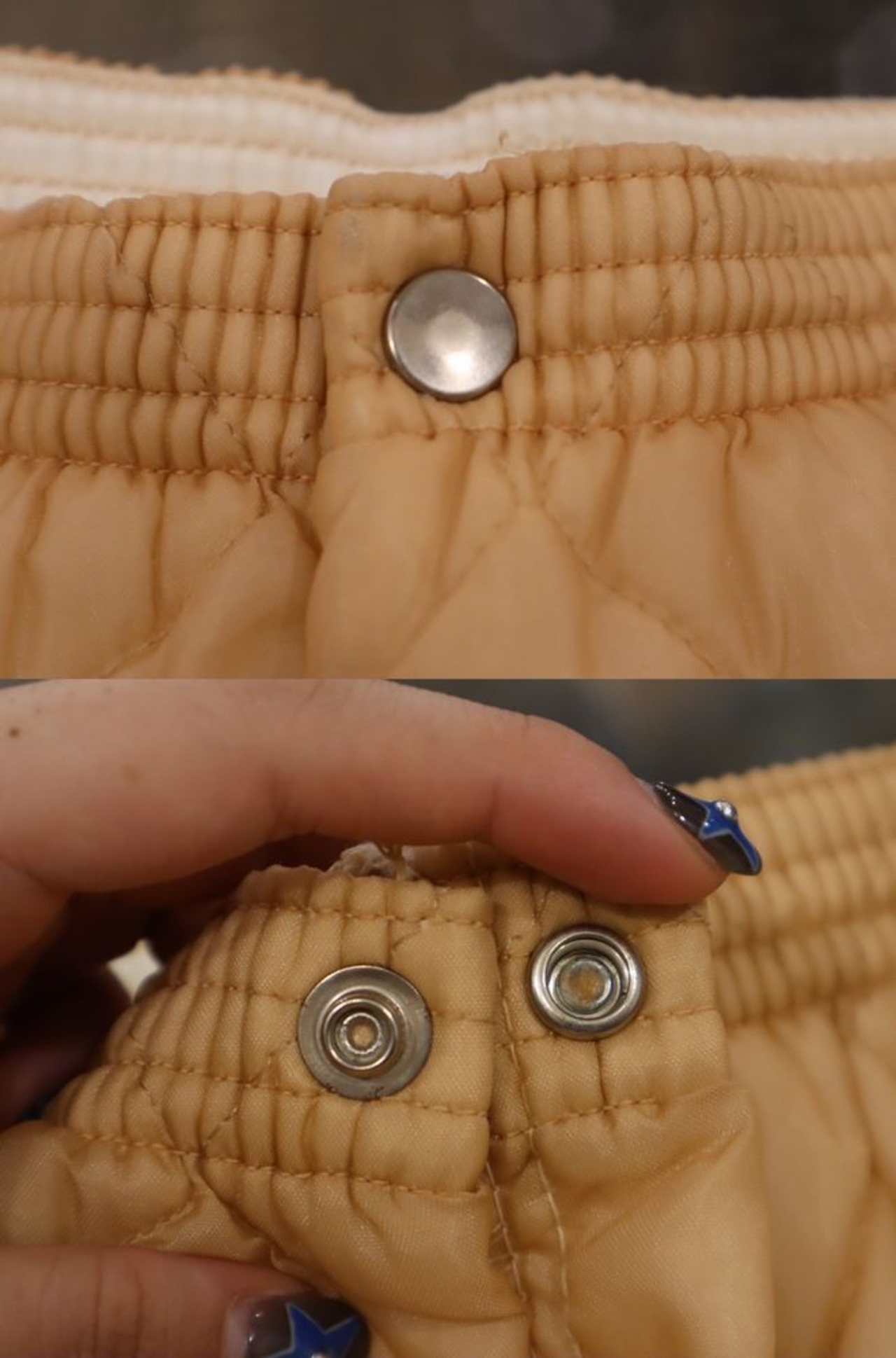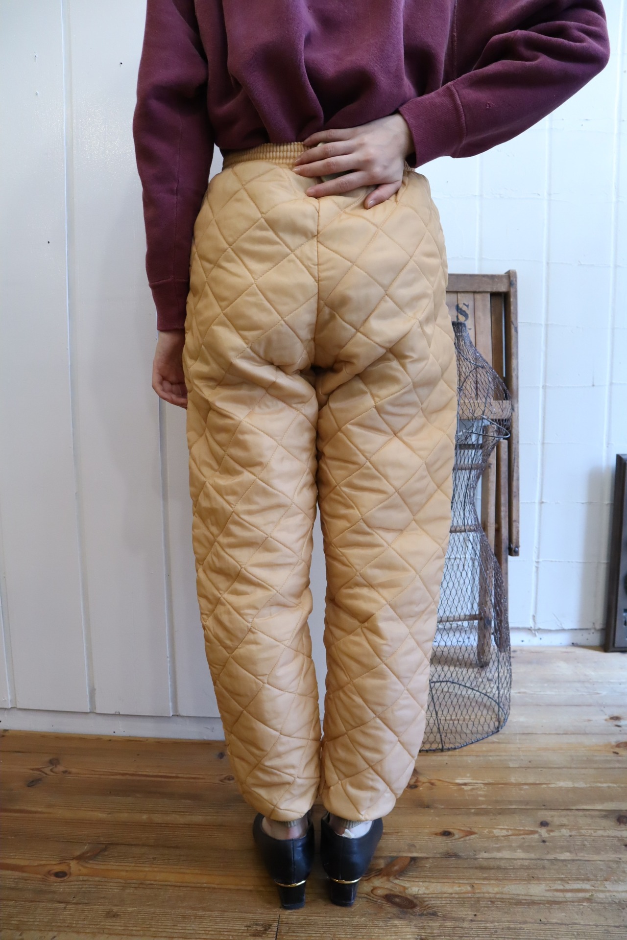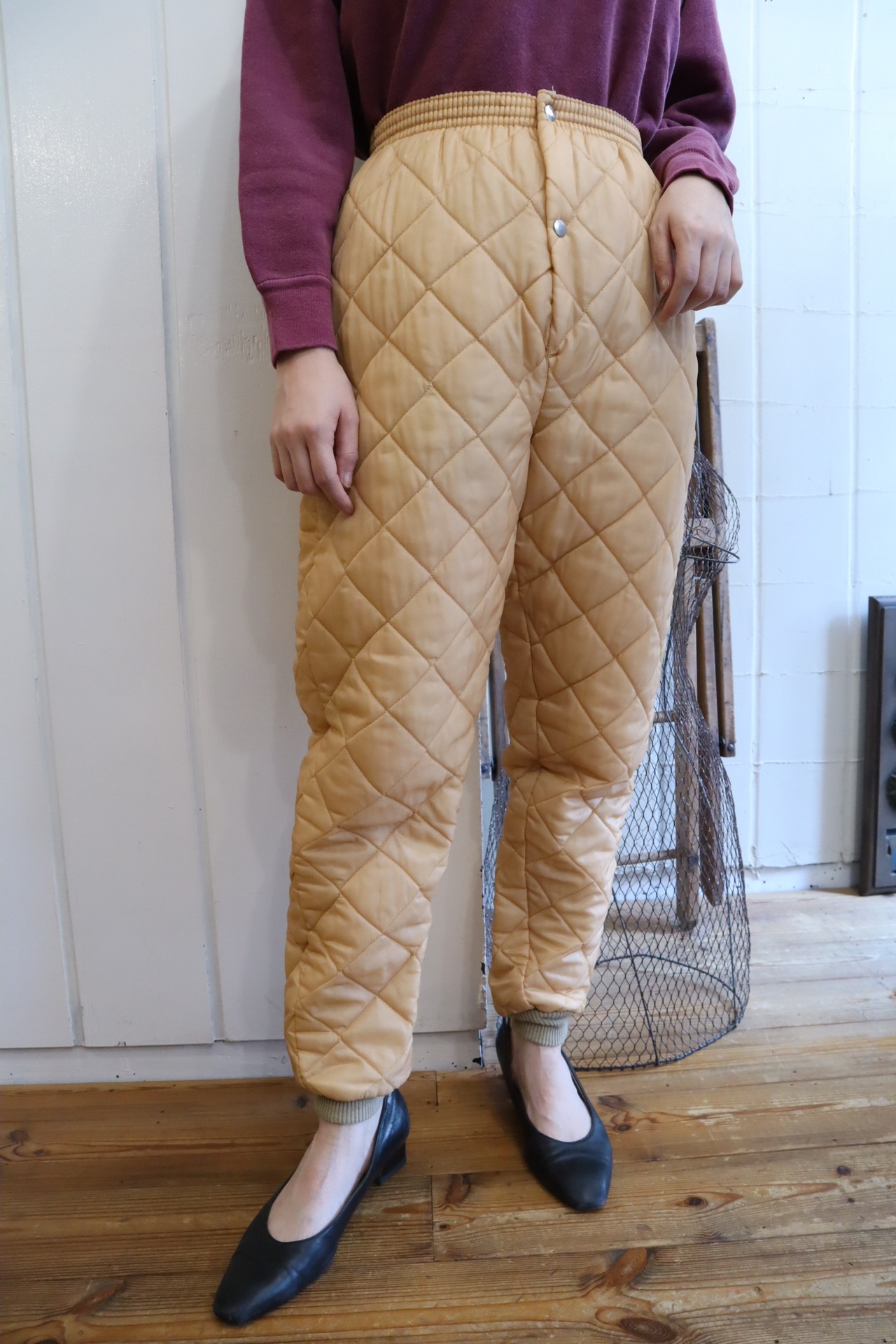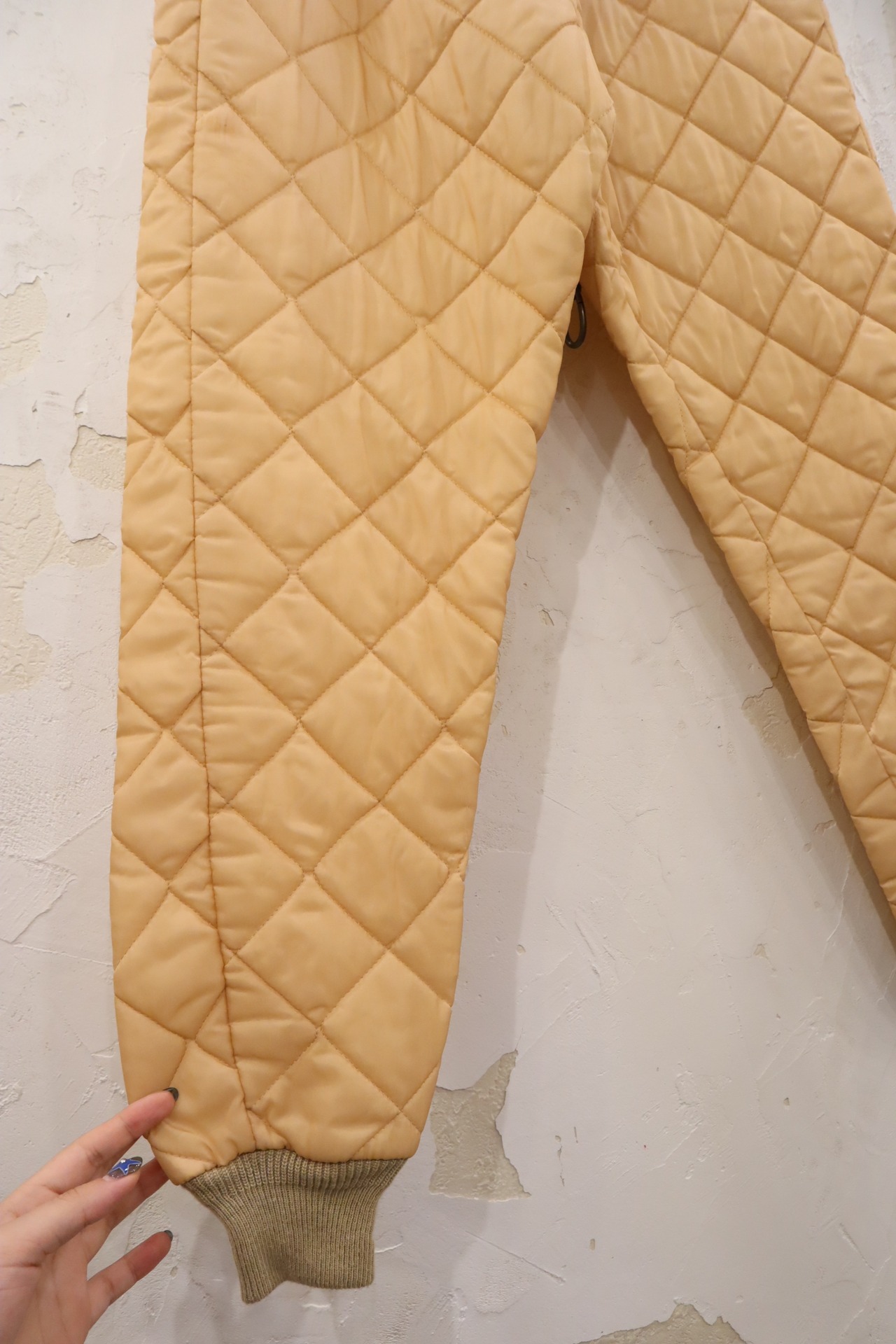 ペールオレンジカラーにコンパクト目なサイズ感が可愛いキルティングパンツ♡