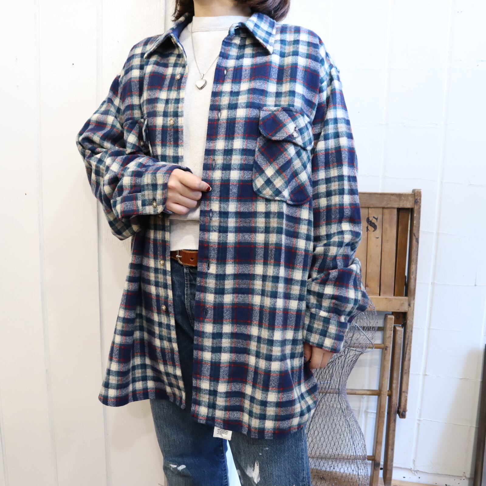 made in USA "PENDLETON" blue×green×red plaid wool shirt [k-1687]