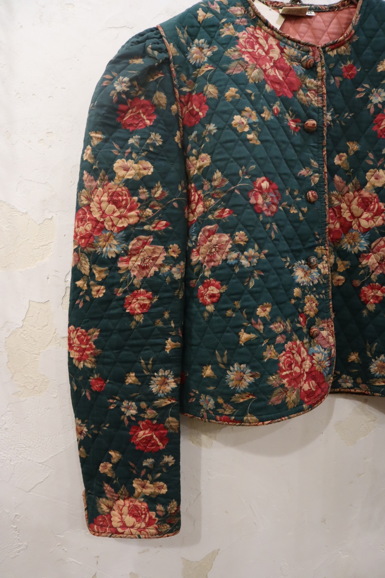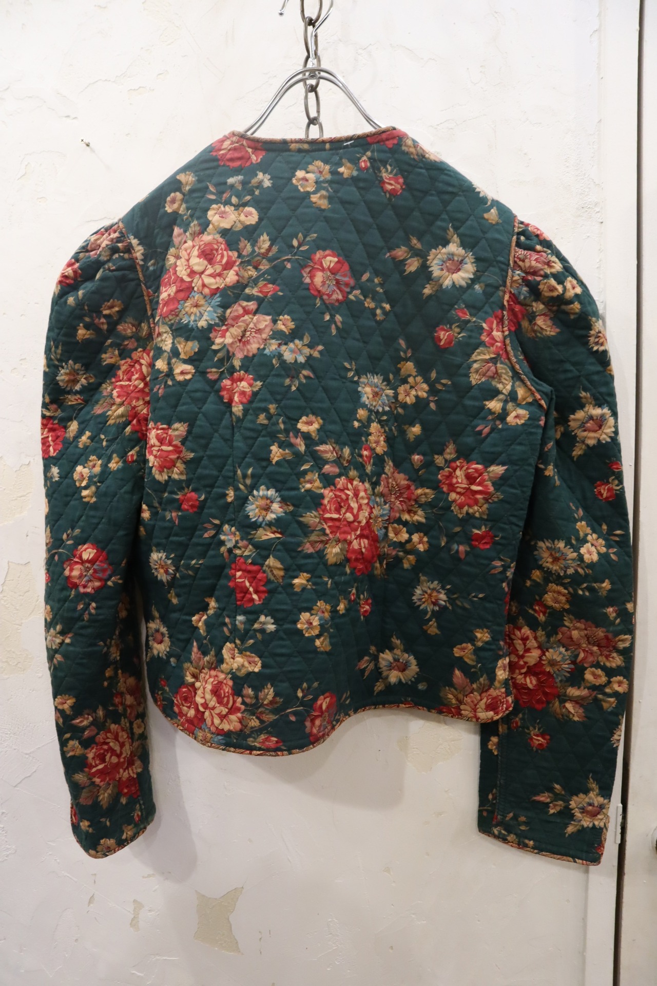 green×pinkred×beige flower pattern quilting jacket [l-1689]