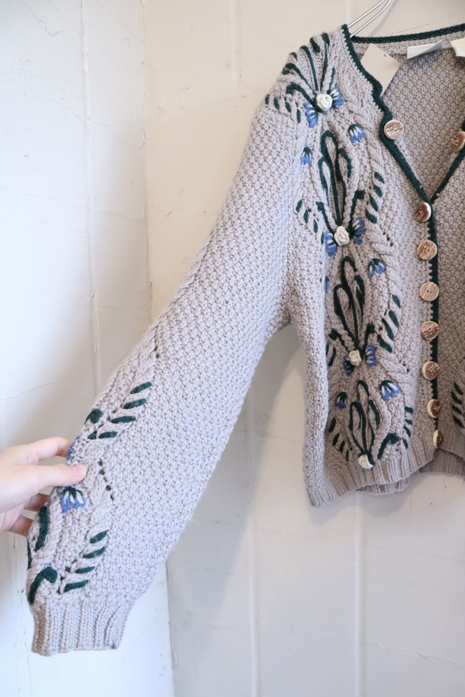 gray×green flower embroidery tyrol knit cardigan [l-1692]