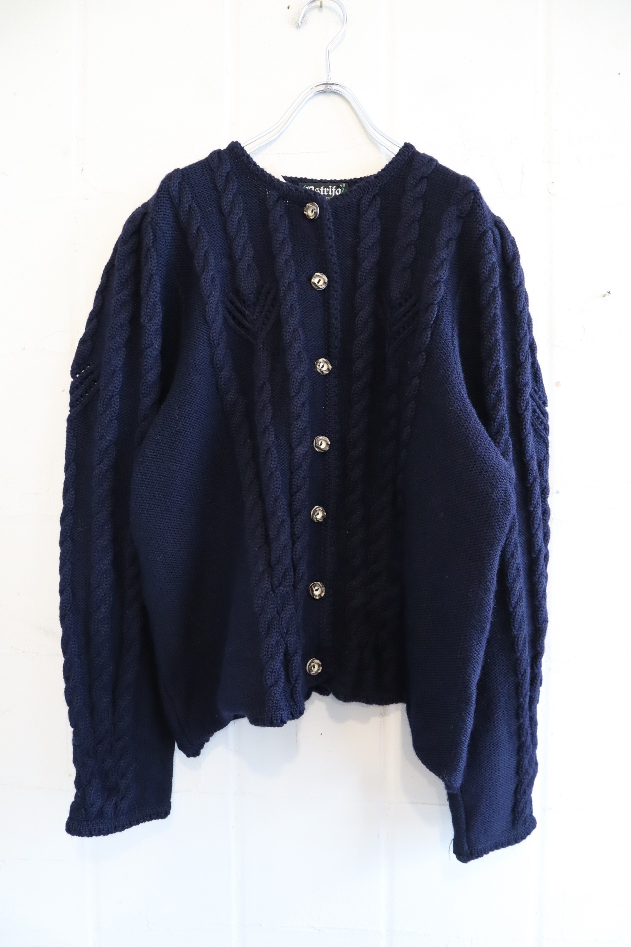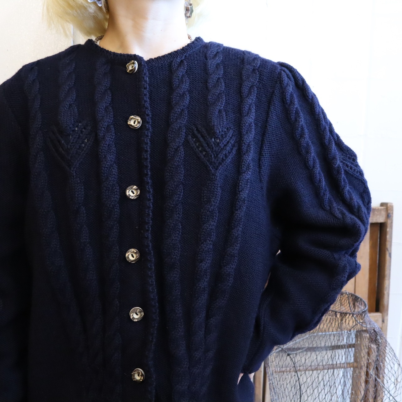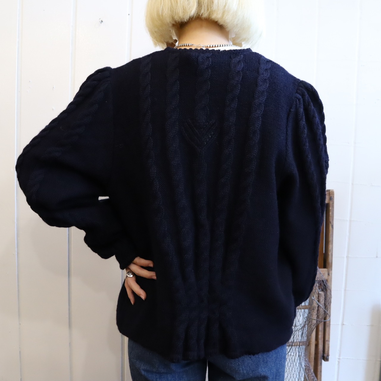navy puffsleeve tyrol knit cardigan [l-1693]