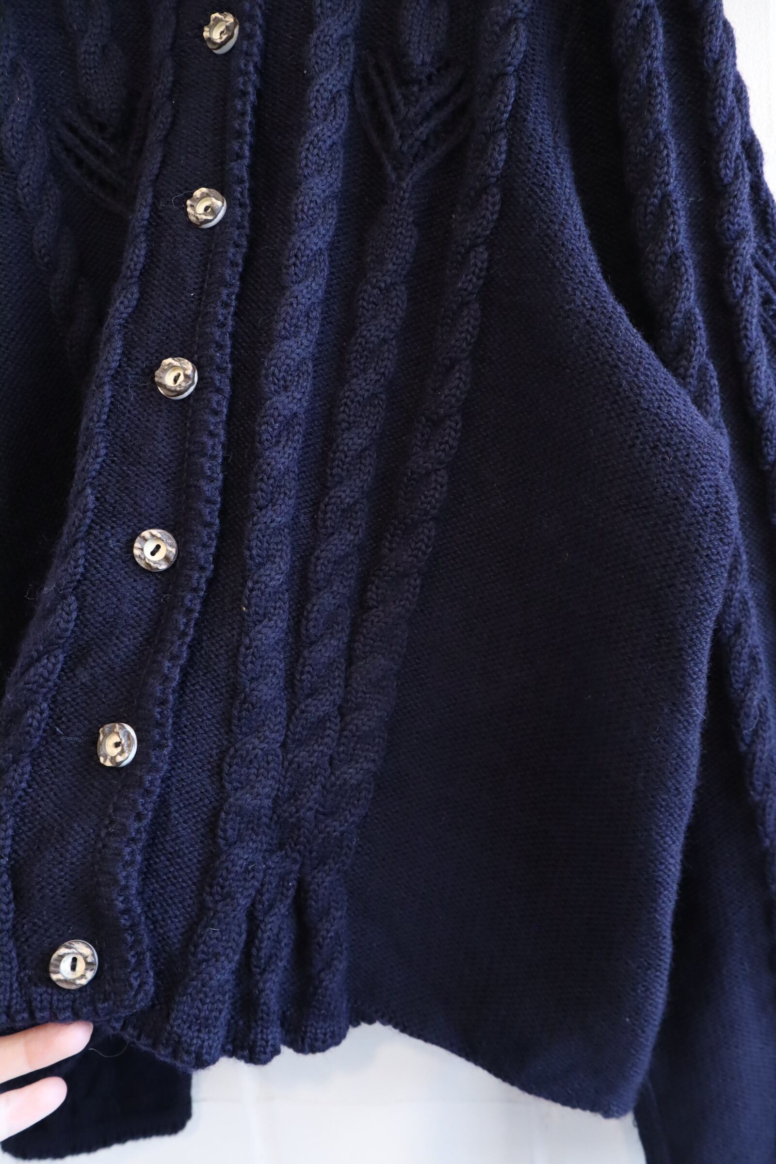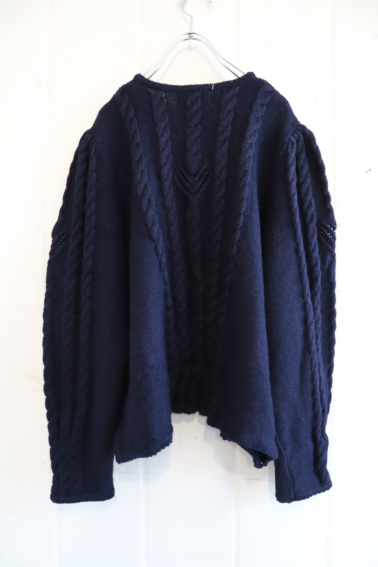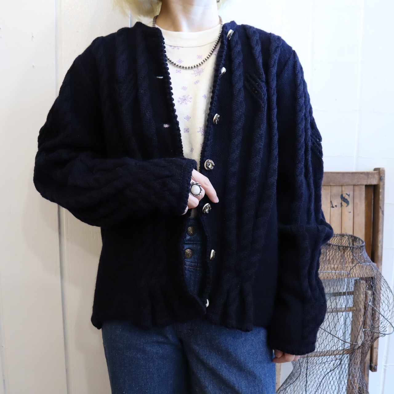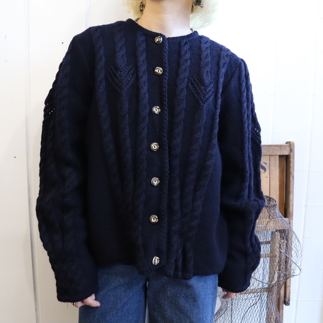 navy puffsleeve tyrol knit cardigan [l-1693]