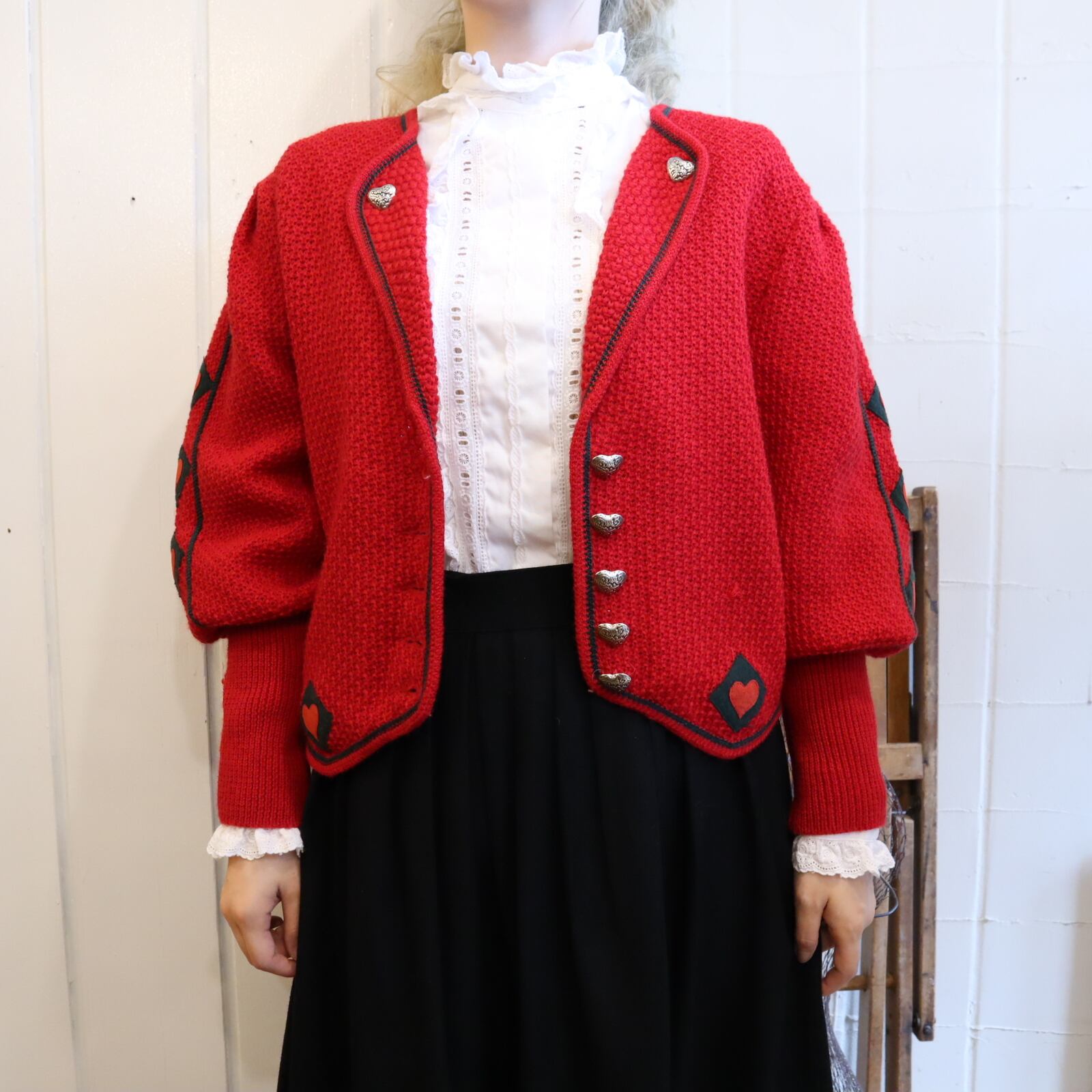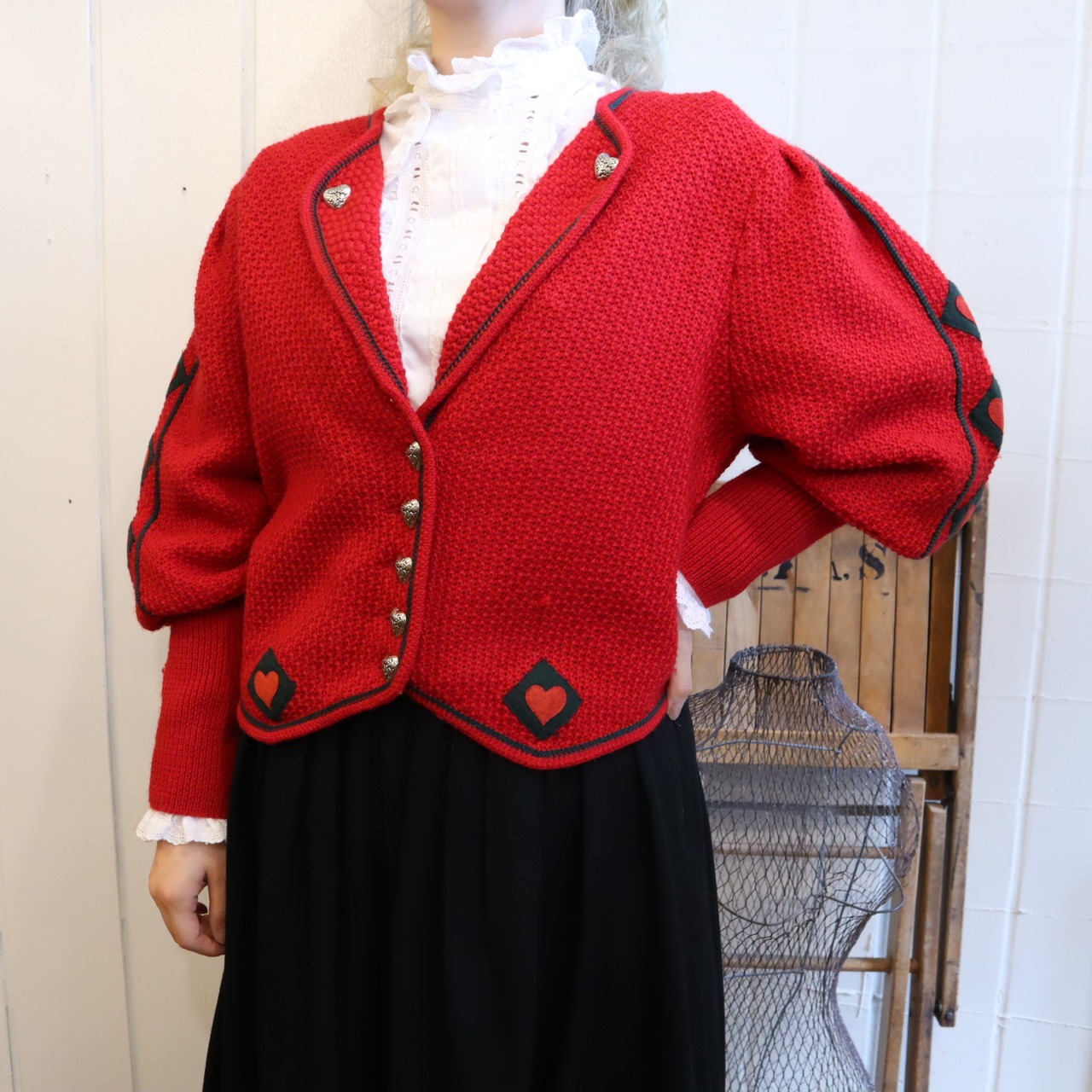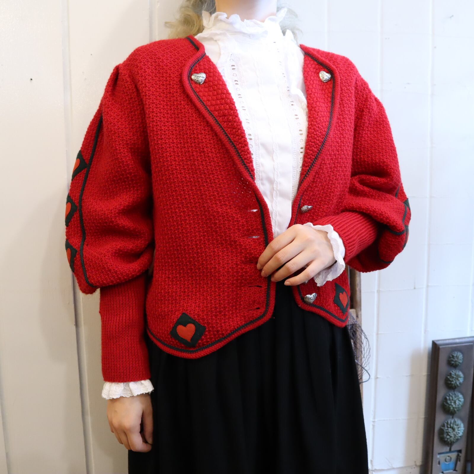 red×black heart patch longcuffs tyrol knit cardigan [l-1694]