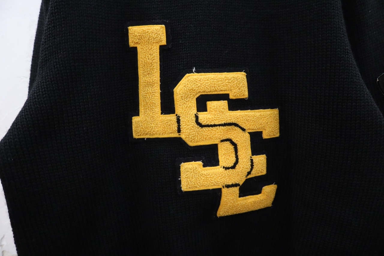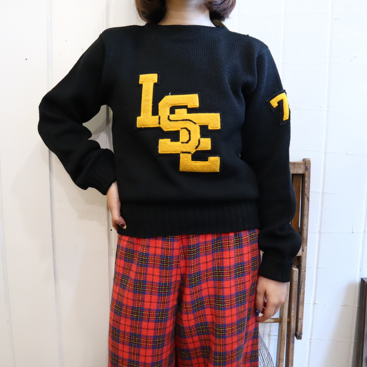 50-60s black×yellow lettered wappen knit pullover [l-1698]