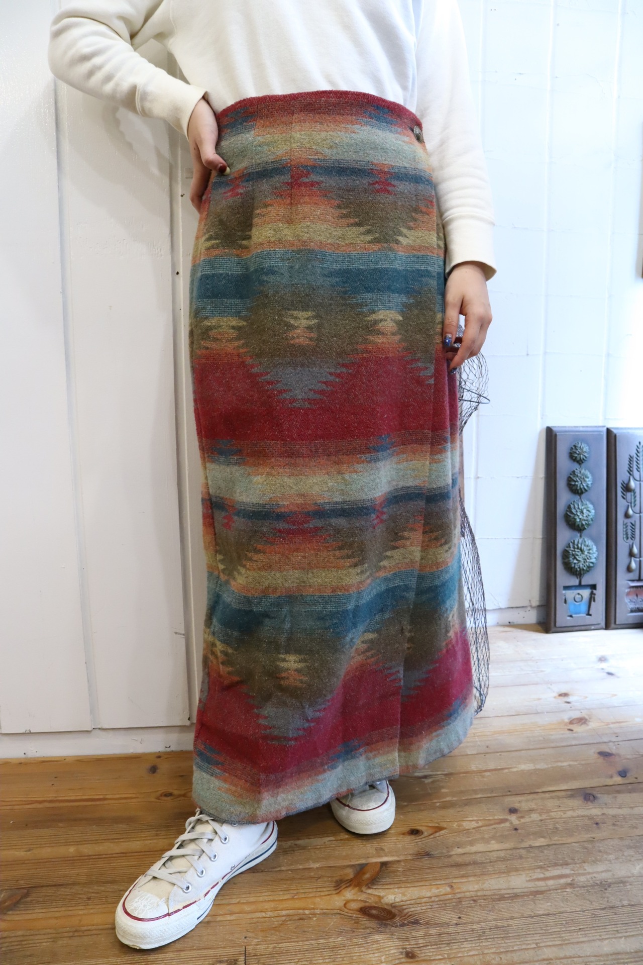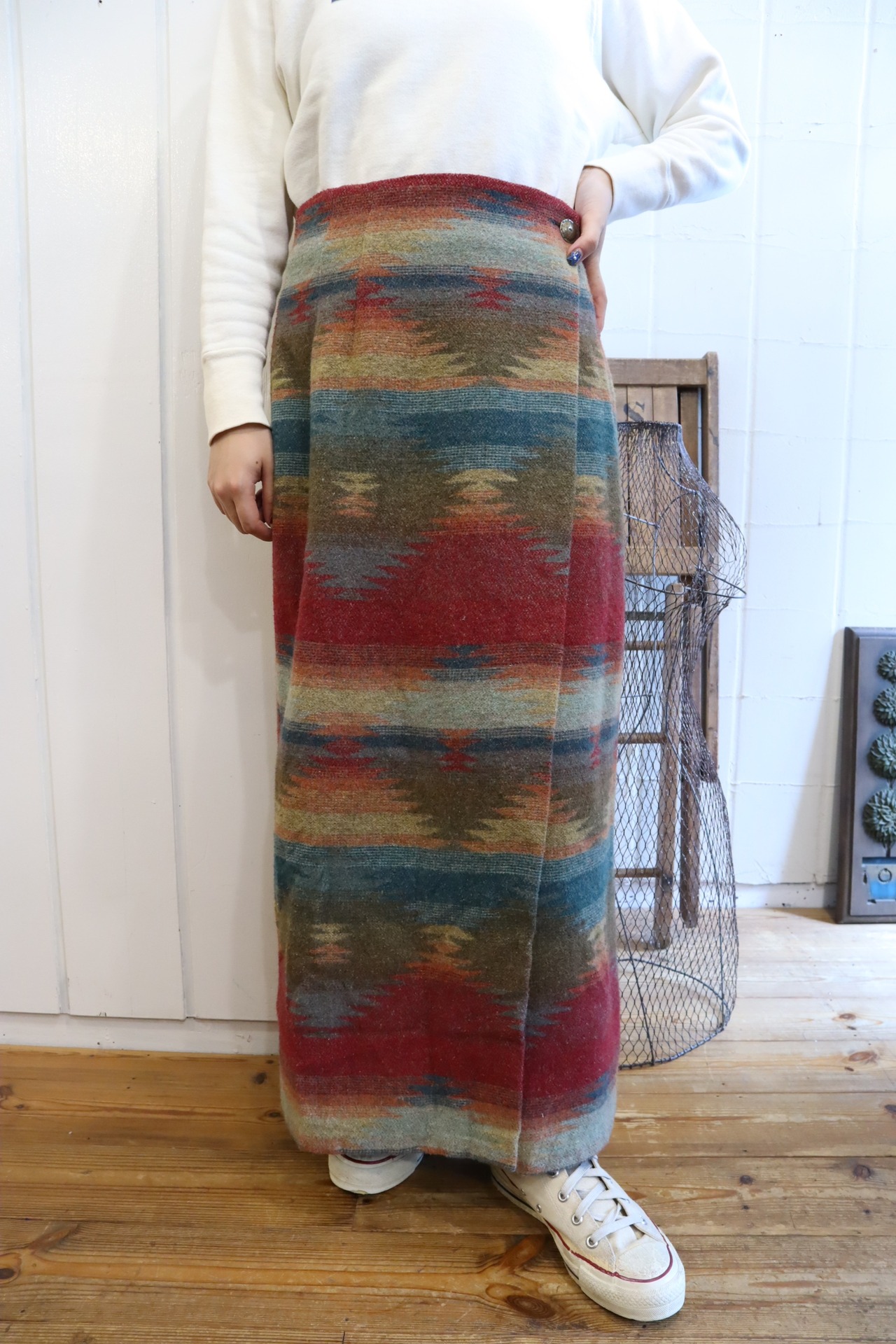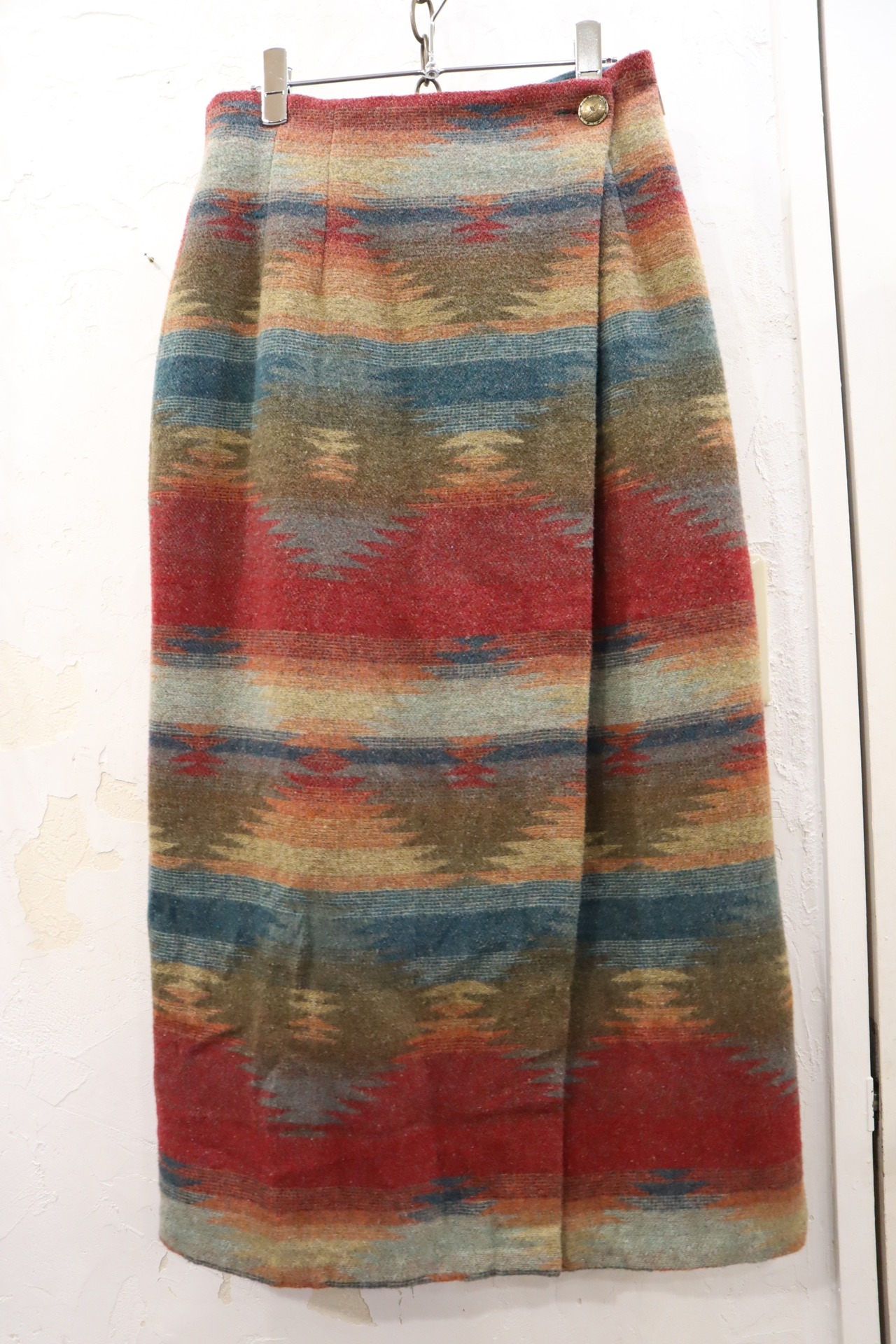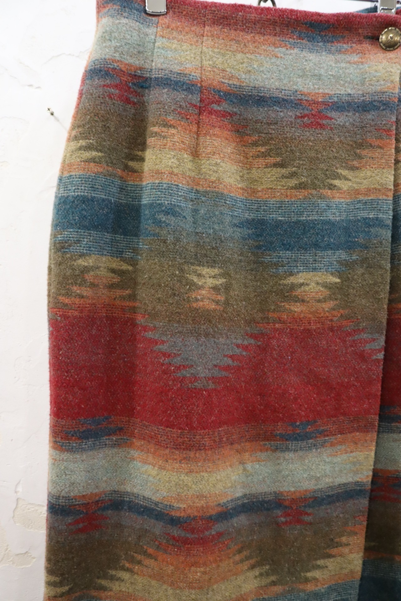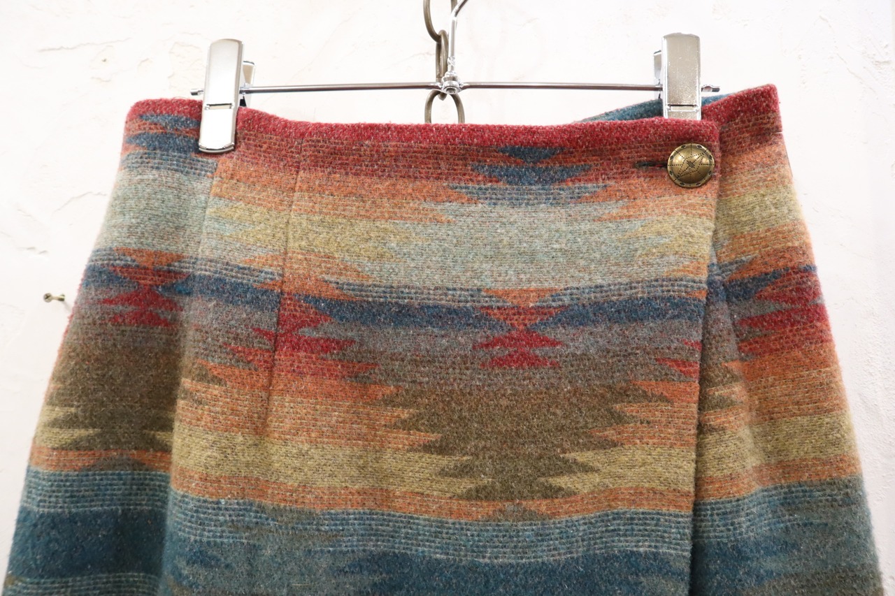 red×green×yellow ethnic pattern wrap skirt [k-1705]