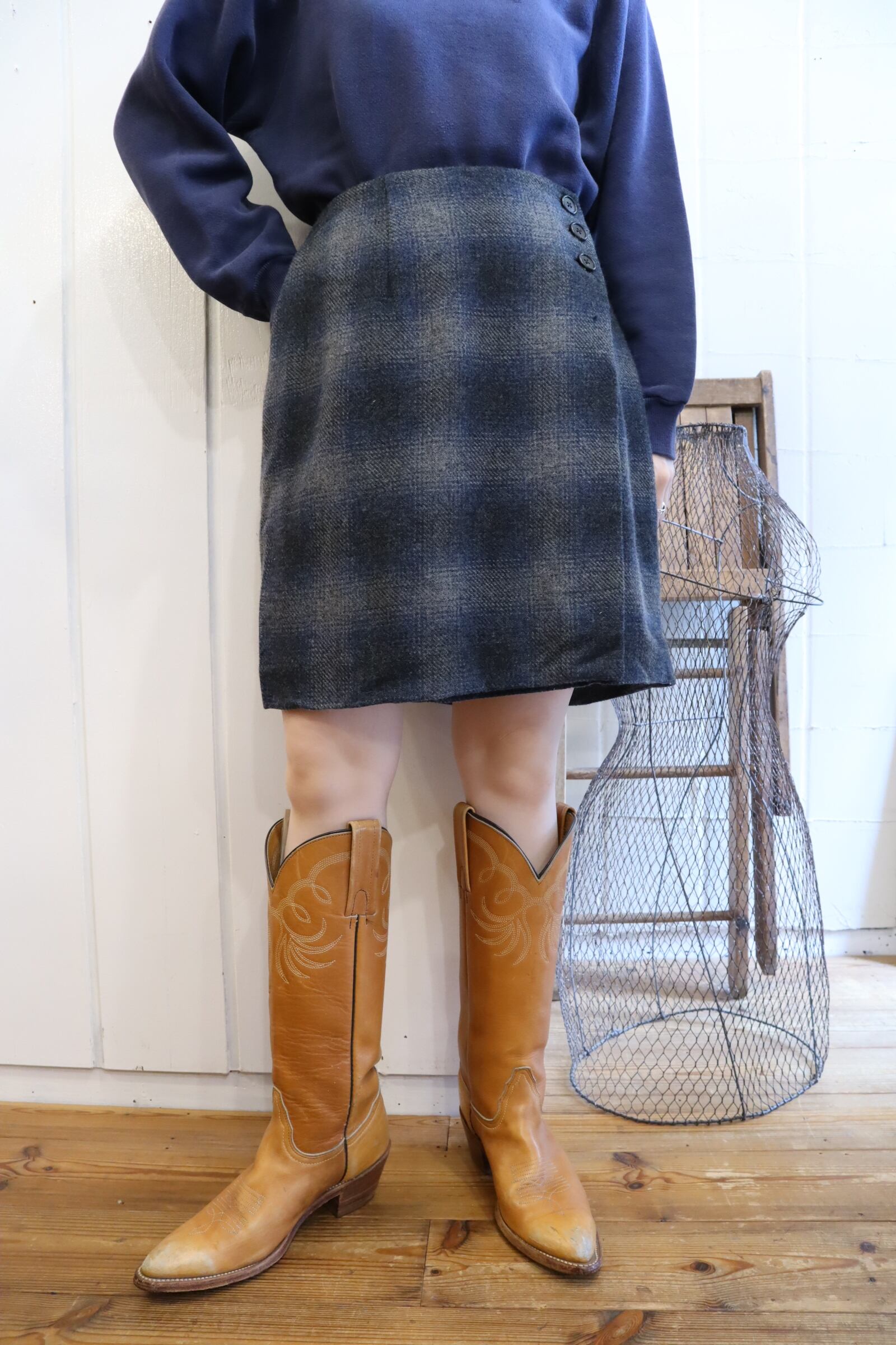 "Ralph Lauren" gray×navy plaid wrap mini skirt [k-1706]