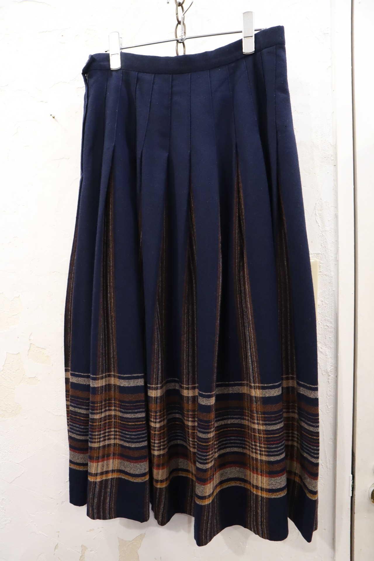 made in USA "PENDLETON" navy×brown plaid wool skirt [l-1708]