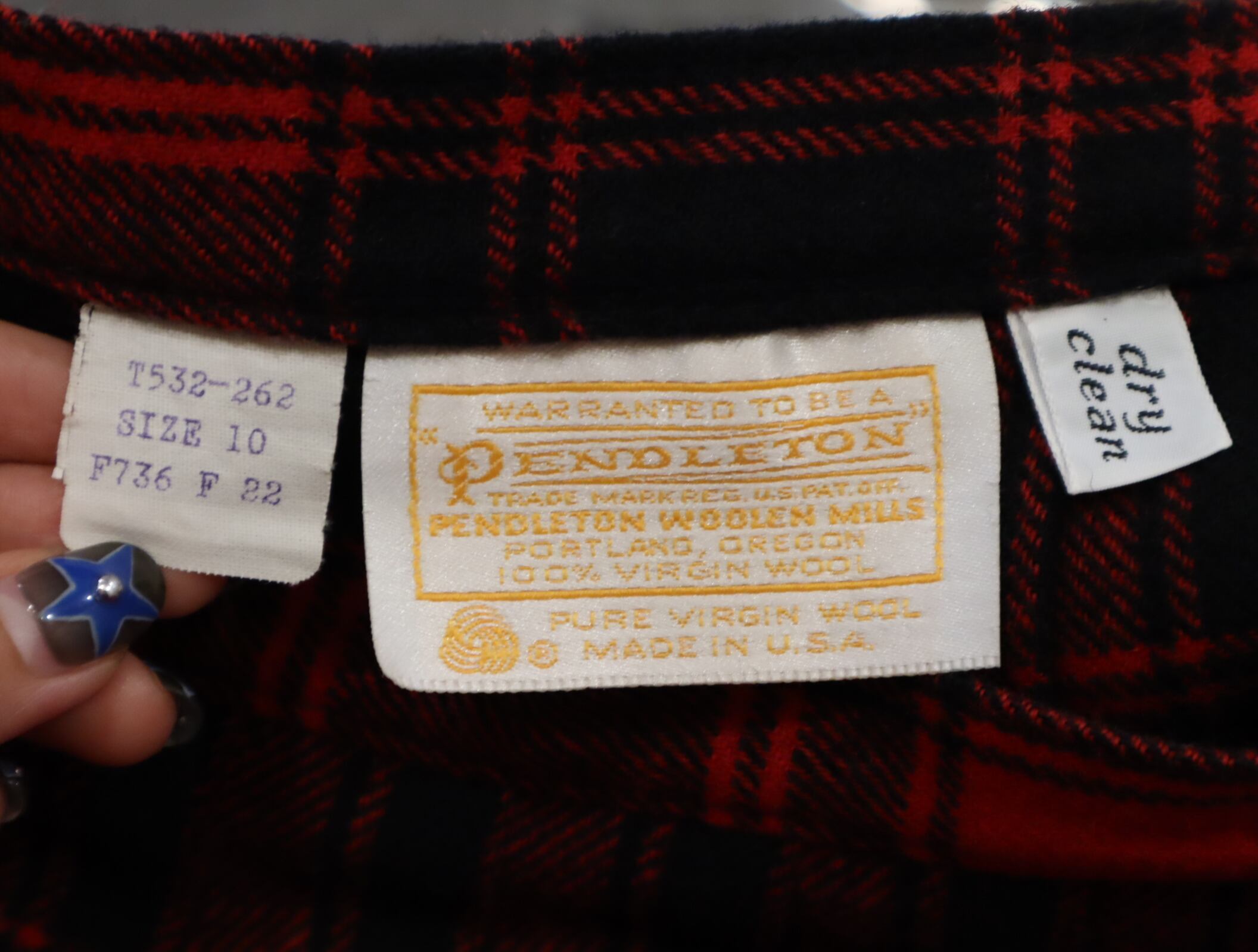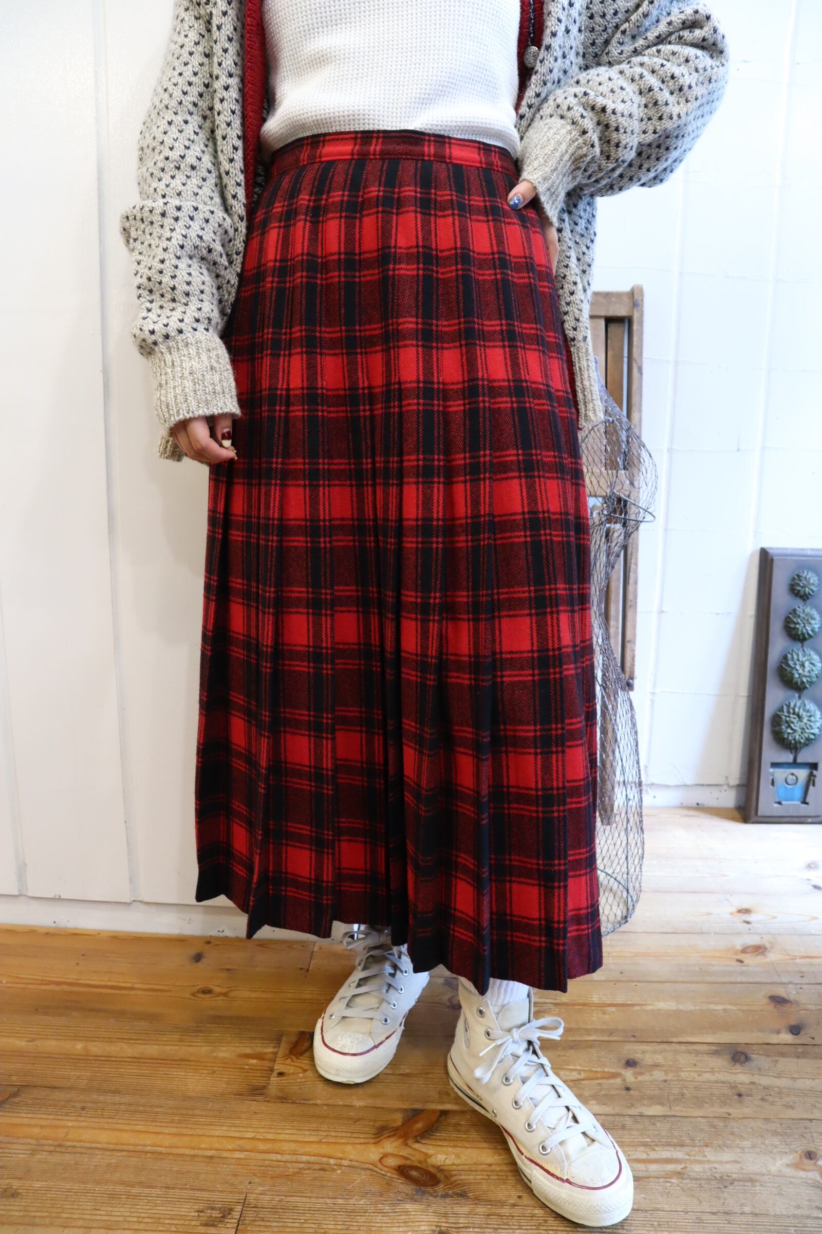 made in USA "PENDLETON" red×black plaid wool skirt [l-1709]