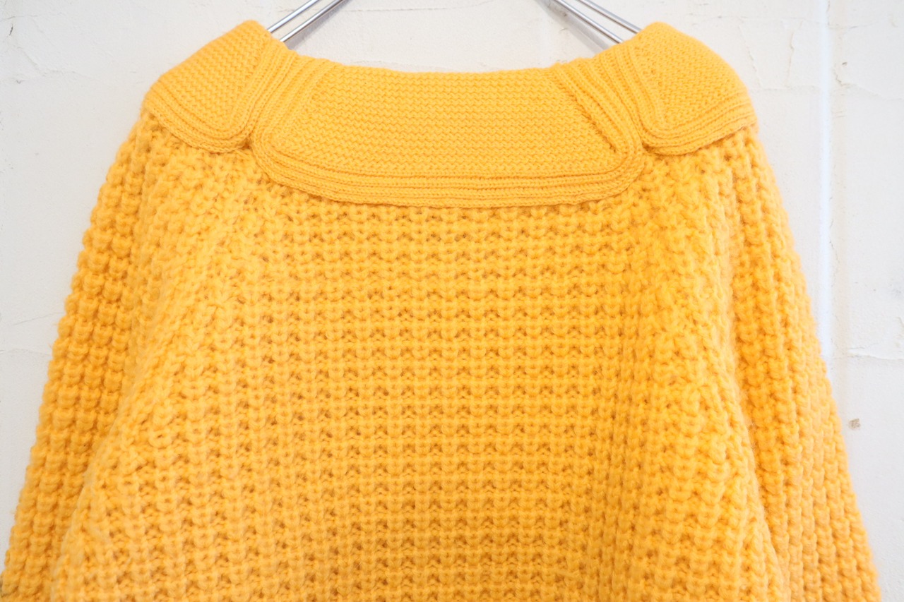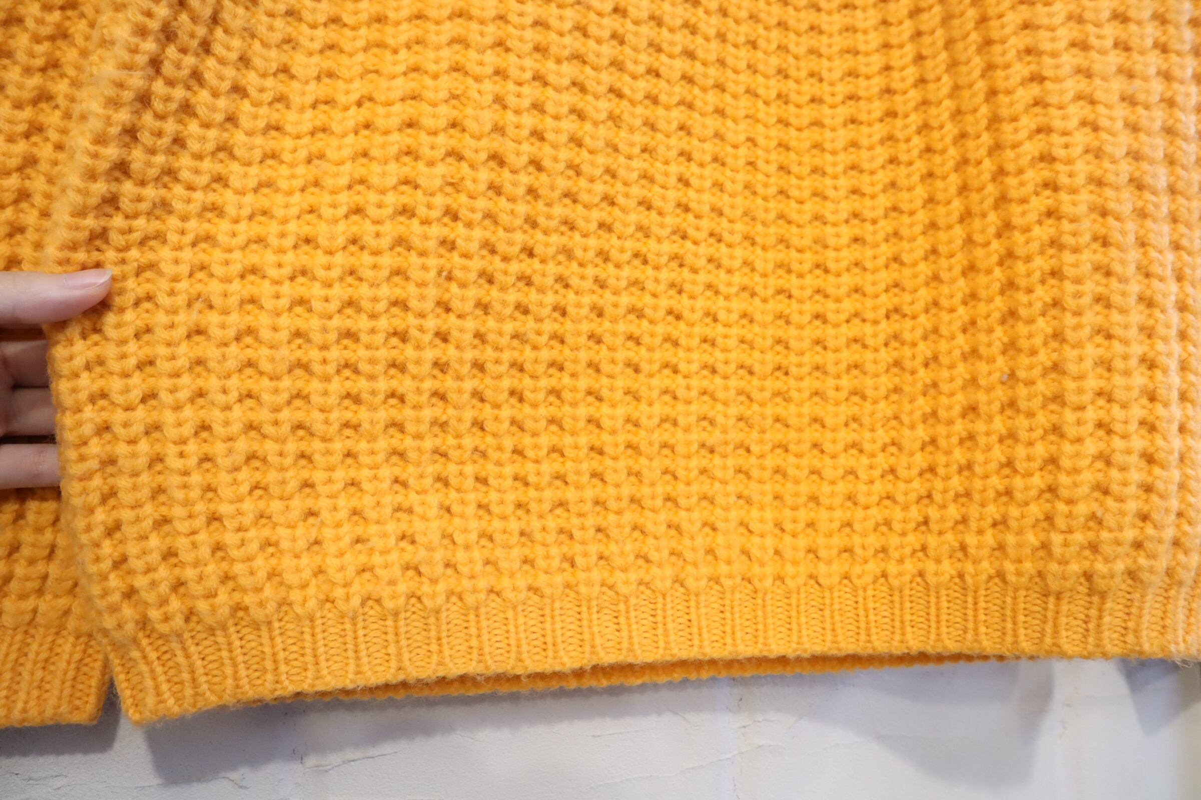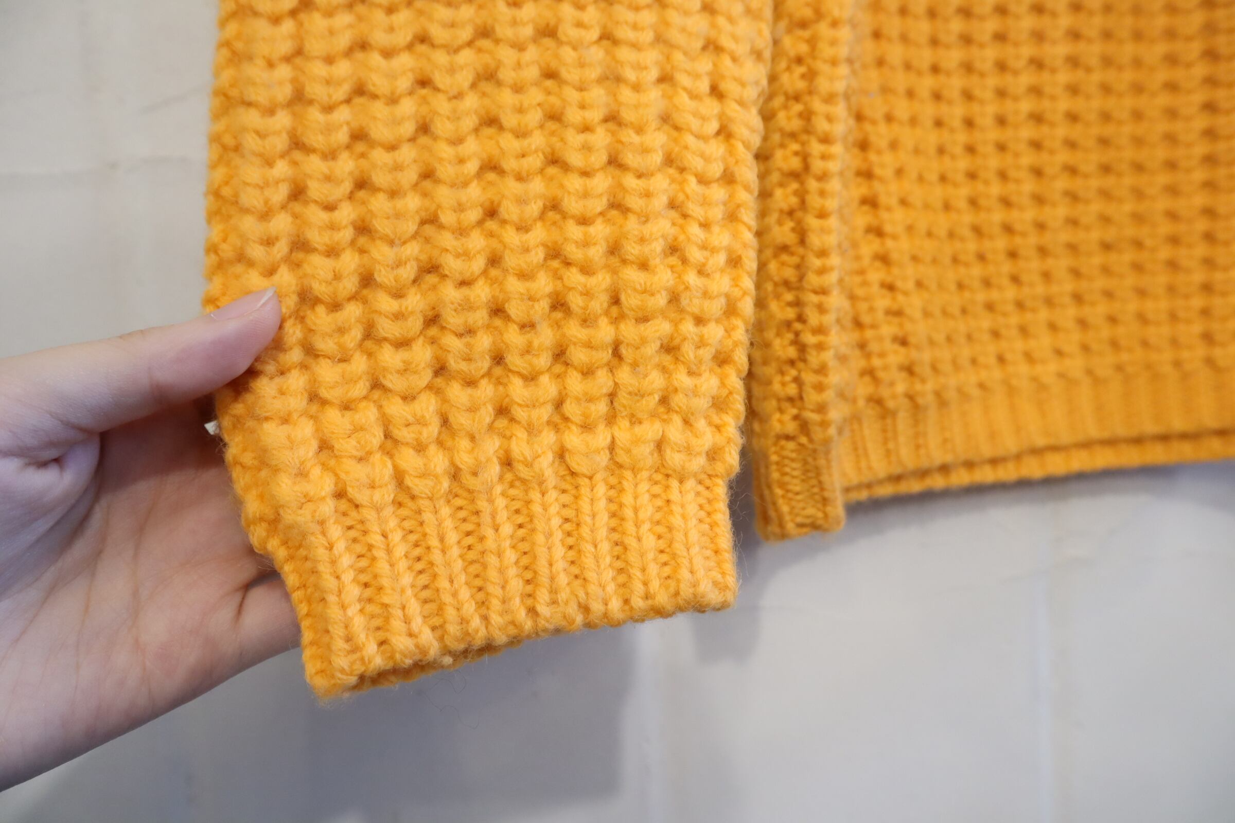 オレンジカラーにワッフル地のような編み柄が可愛いウールニットプルオーバーです。