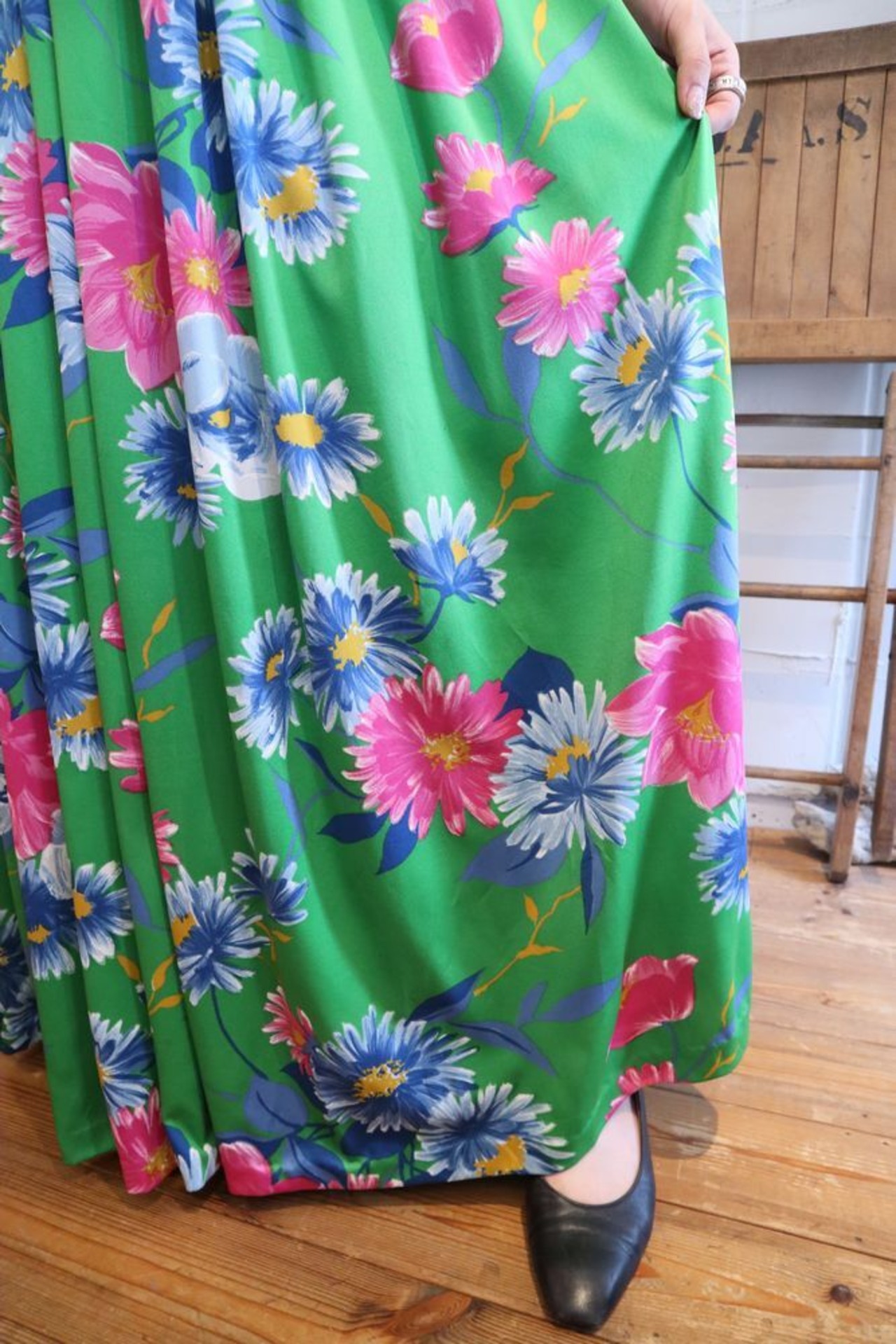 green×pink flower tuck design skirt [l-40458]