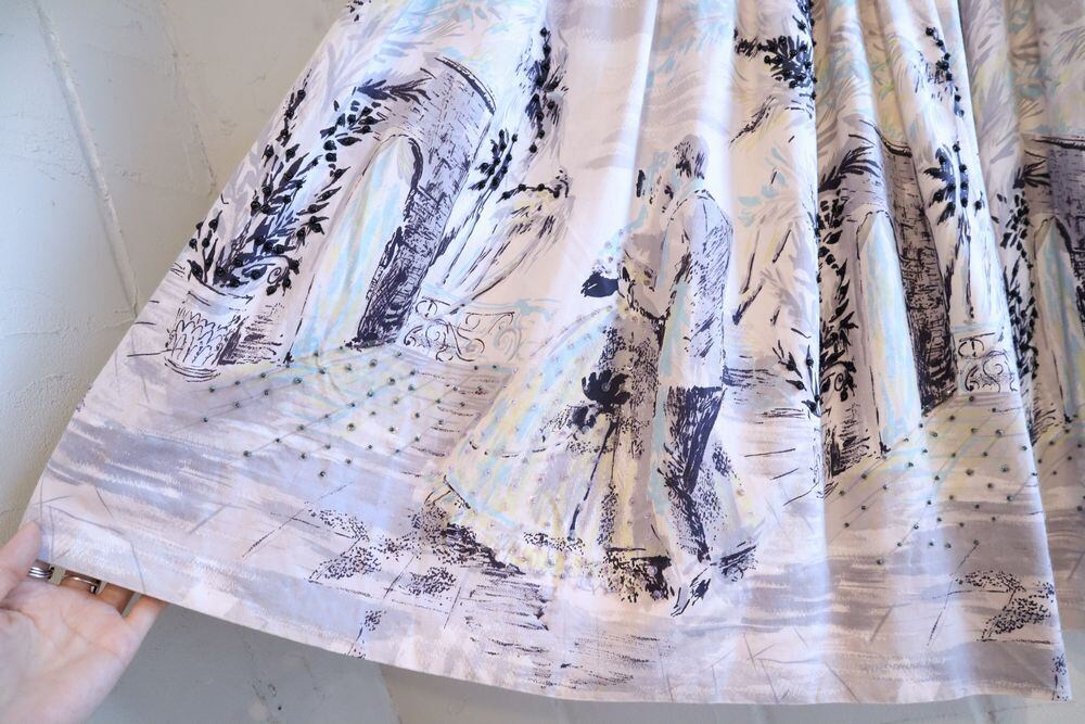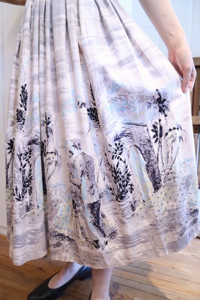 50-60s offwhite×gray human beads design skirt [l-40311]