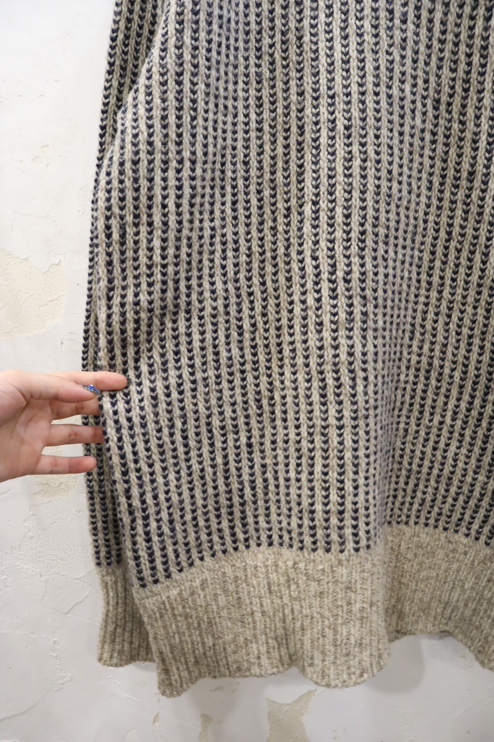 "L.L.Bean" beige×navy birdseye pattern knit pullover [k-1714]