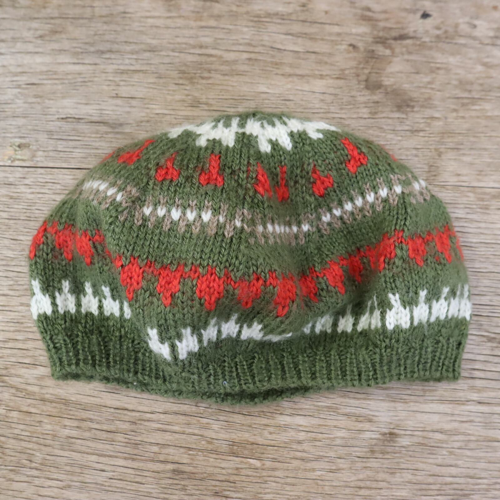 dull green×red crochet beret [l-1721]