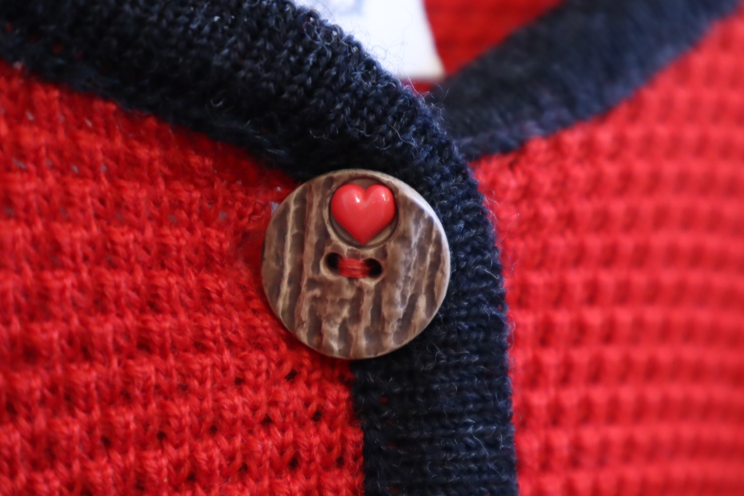 ウッドボタンにさりげないぷっくりハートが可愛いポイントです。