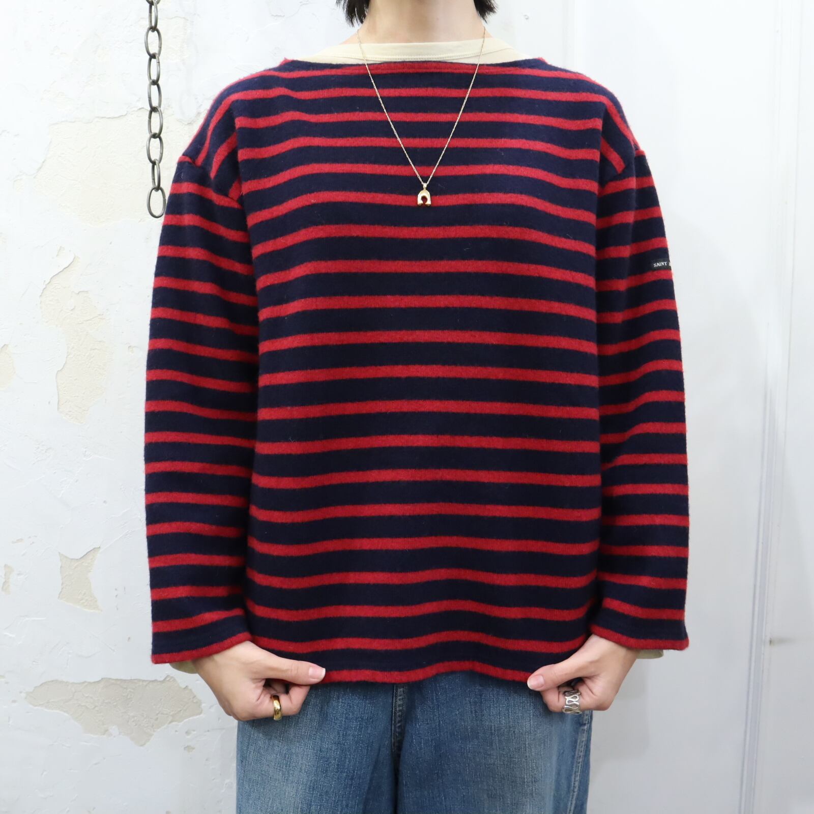 "SAINT JAMES" navy×red border knit pullover [k-1733]